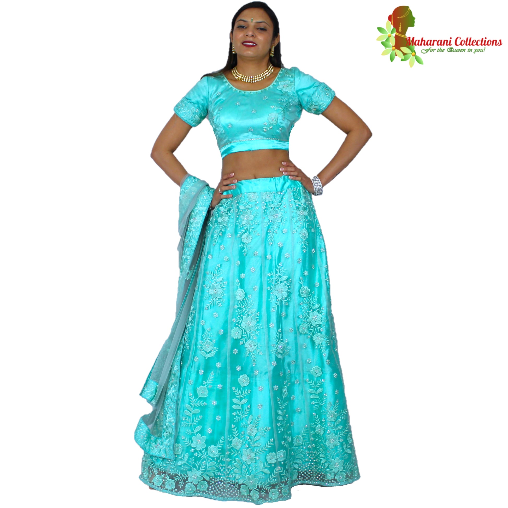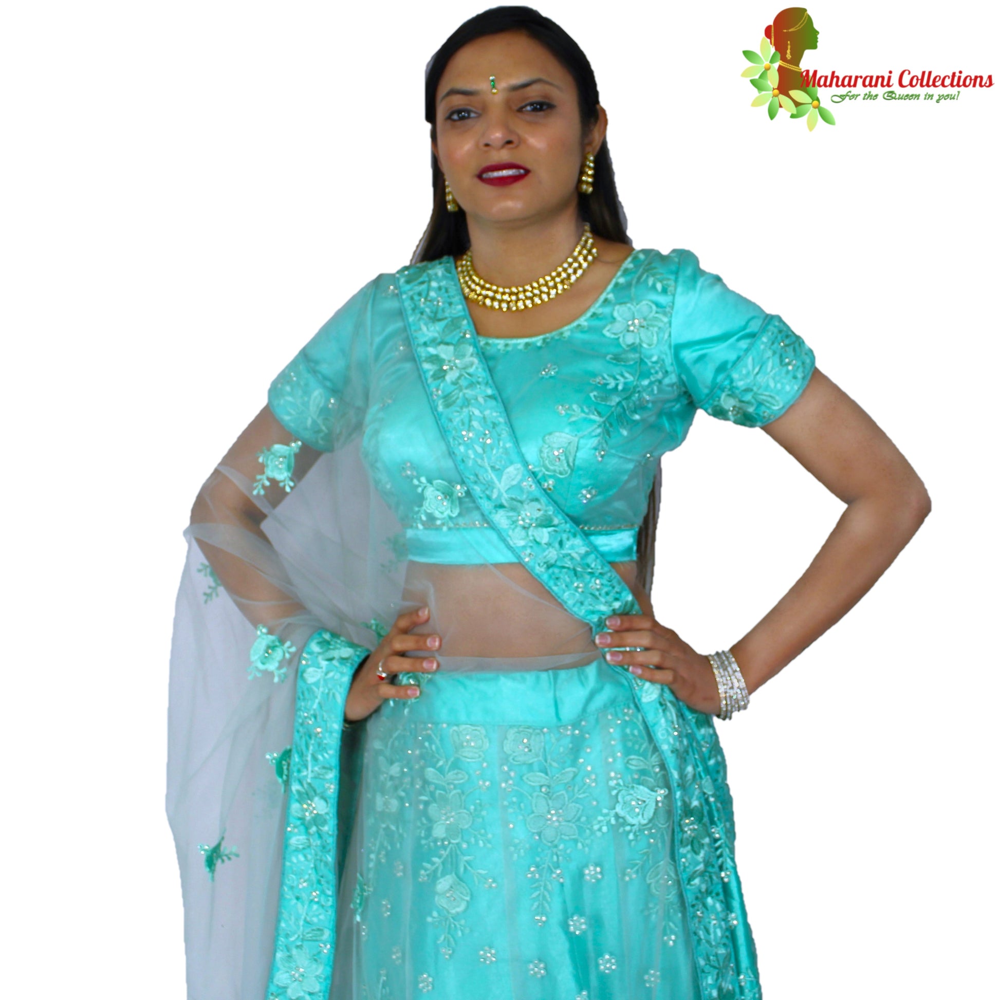 Designer Net-Silk Lehenga - Sea Green with Zari and Sequins Embroidery