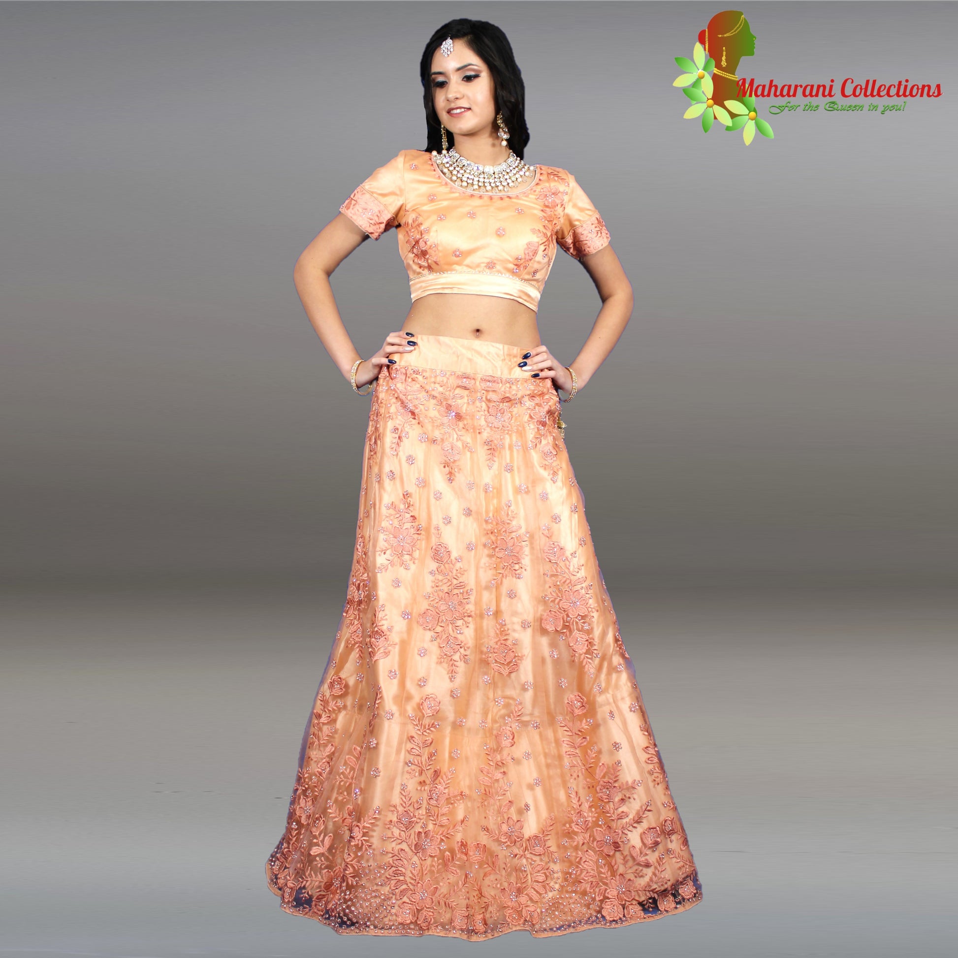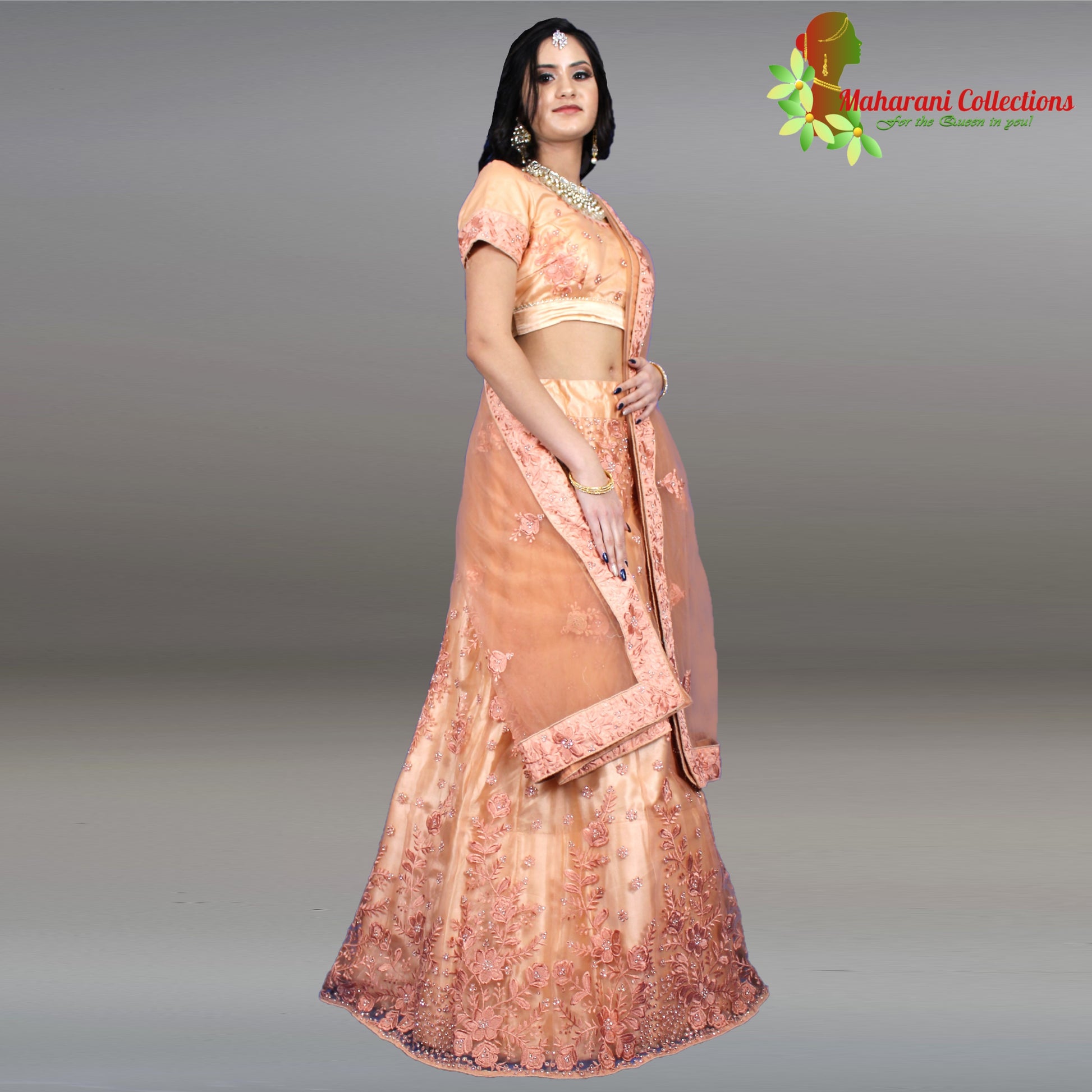 Maharani's Designer Net-Silk Lehenga - Peach with Zari and Sequins Embroidery