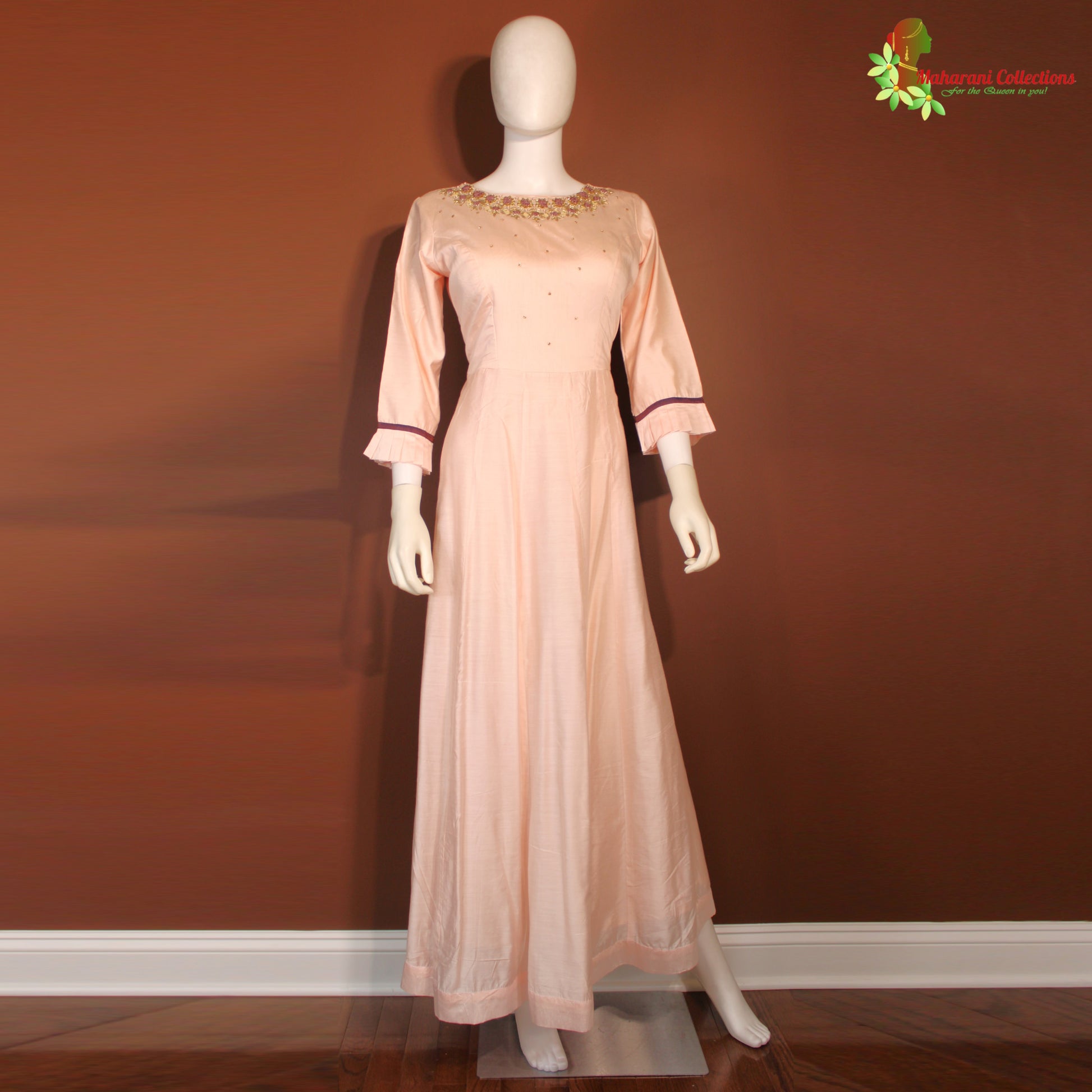 Designer long gown in Silk with full cotton lining and Sequins and Zari work.