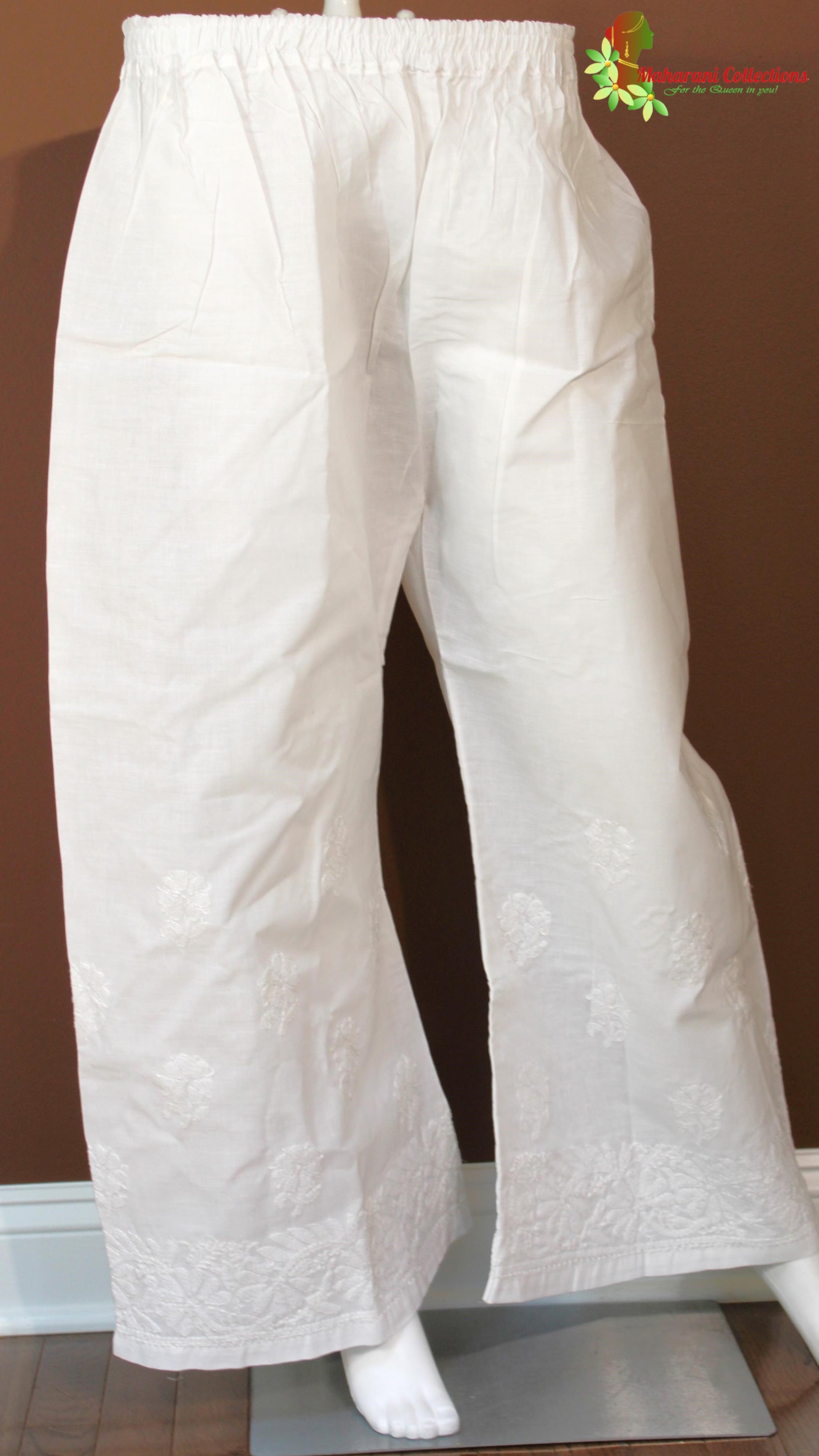 - Work/Design: Lucknowi Chikankari Work, Drawstring Elastic waist, expandable to 40"