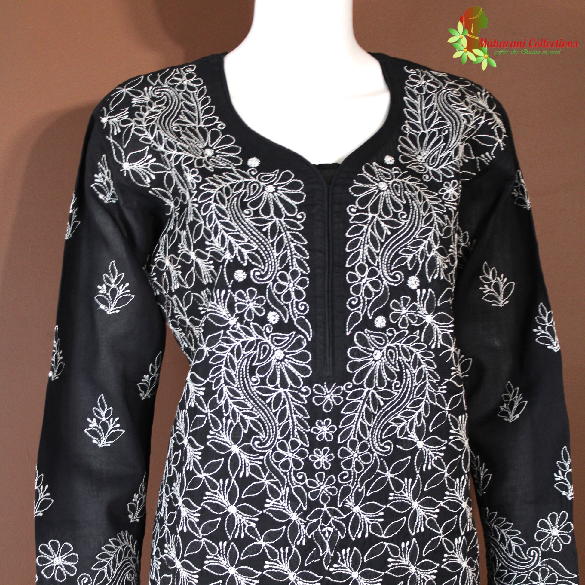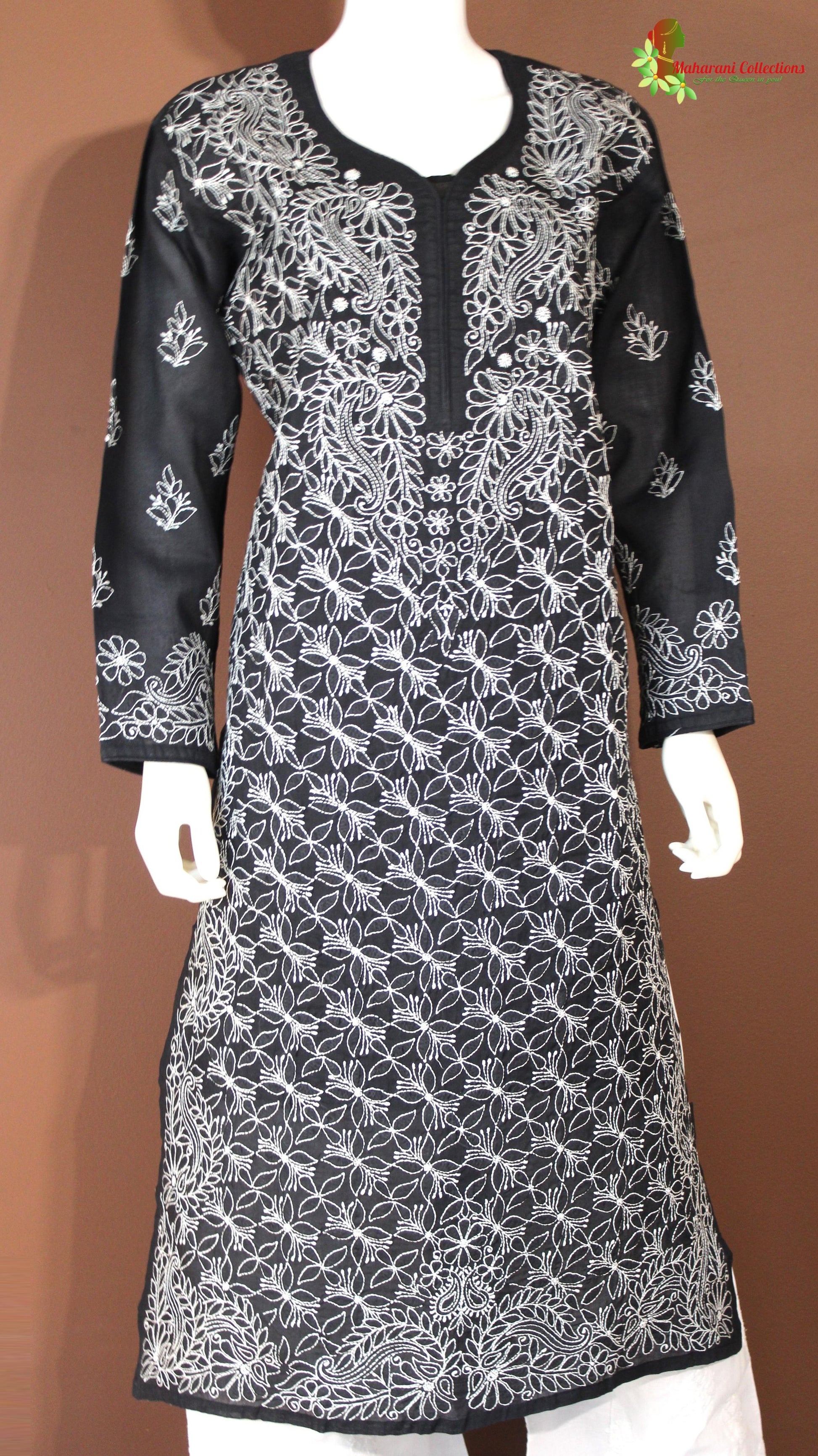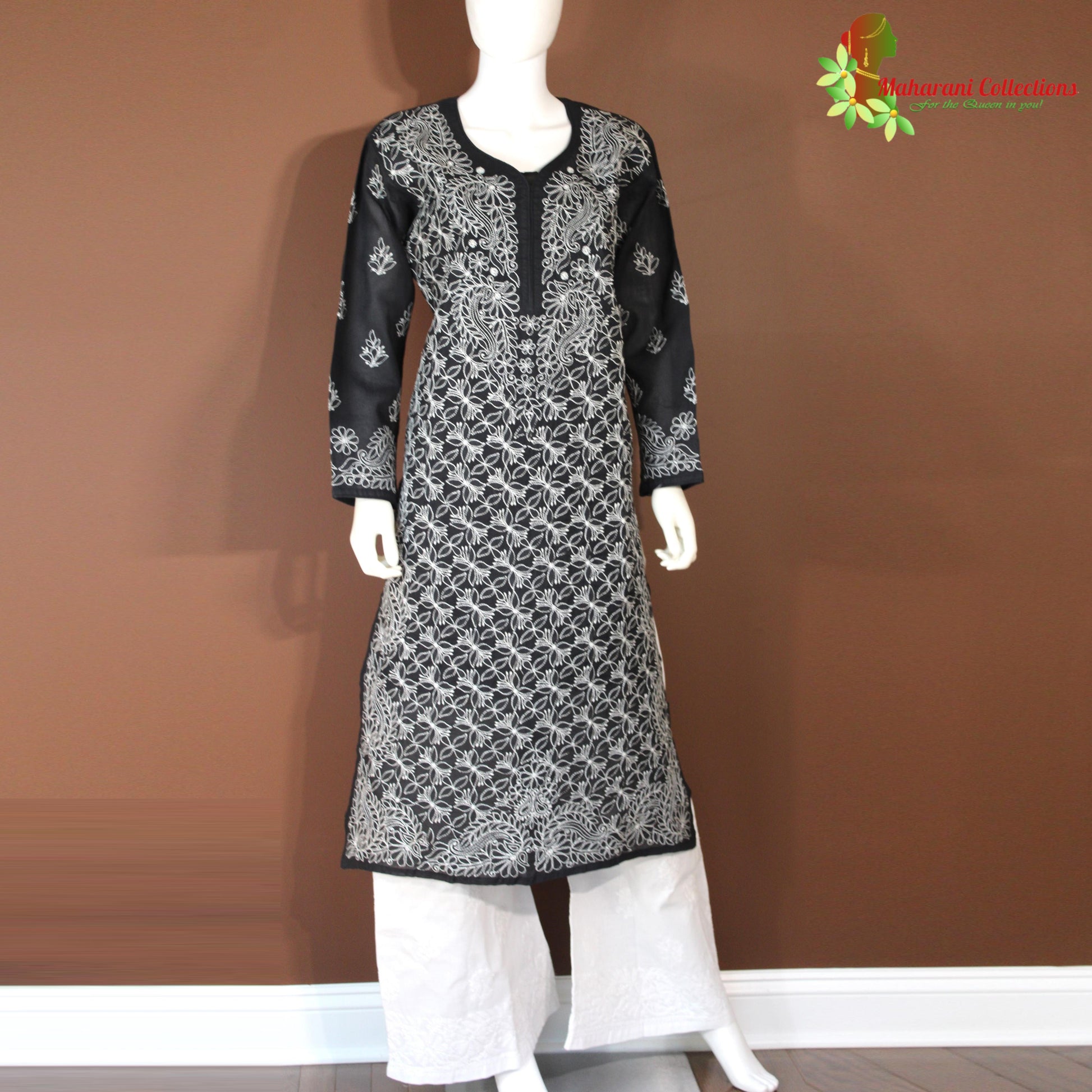 Maharani's Lucknowi Chikankari Pant Suit - Black (L) - Pure Cotton