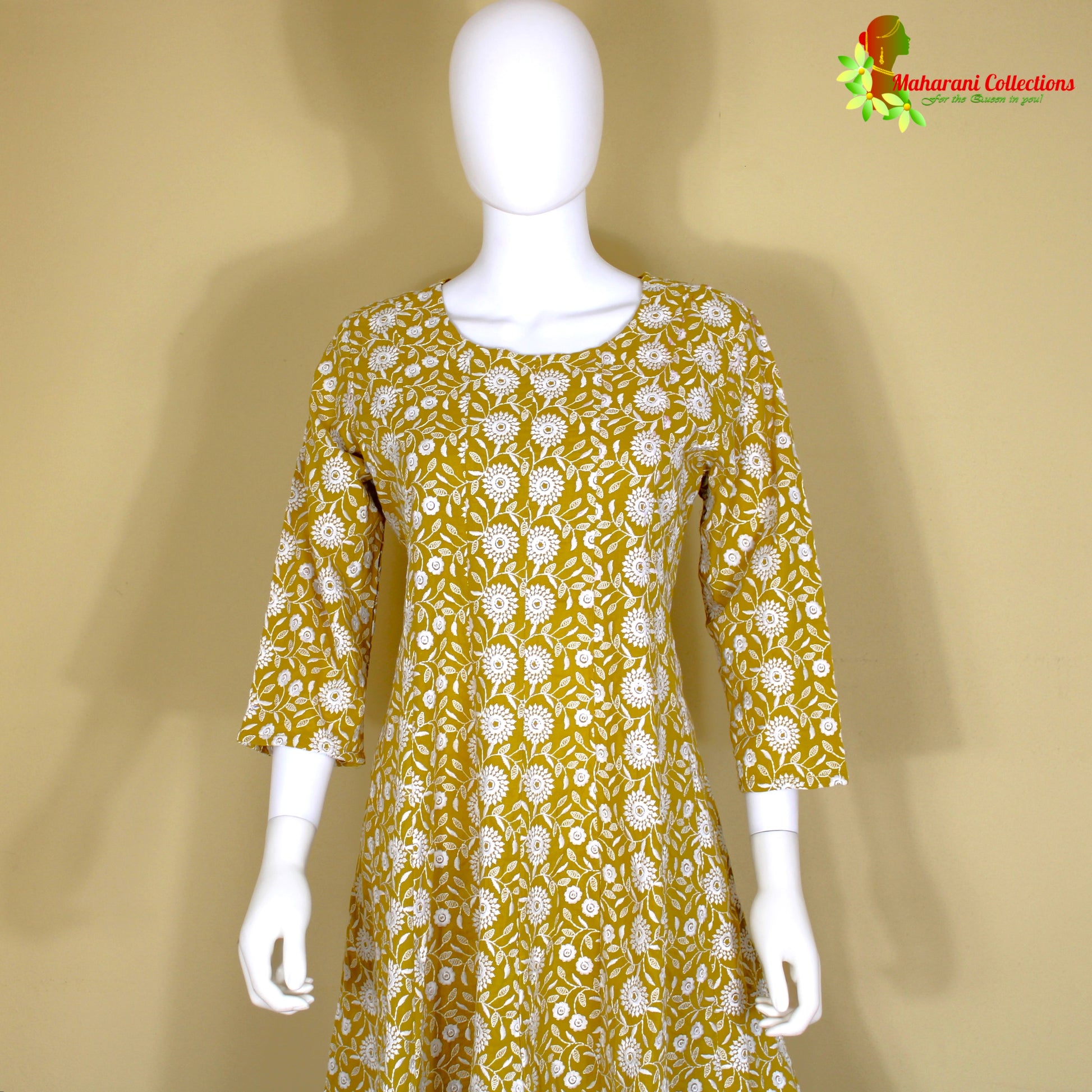 Maharani's Anarkali Suit - Mustard Yellow (L) - Pure Cotton