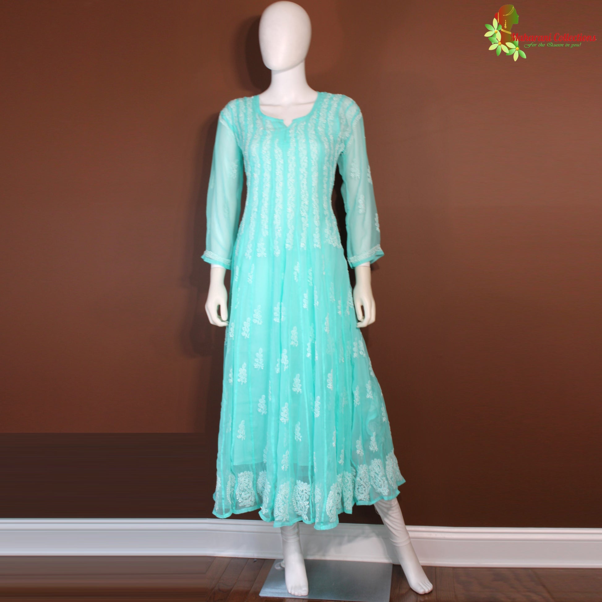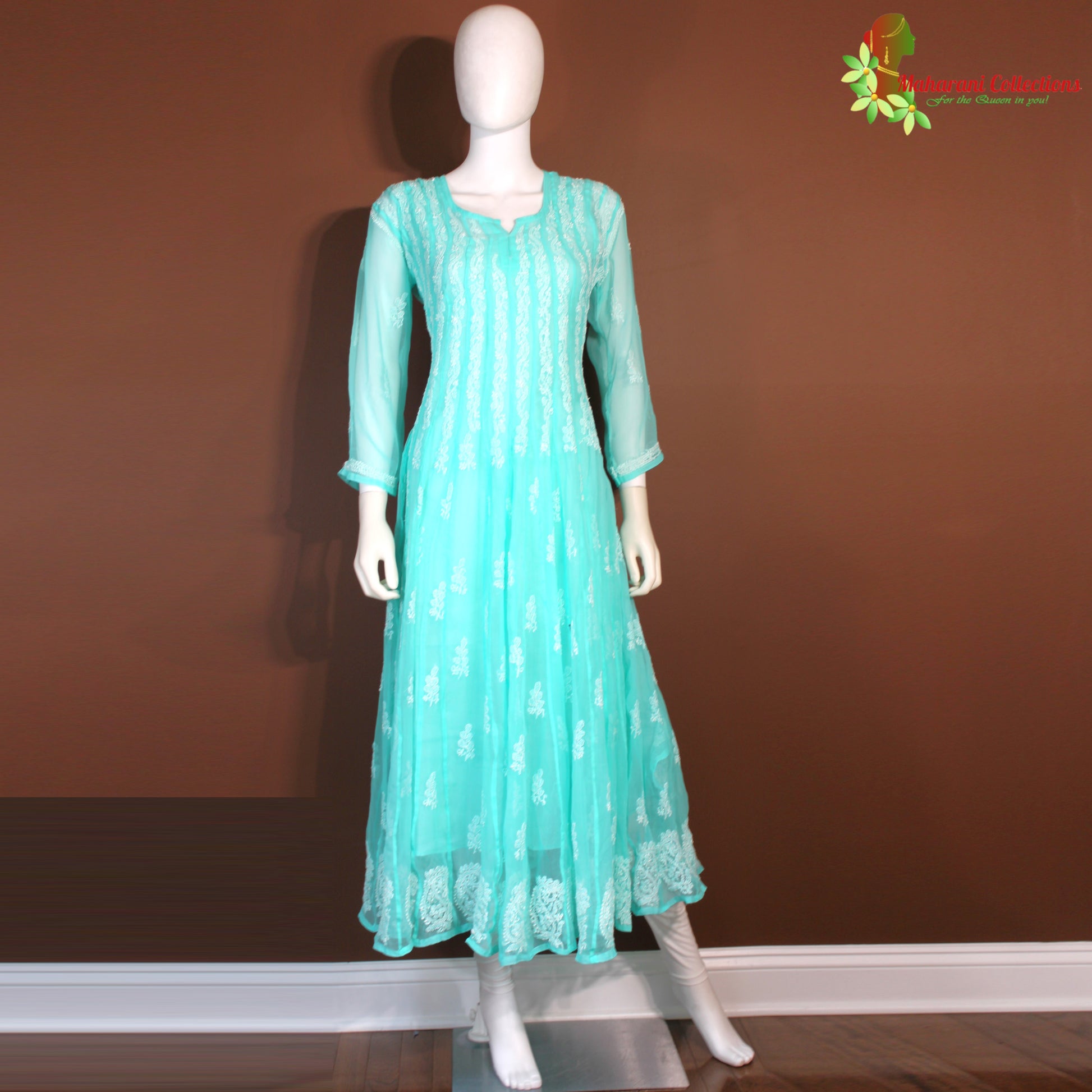 Maharani's Lucknowi Chikankari Anarkali Suit - Sea Green (M) - Pure Georgette