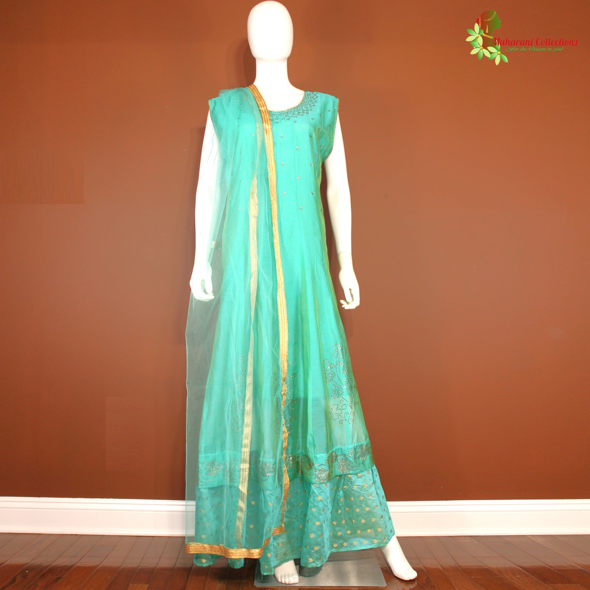 Maharani's Designer Anarkali Suit - Sea Green (L) - Net and Silk - Gala Gown