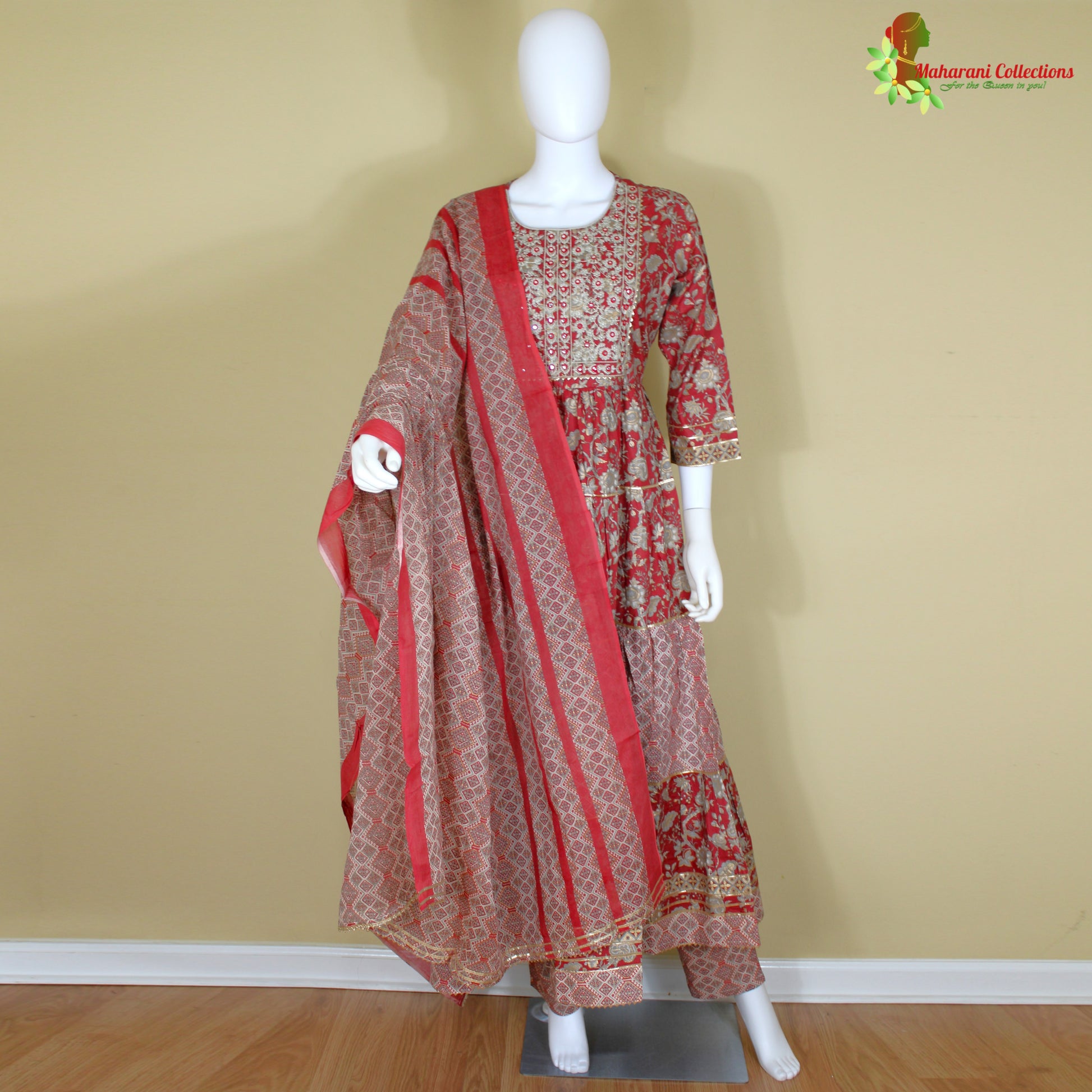 Maharani's Anarkali Suit - Maroon (M) - Pure Cotton