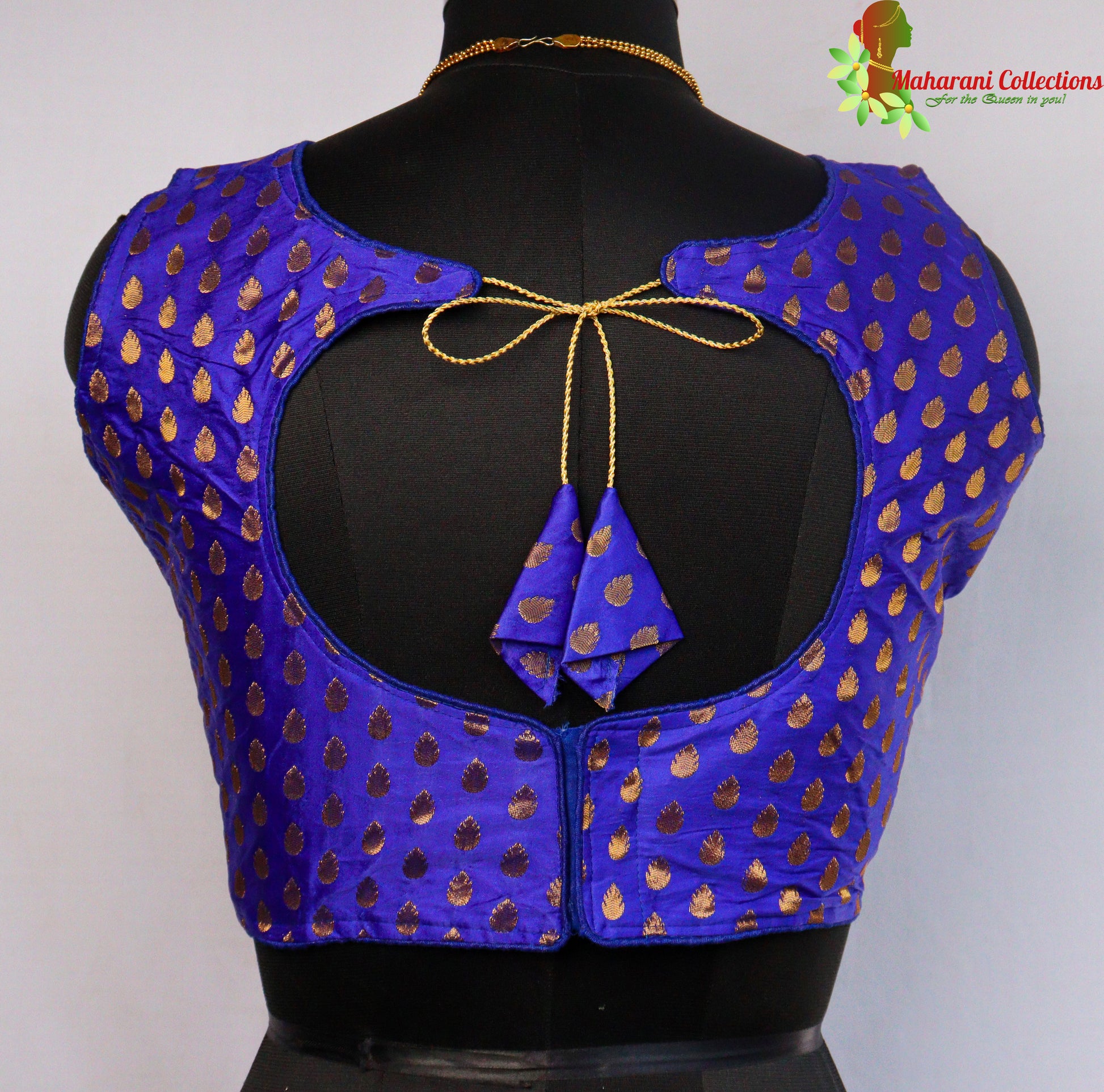 Maharani's Banarasi Silk Blouse with Golden Boota - Robin Blue