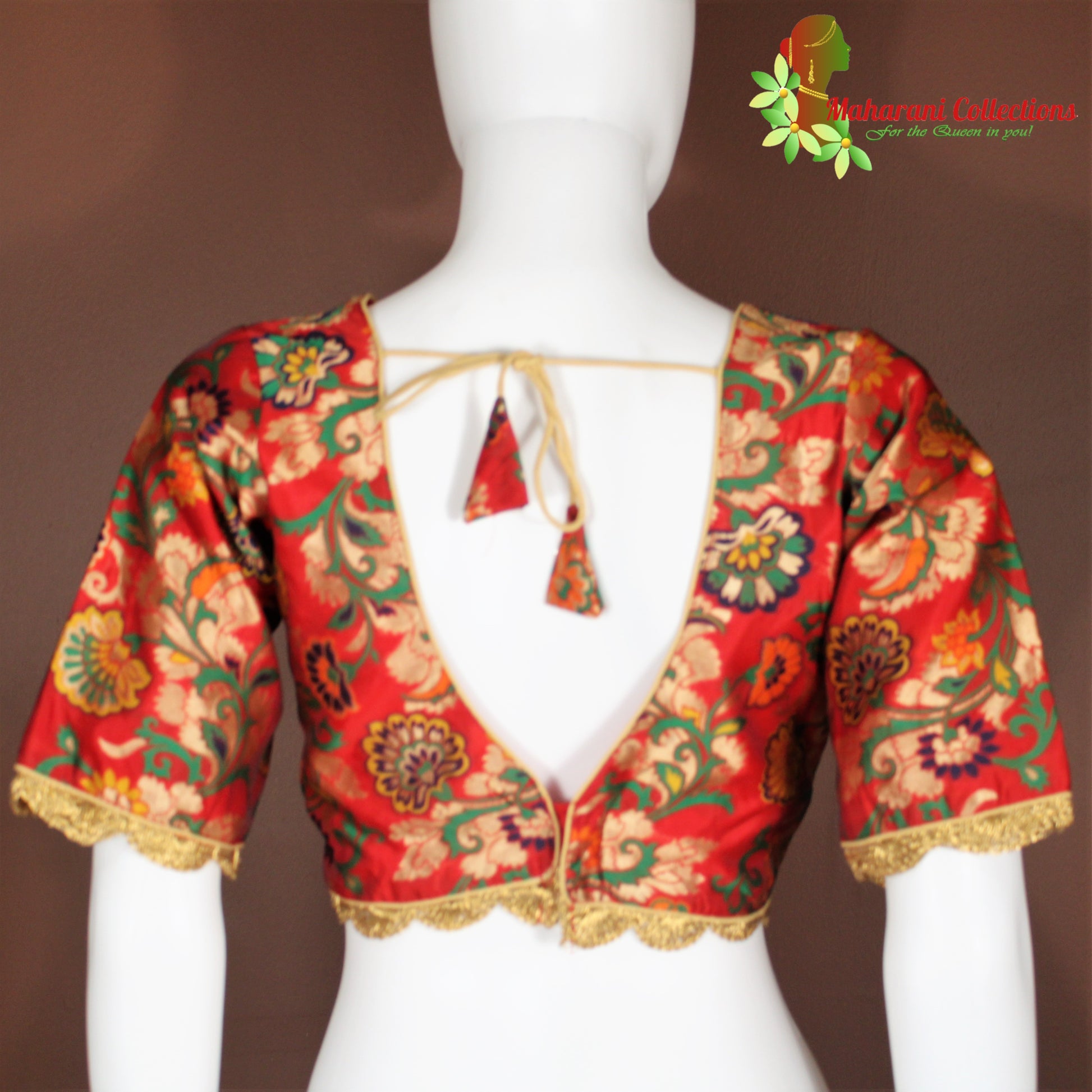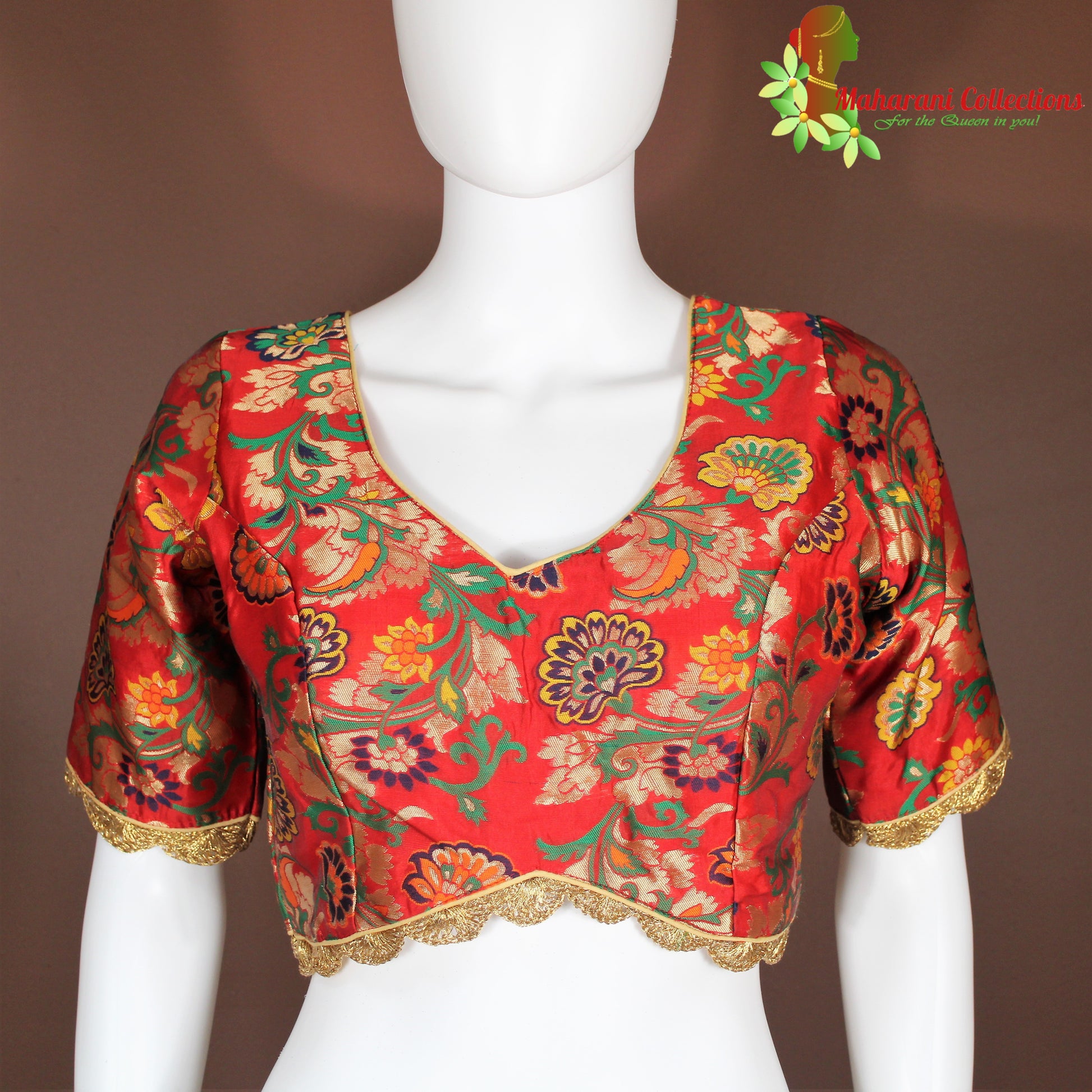 Maharani's Banarasi Silk Brocade Blouse - Floral Red