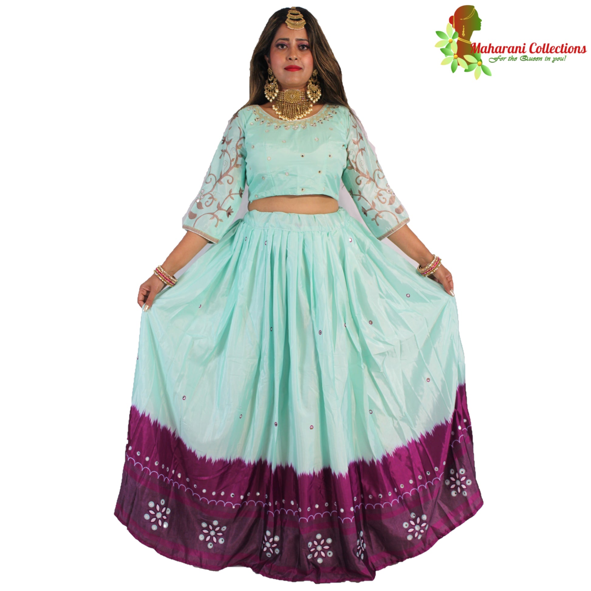 Maharani's Soft Silk Lehenga - Mint and Purple