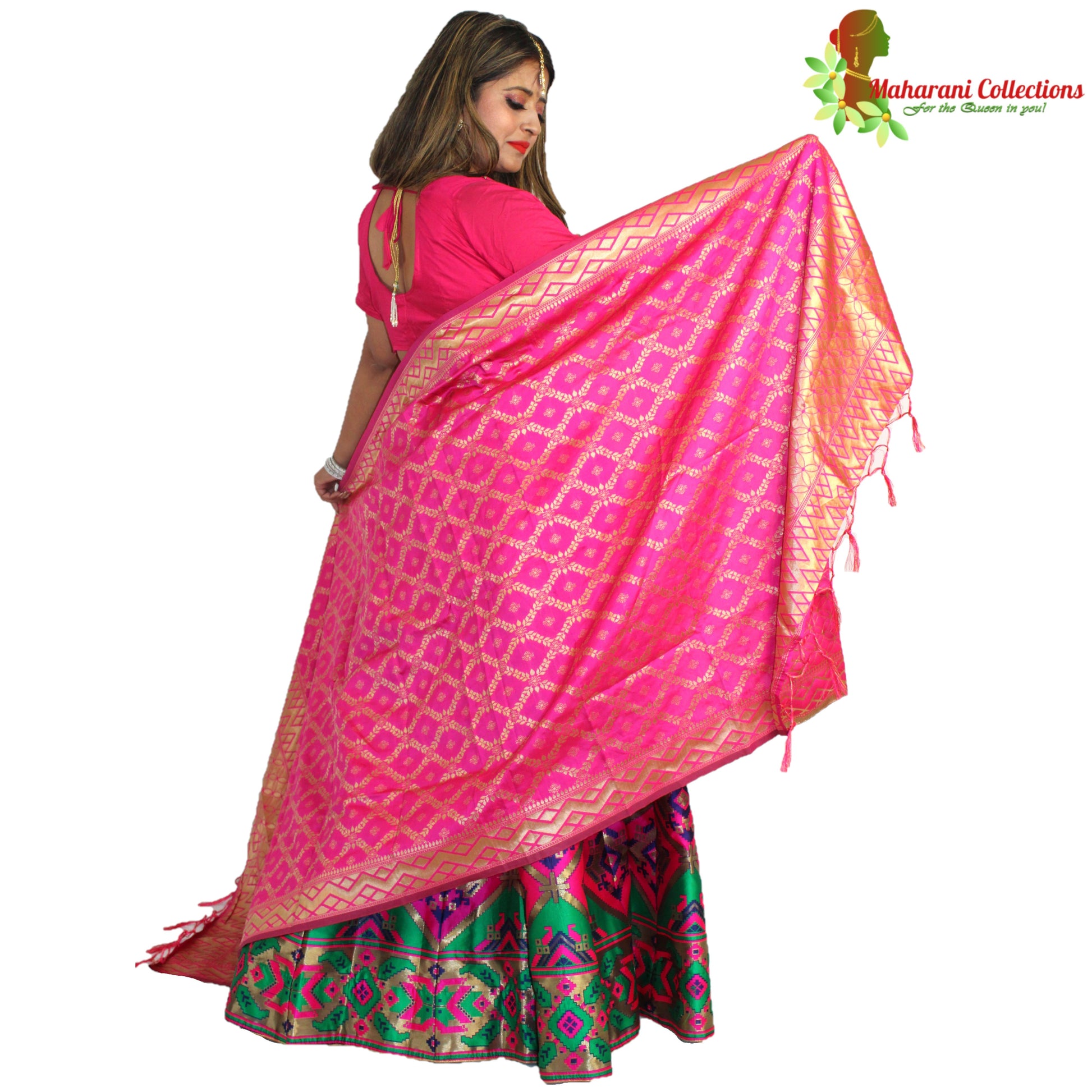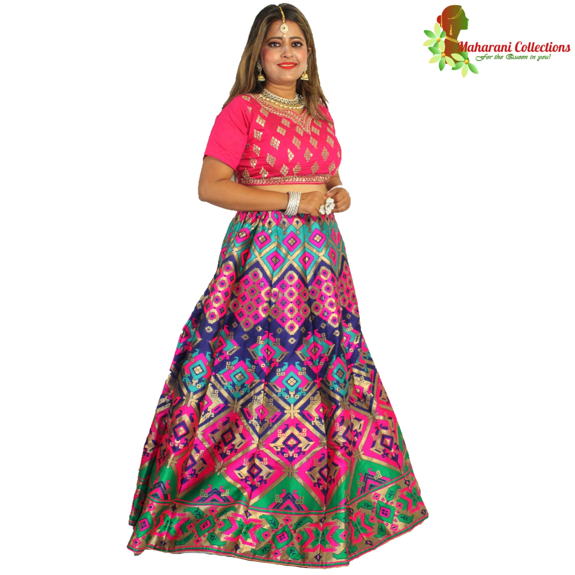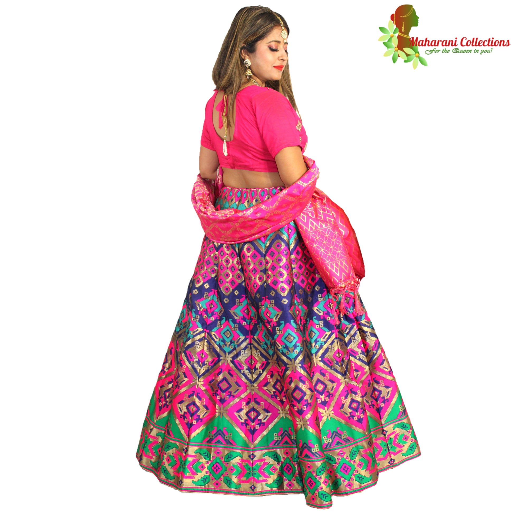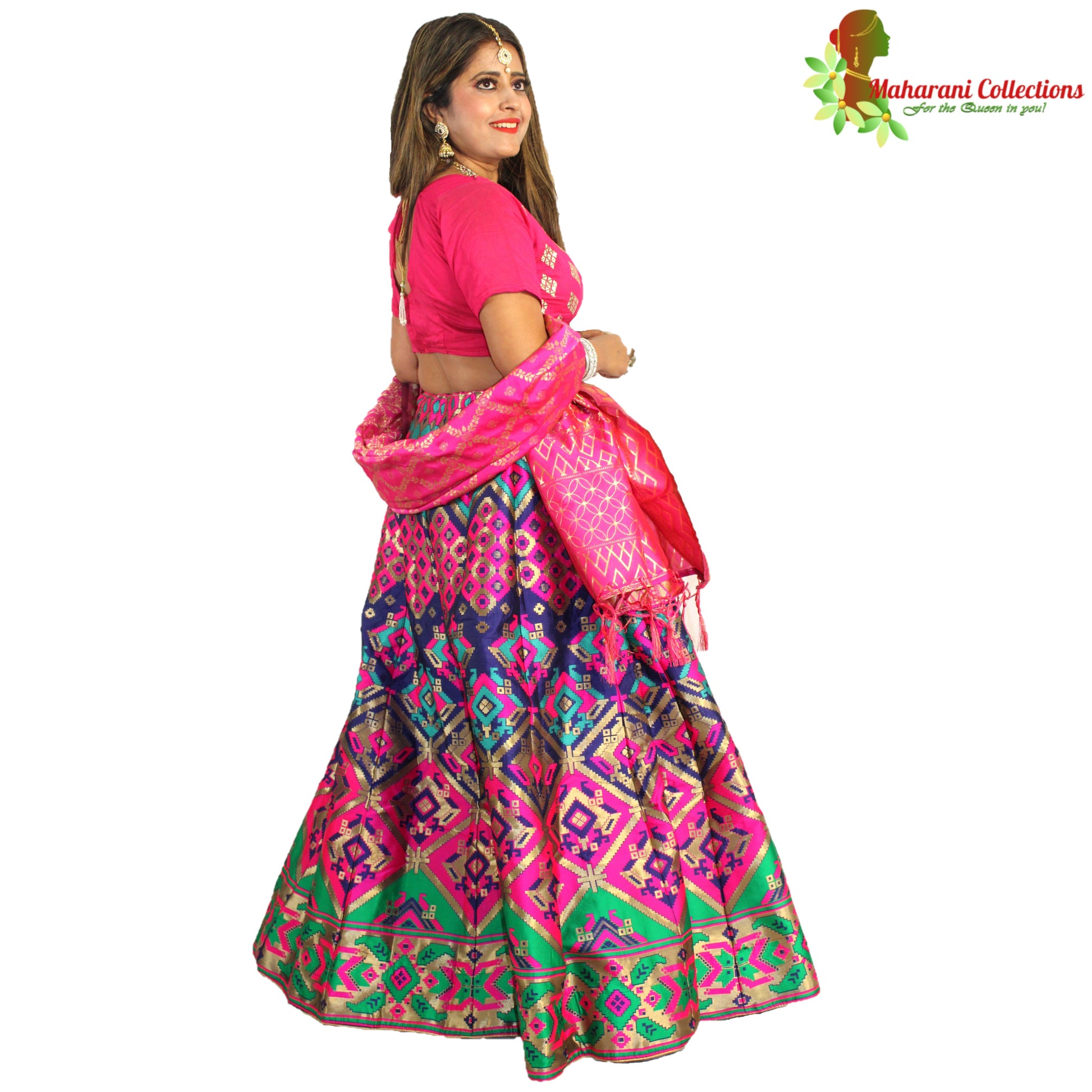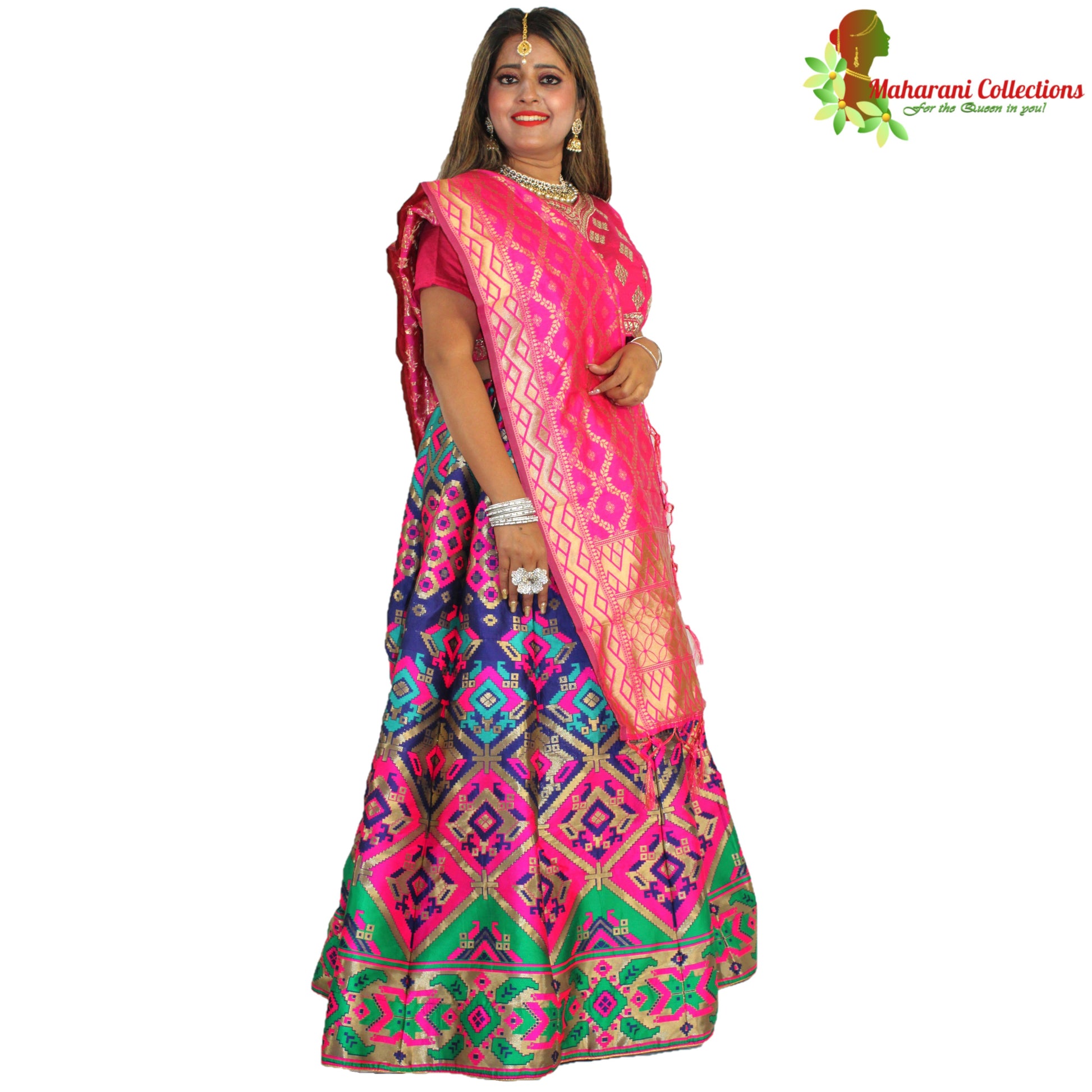 Maharani's Designer Pure Banarasi Silk Lehenga - Pink, Green and Blue (M/L)