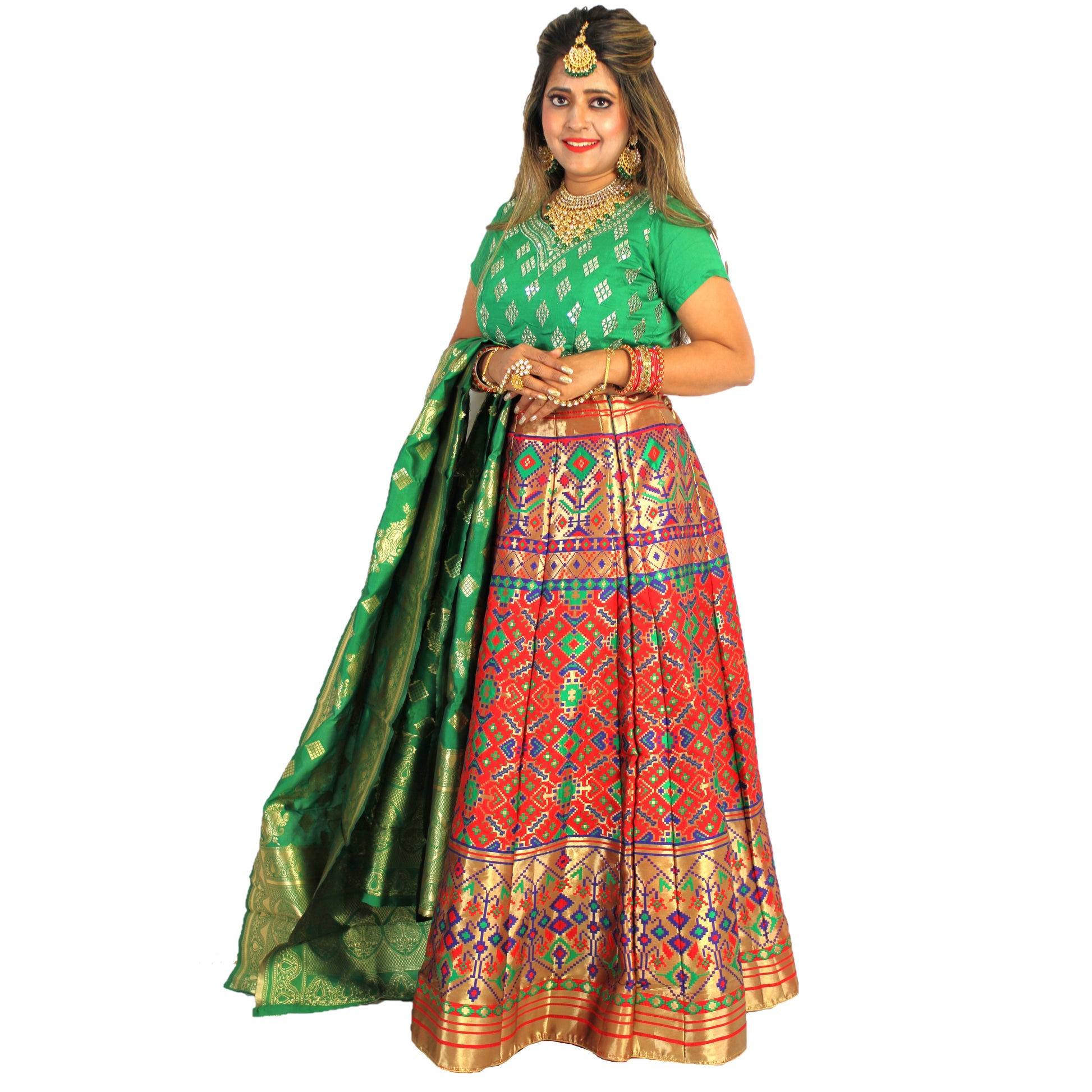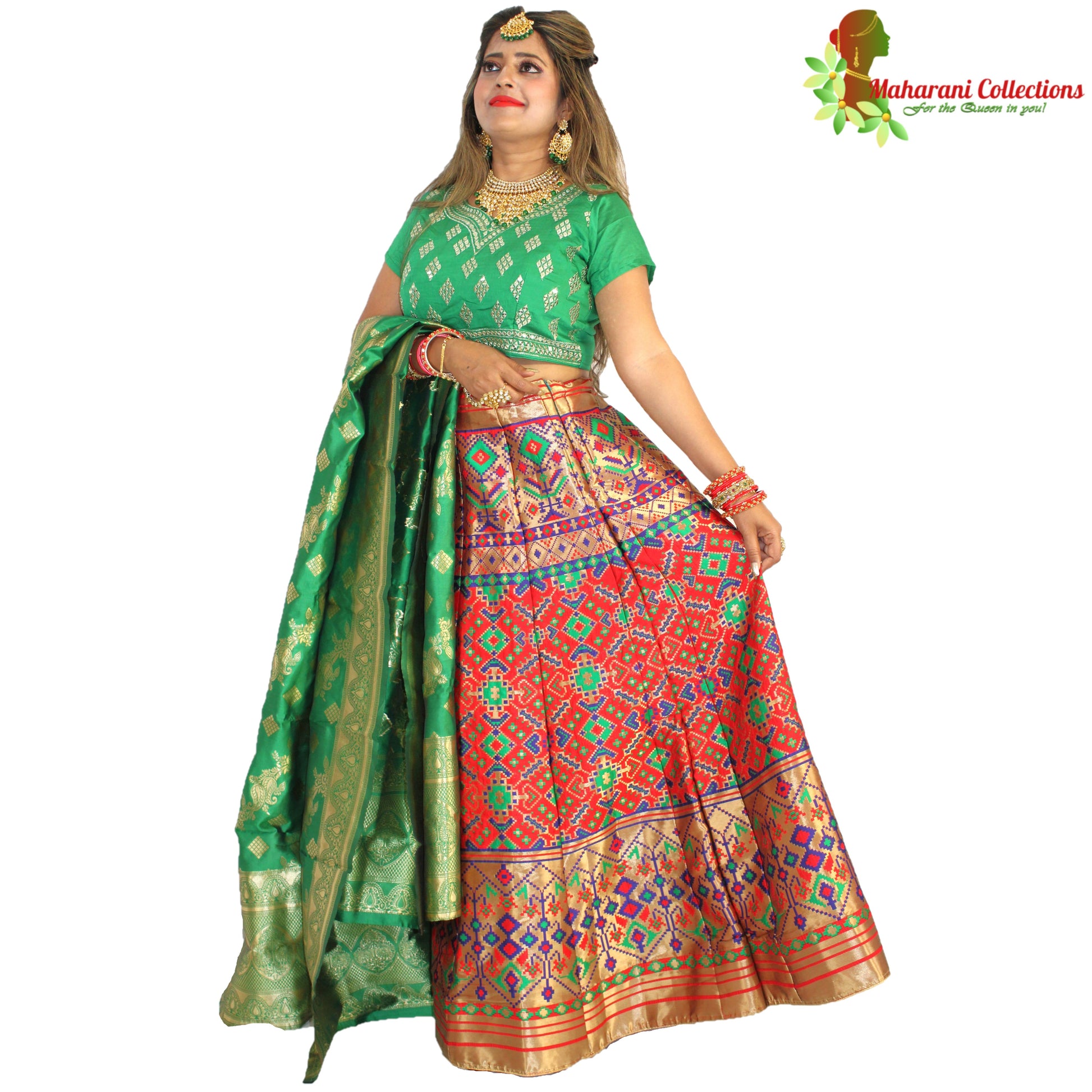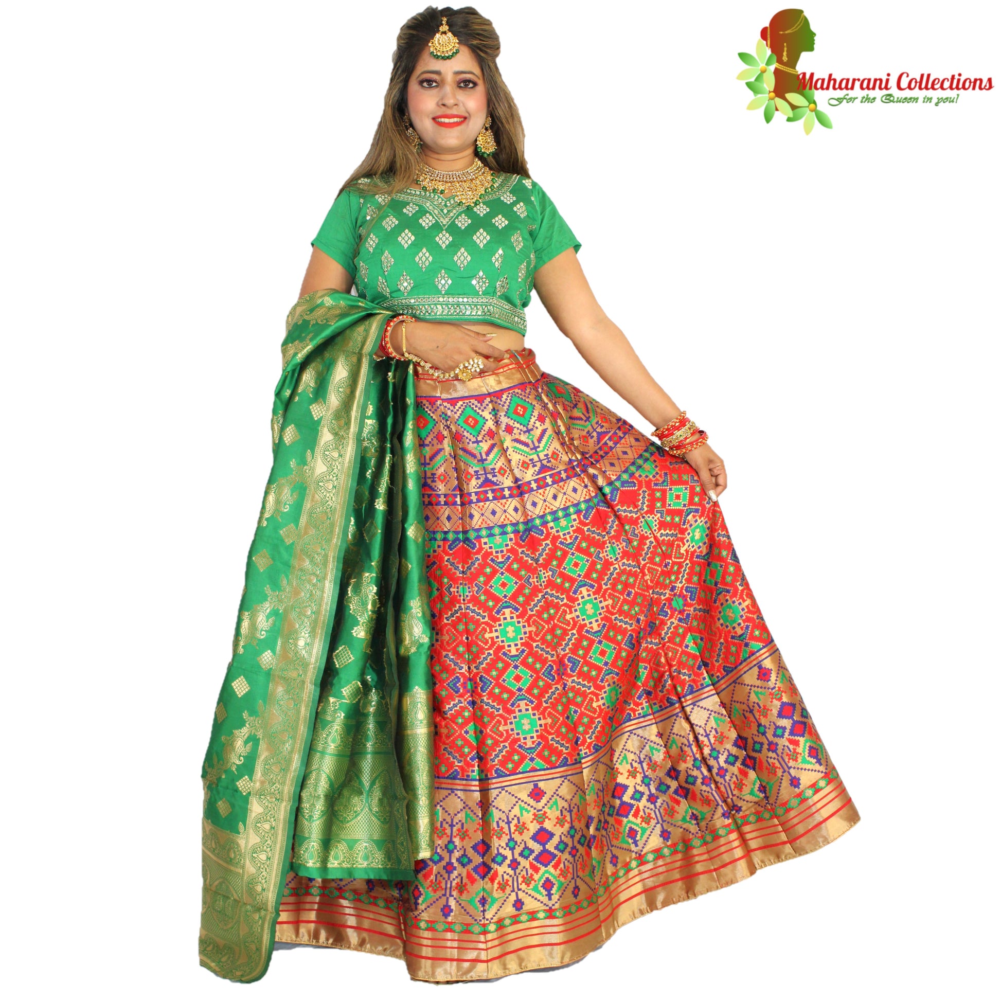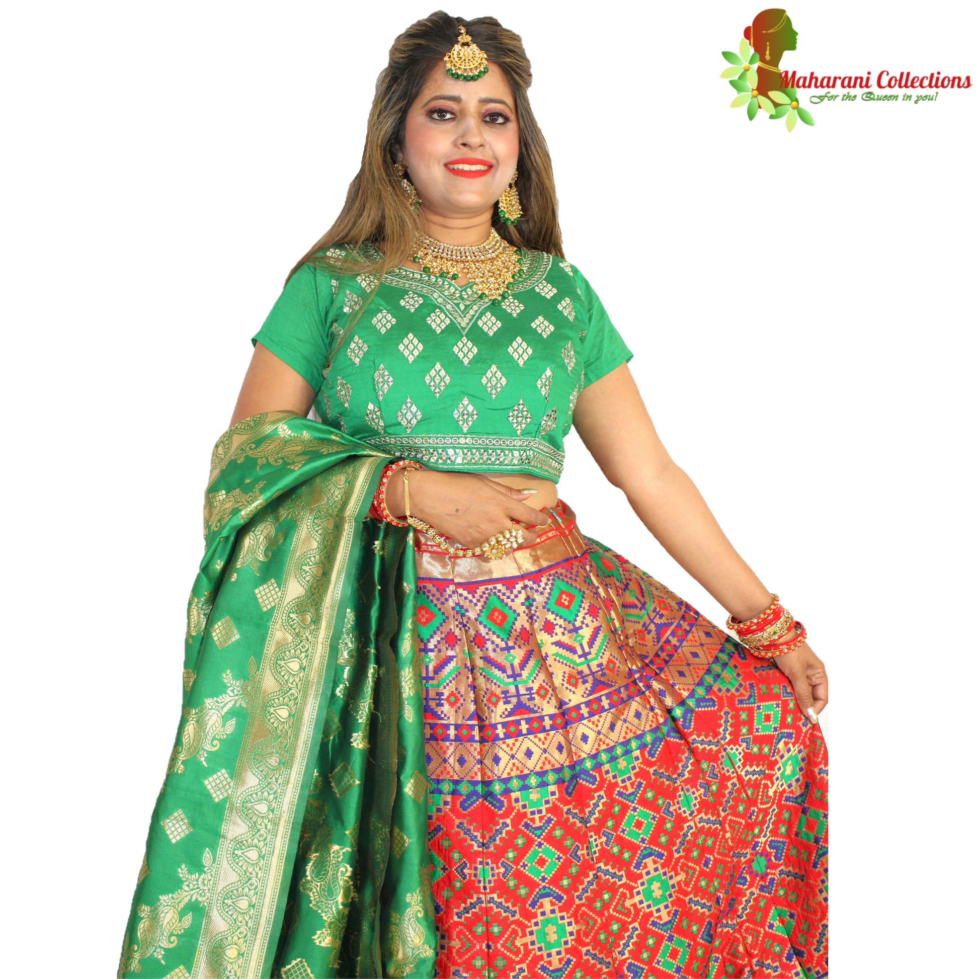 Maharani's Designer Pure Banarasi Silk Lehenga - Green, Gold and Red (M/L)