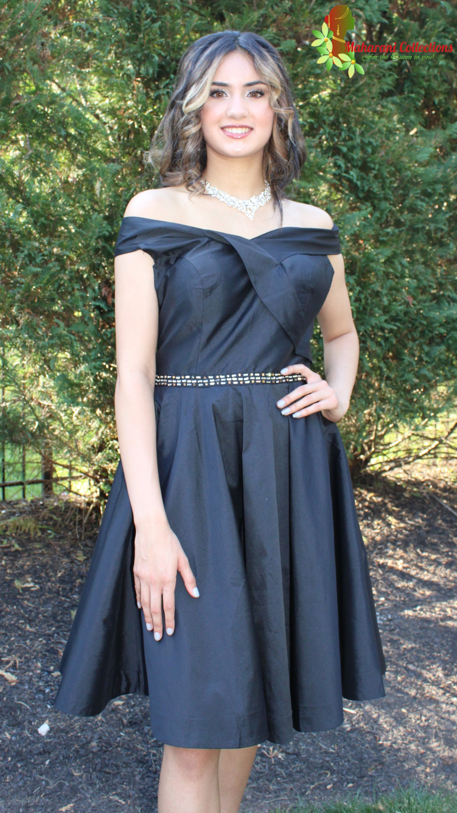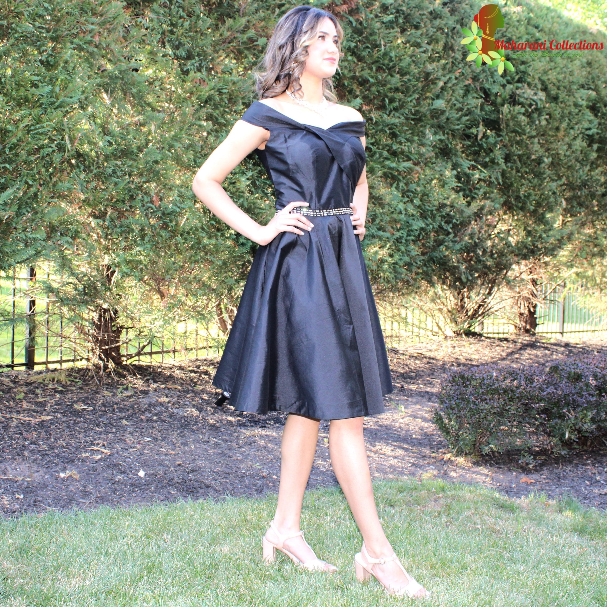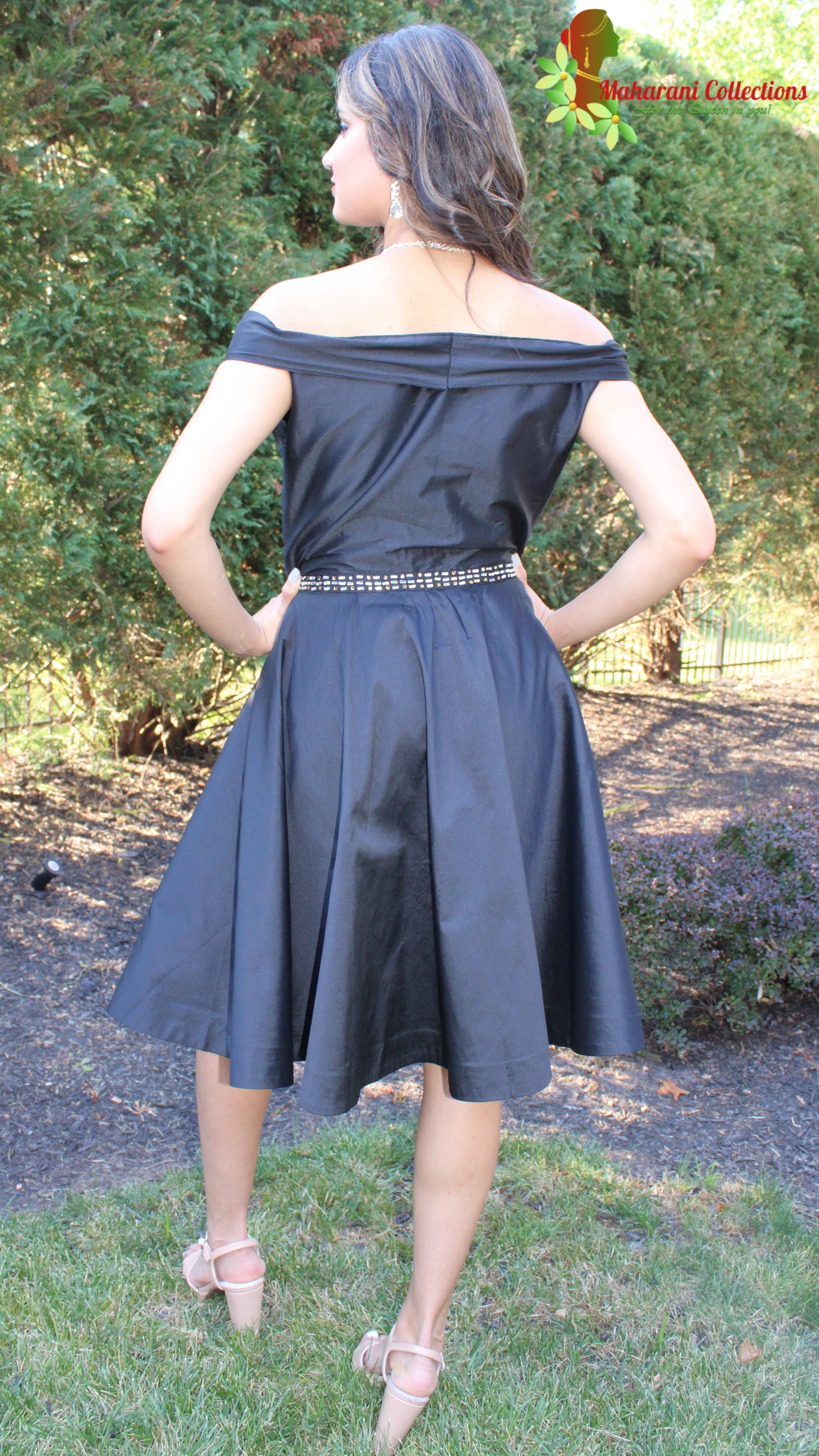 Maharani's finest, designer flared short dress, designed for western formal events while presenting the elegance of an Indian princess – a unique blend of best of Indian fashion art and fabric with western design. Detailed thread, net and sequins work.