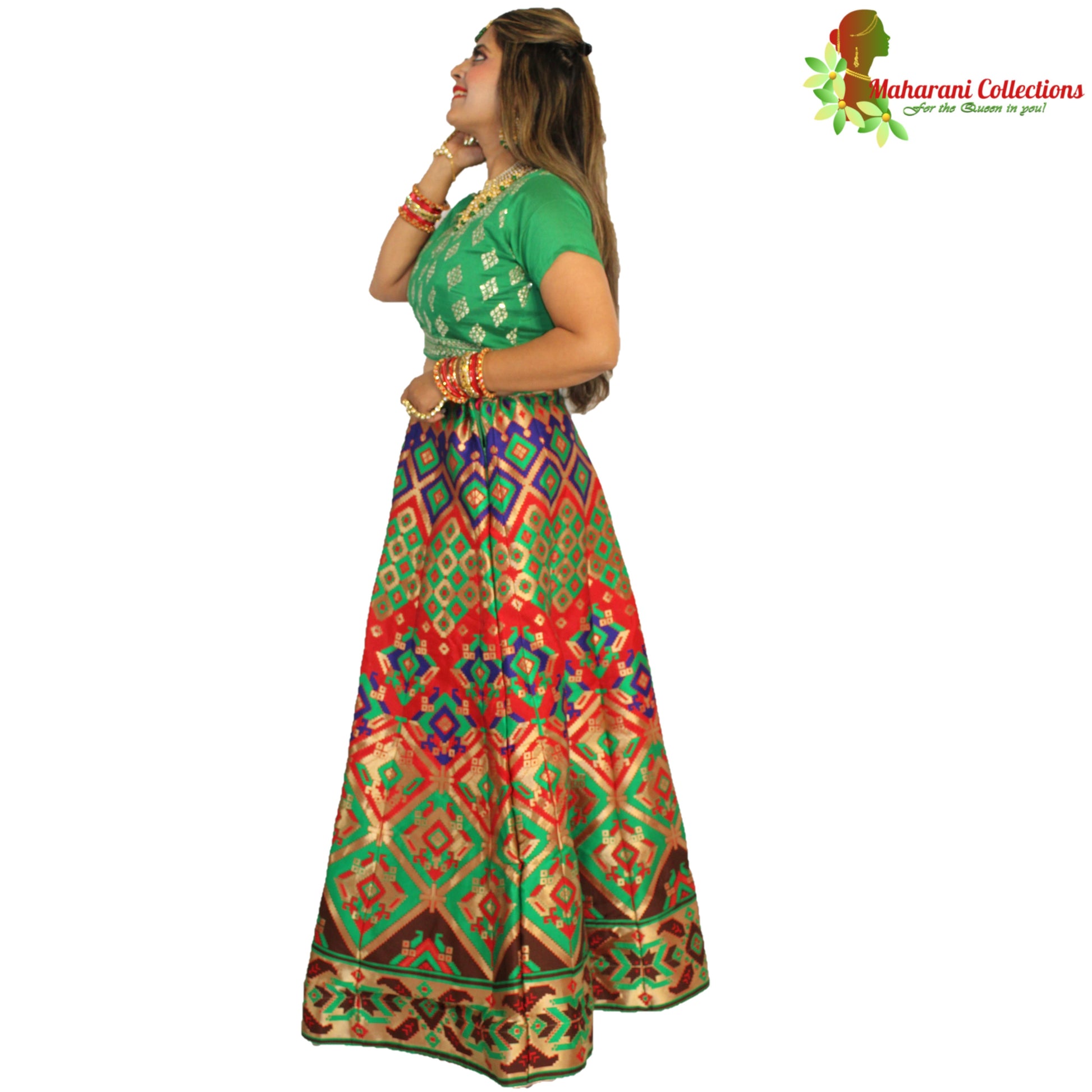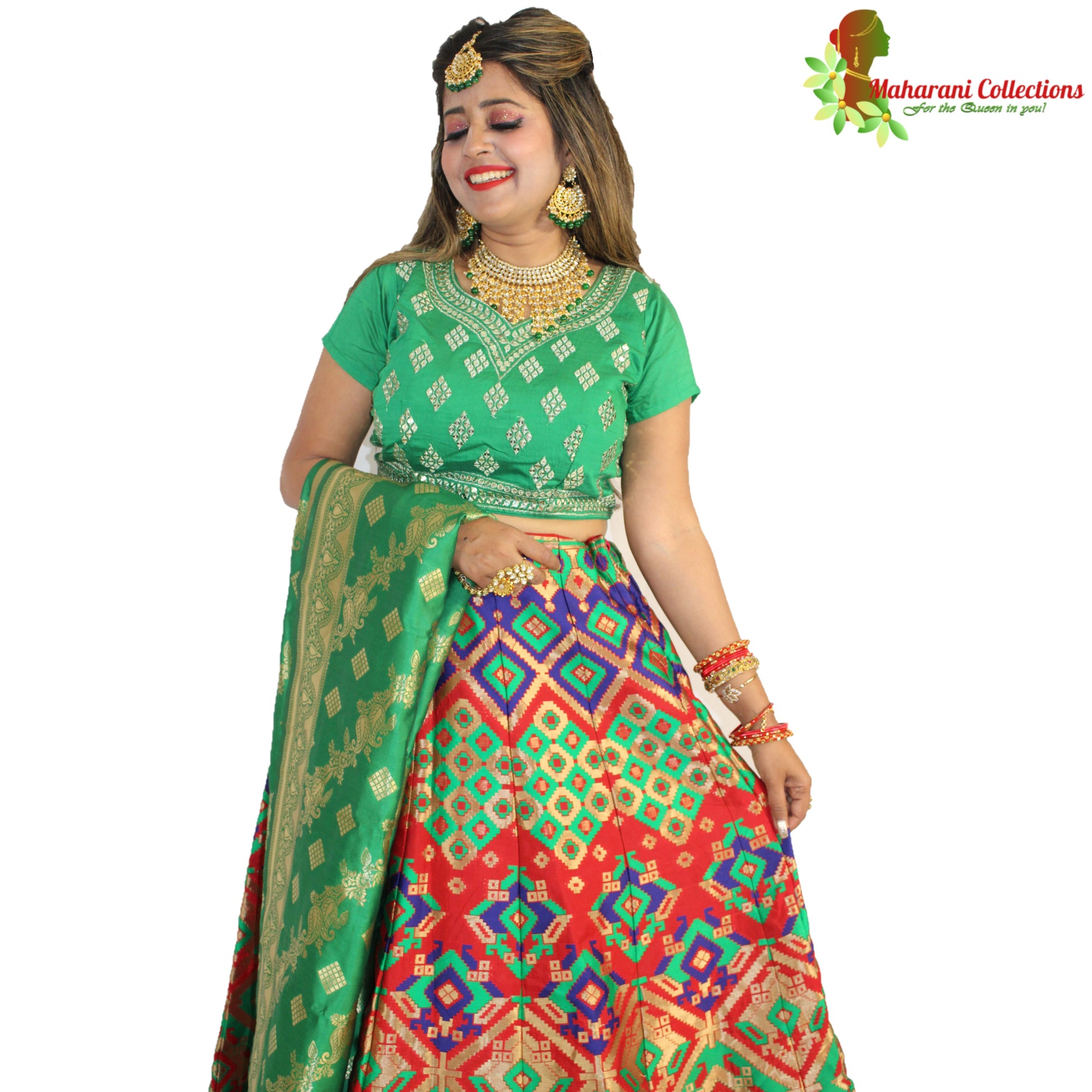 Maharani's Designer Pure Banarasi Silk Lehenga - Green and Red (M/L)