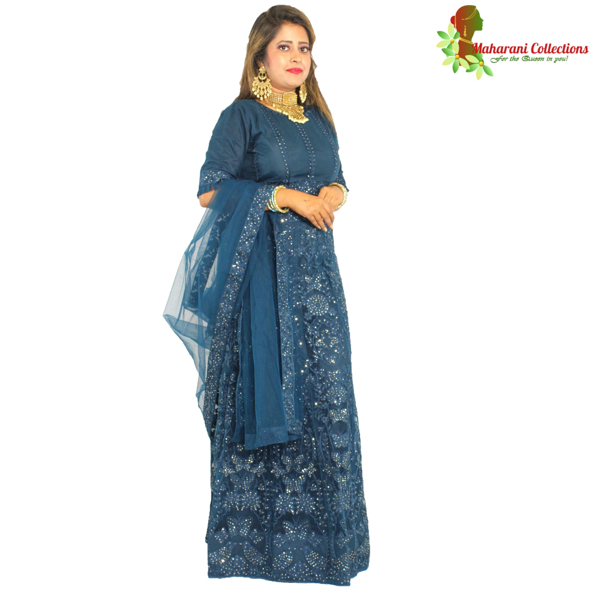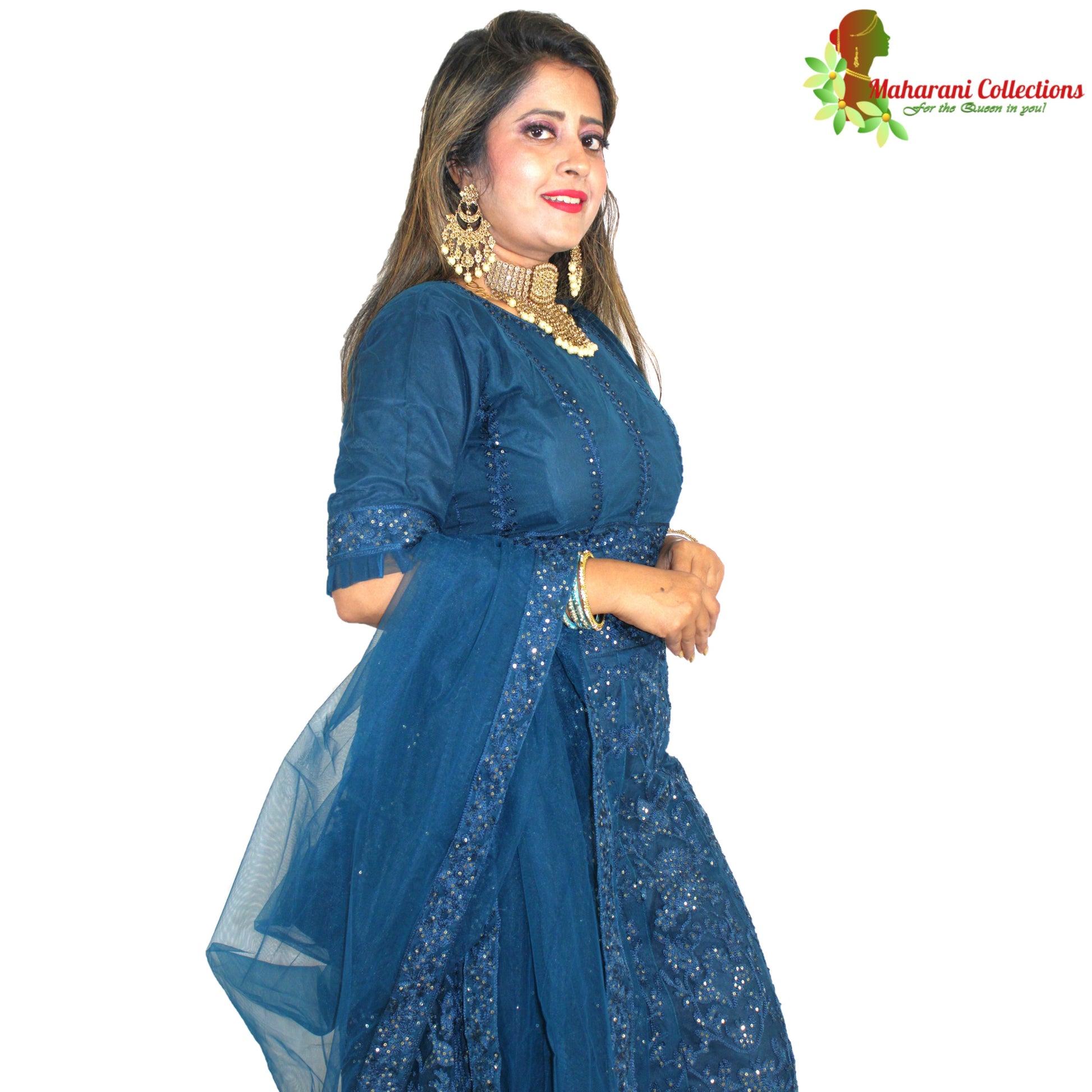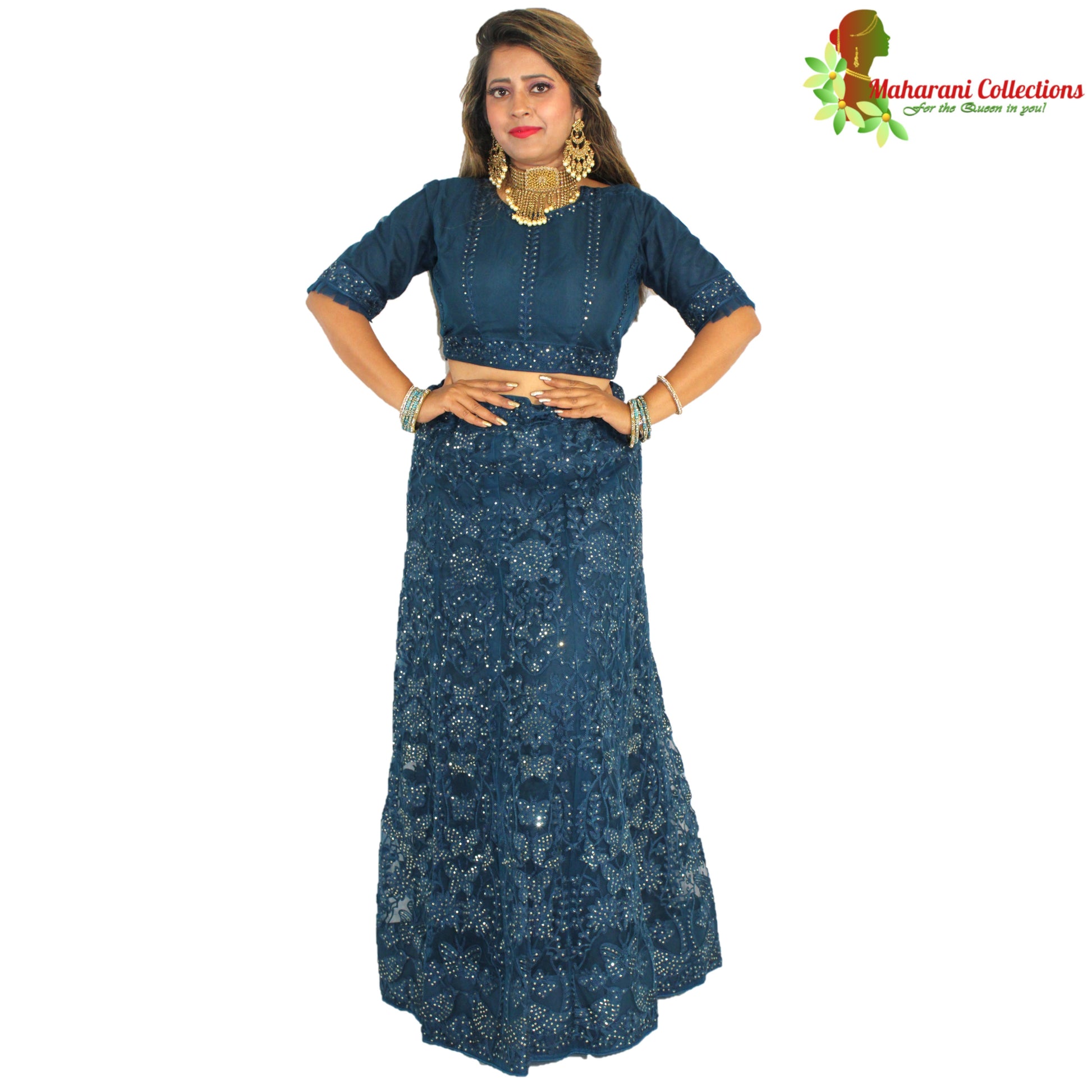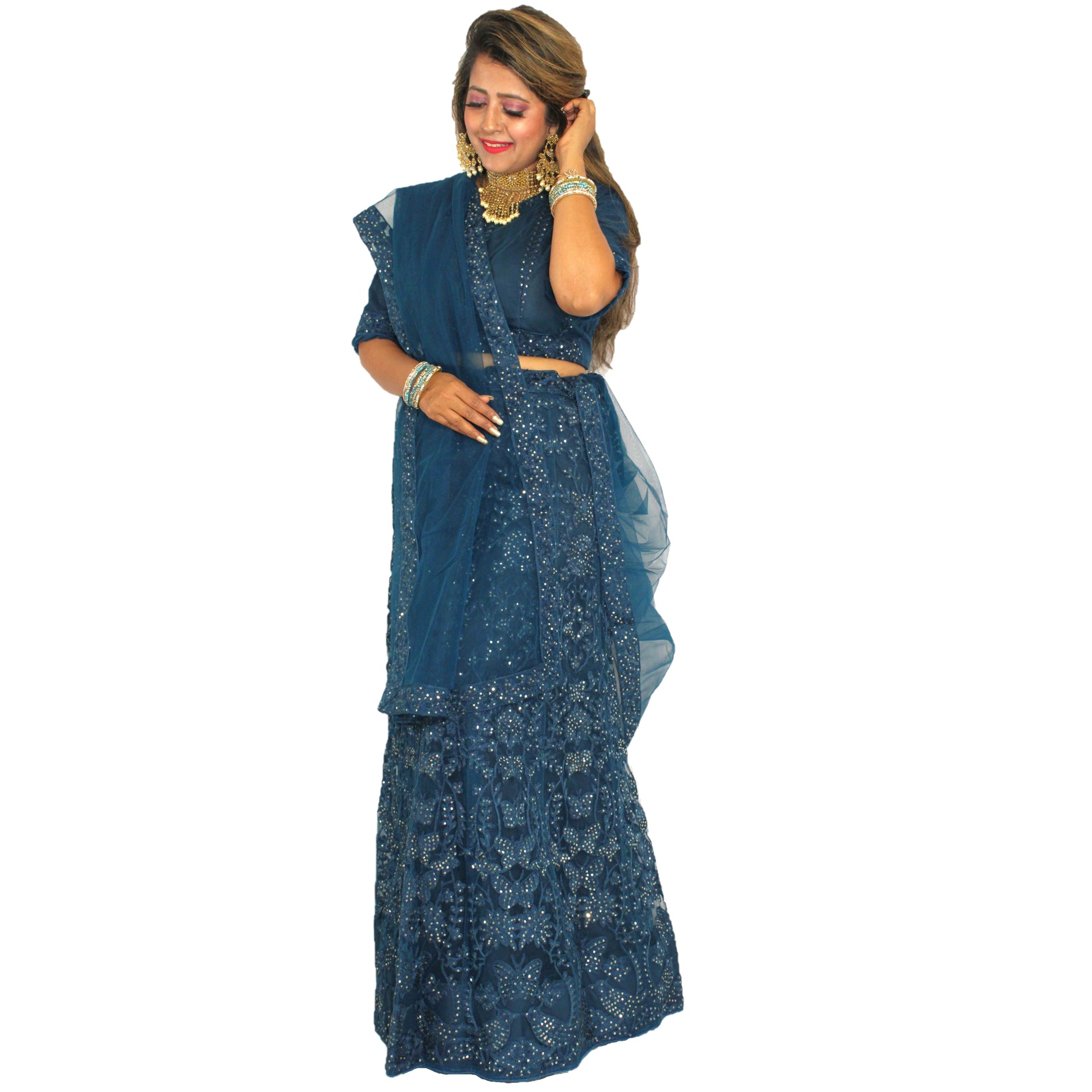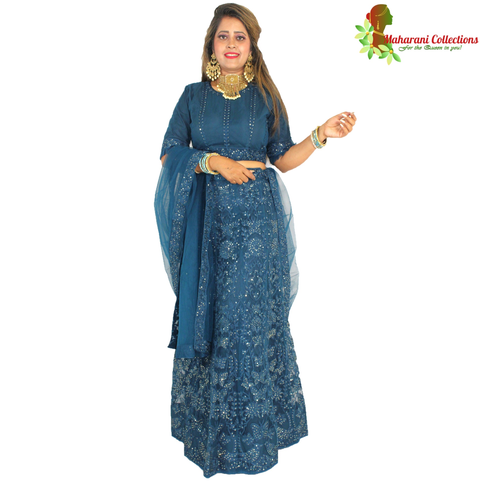 Maharani's Designer Silk & Net Lehenga - Turquoise Blue (M/L)