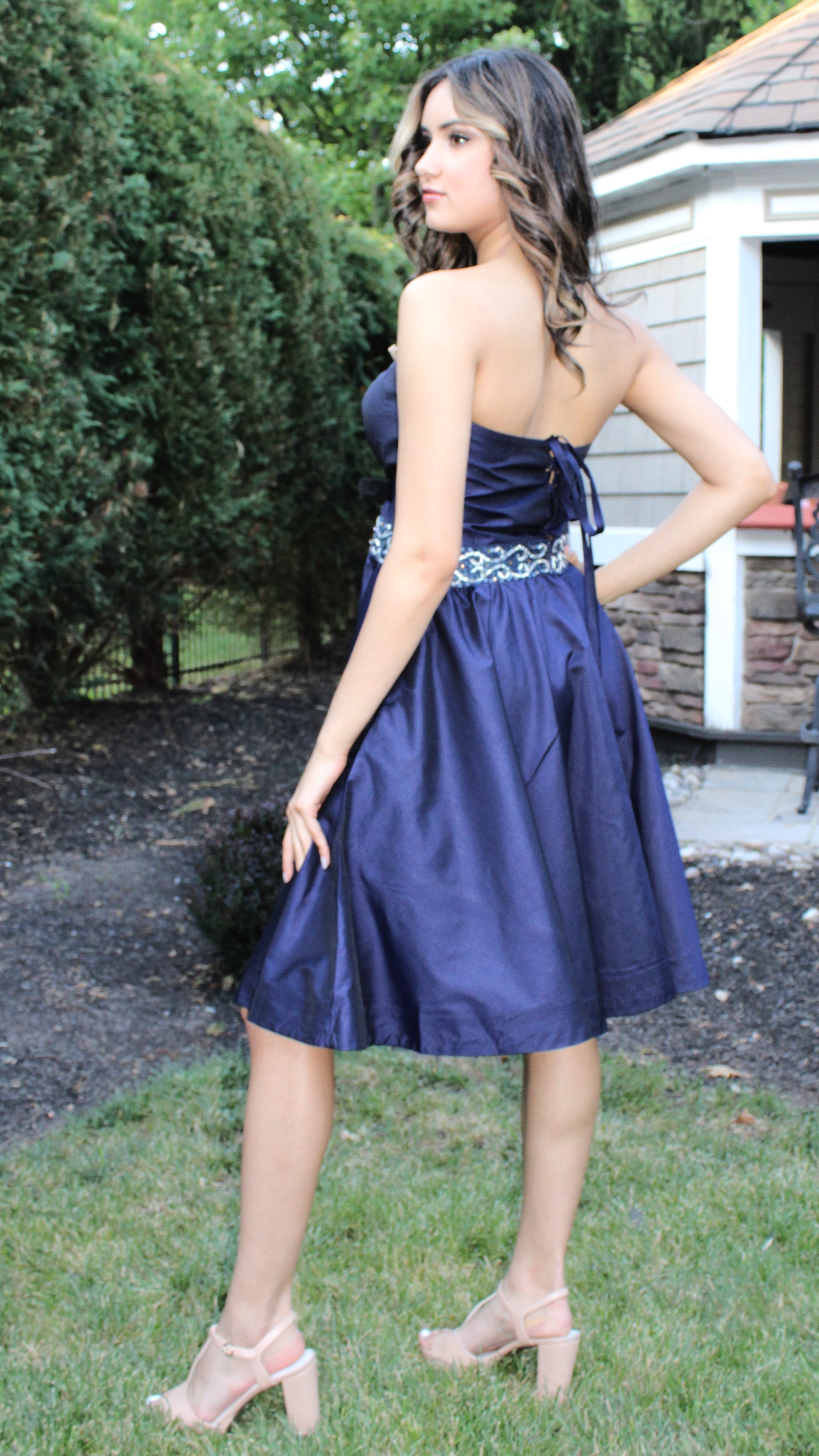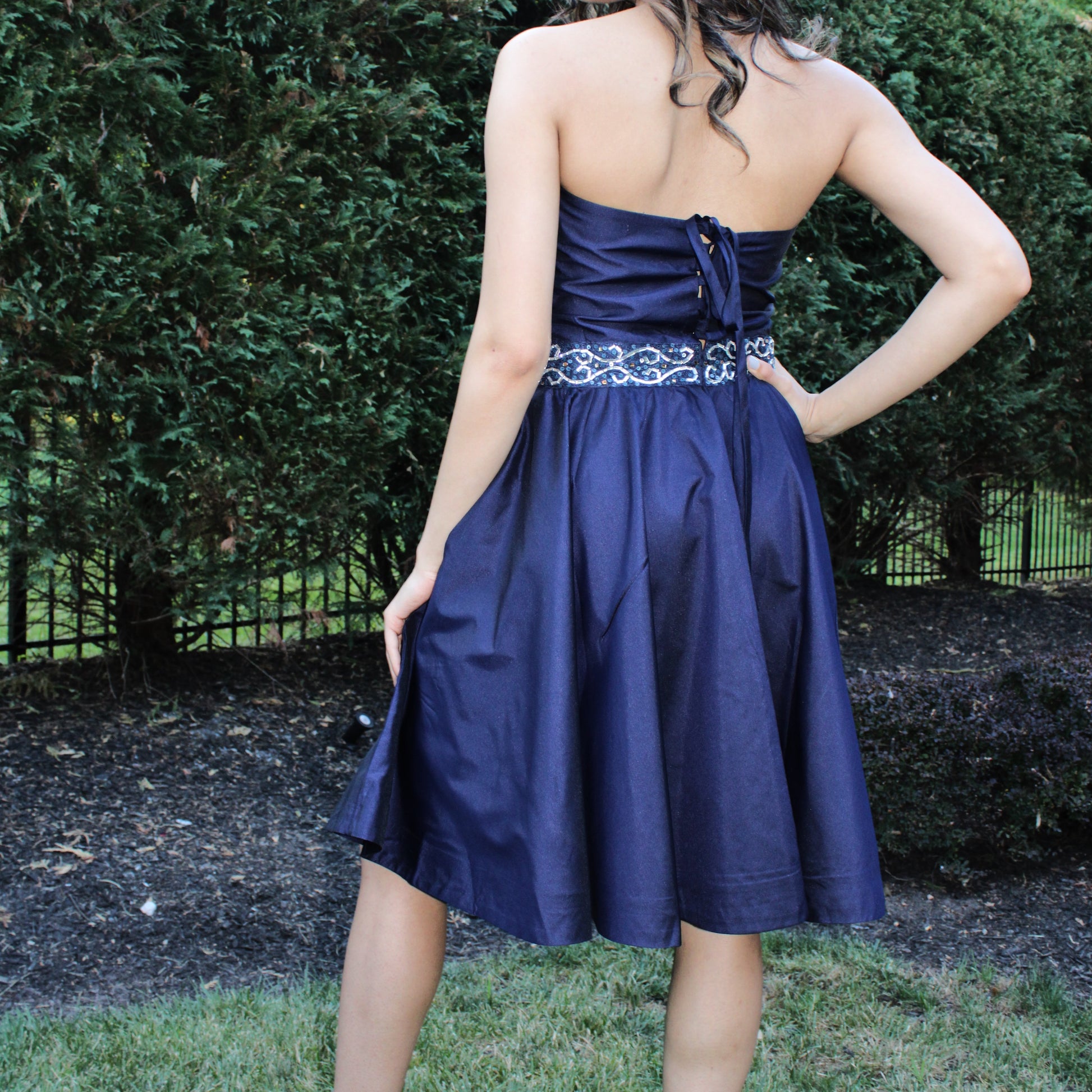 Maharani's Designer Silk Evening Dress - Navy Blue (M)