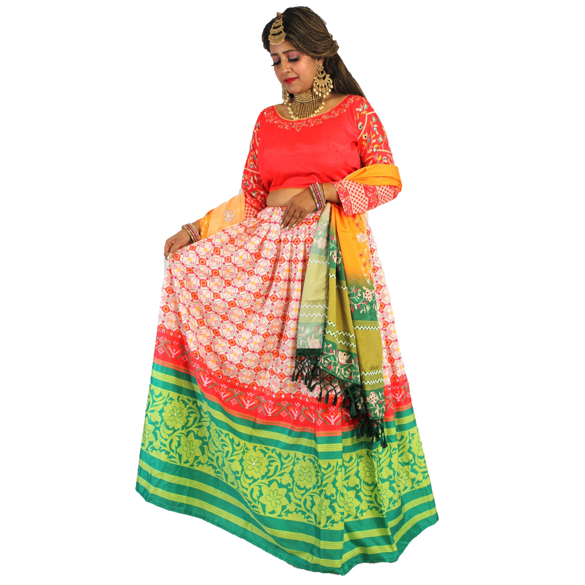 Maharani's Soft Silk Lehenga - Red, White and Green