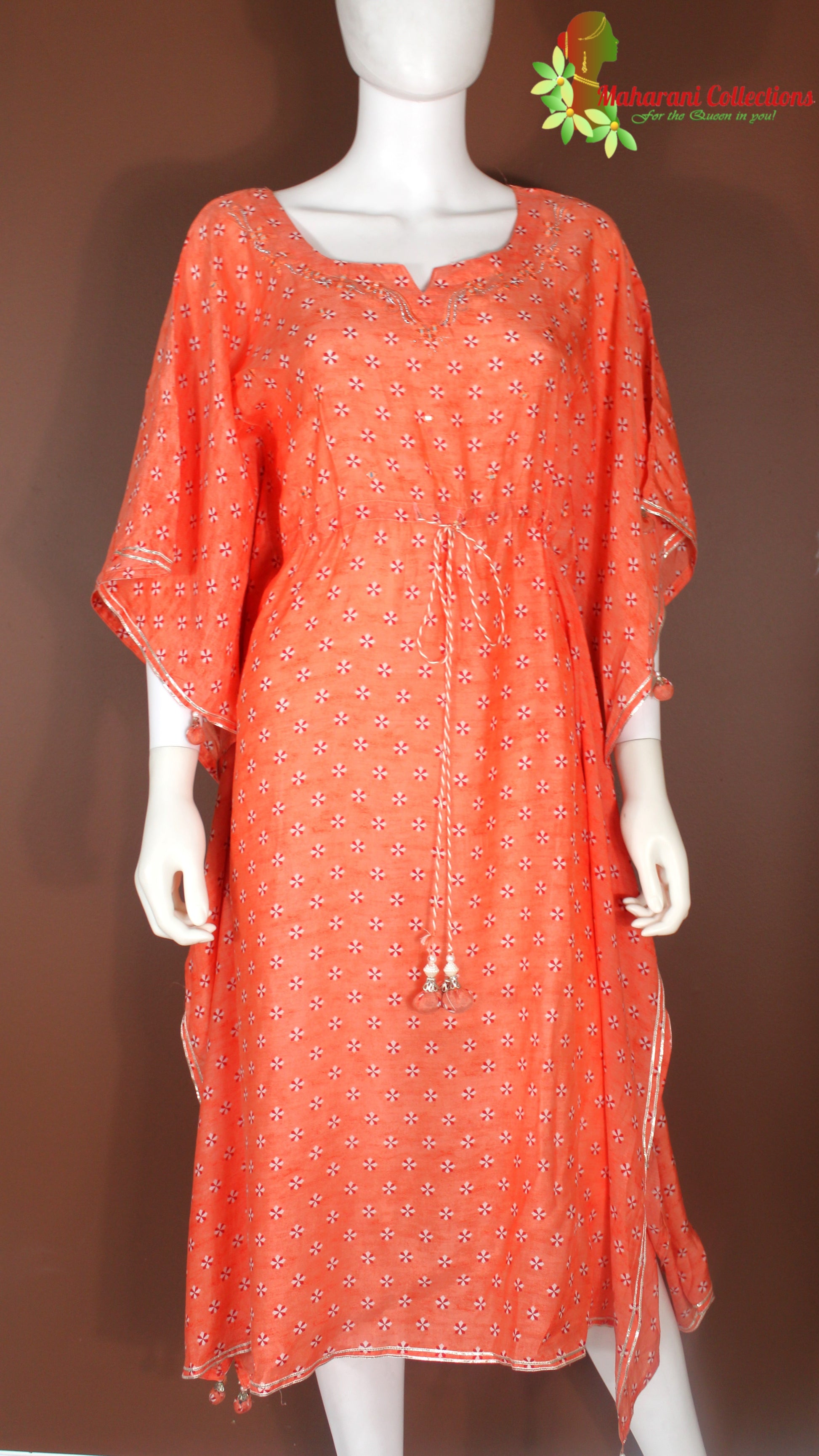 Maharani's Kaftan Suit - Muslin Silk - Orange (M, L, XL, XXL)