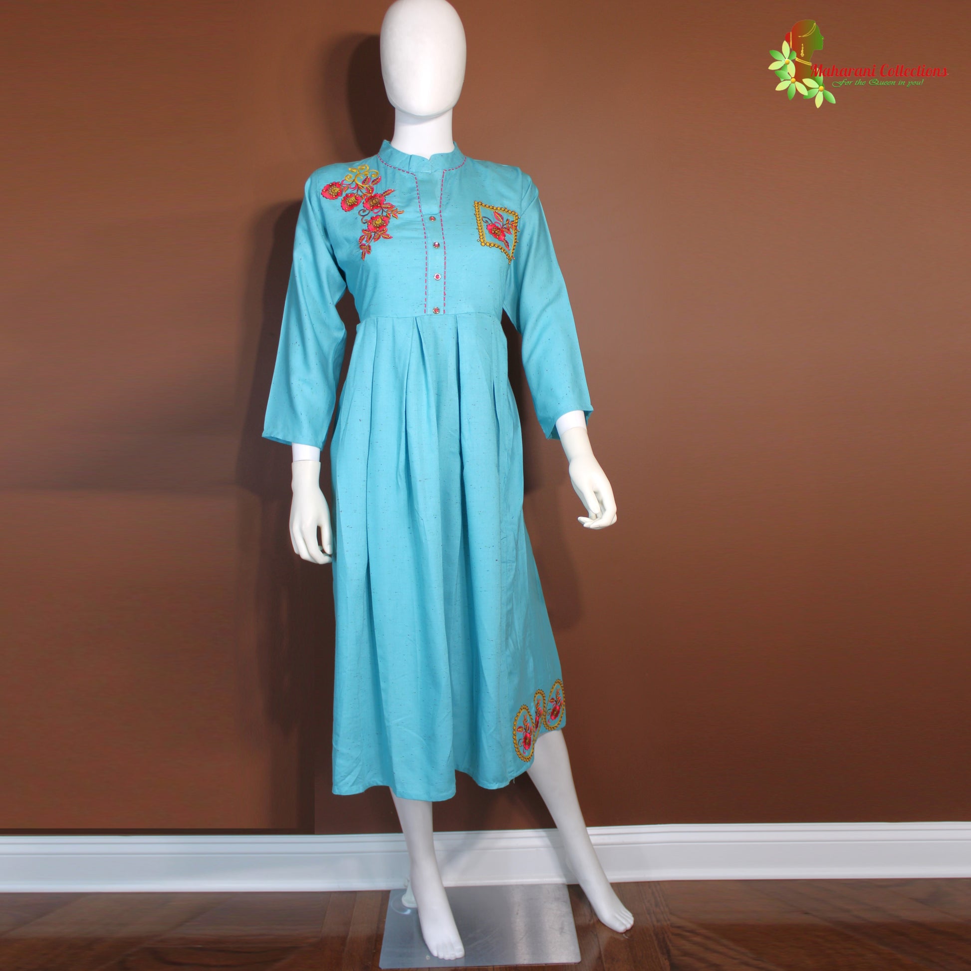 Maharani's Long Dress - Pure Cotton - Light Blue (L)