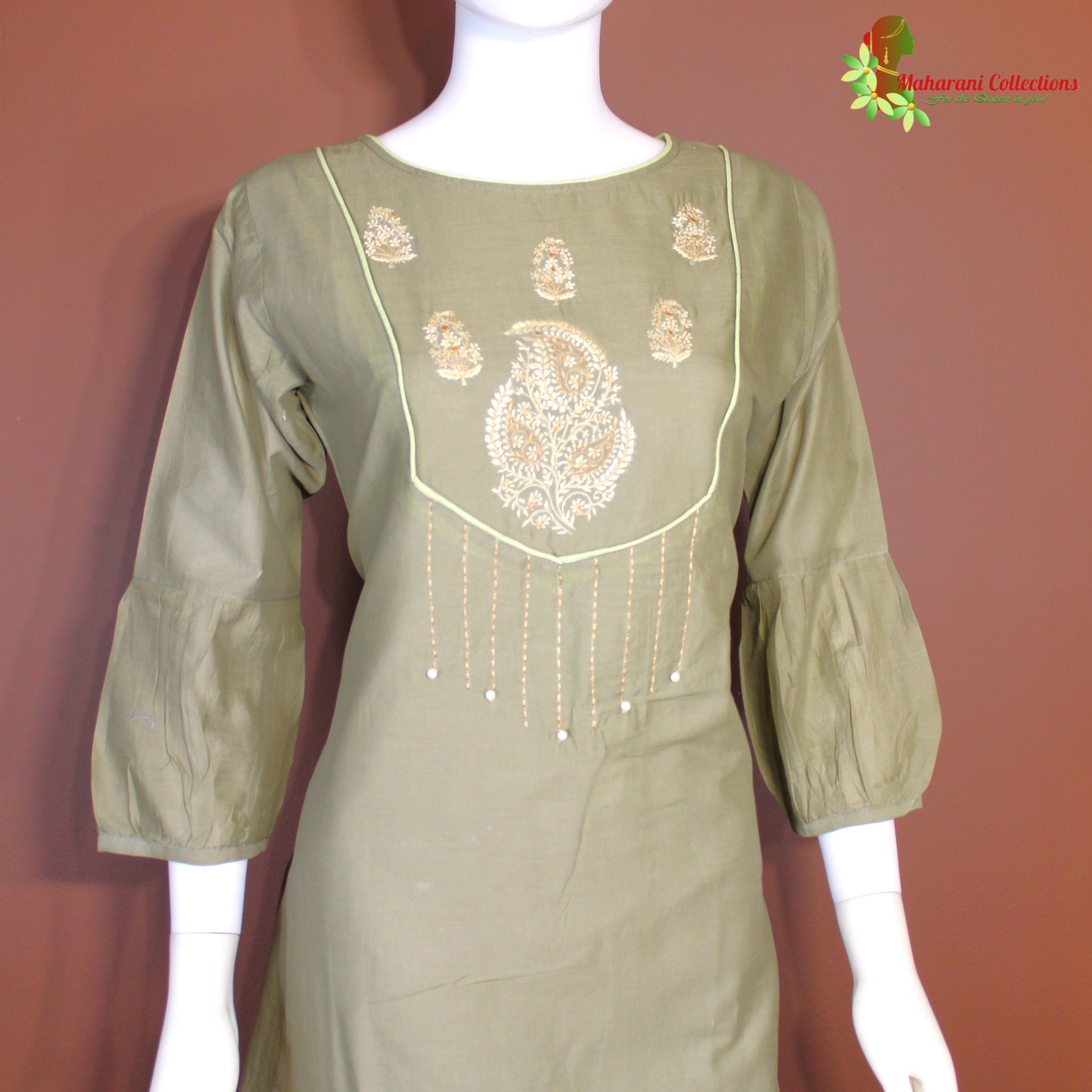 Maharani's Long Dress - Soft Cotton - Olive Green (M)
