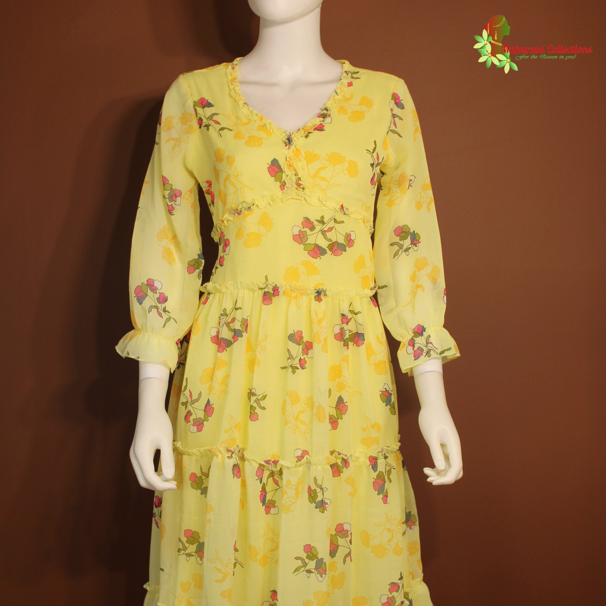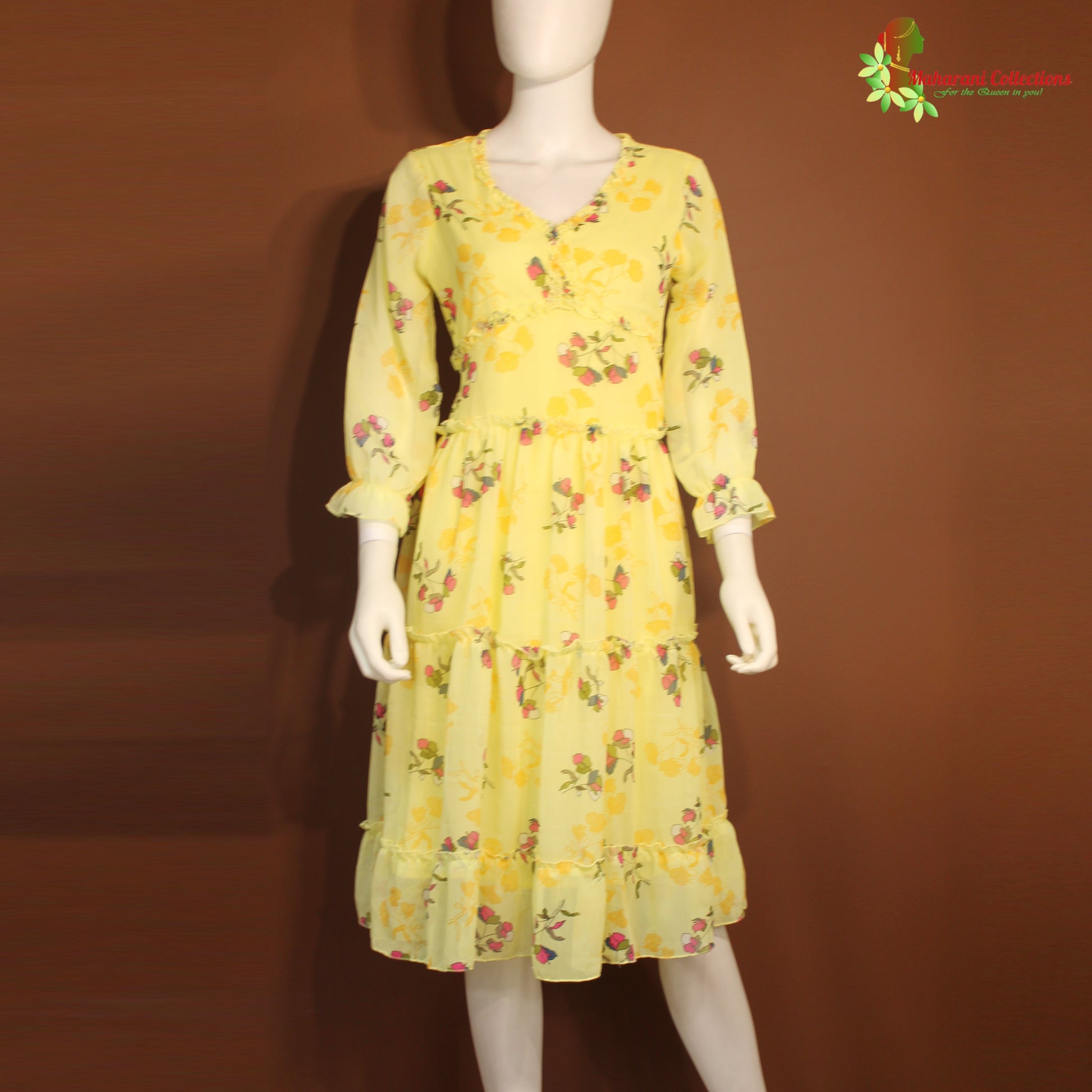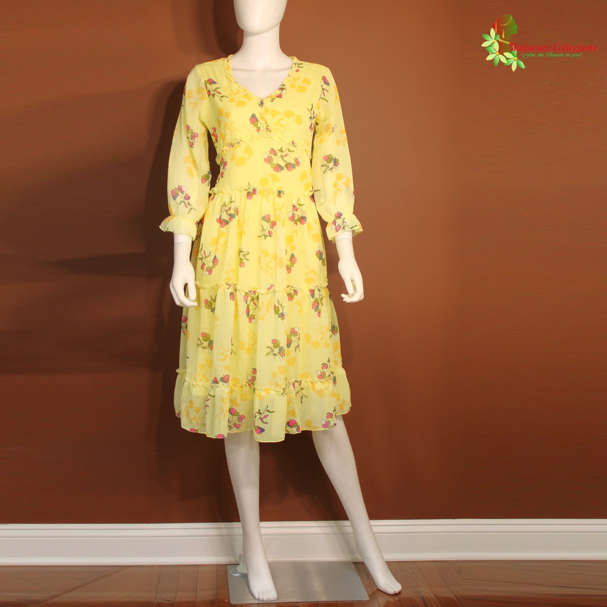 Maharani's Short Dress - Georgette - Lemon Yellow (XS)