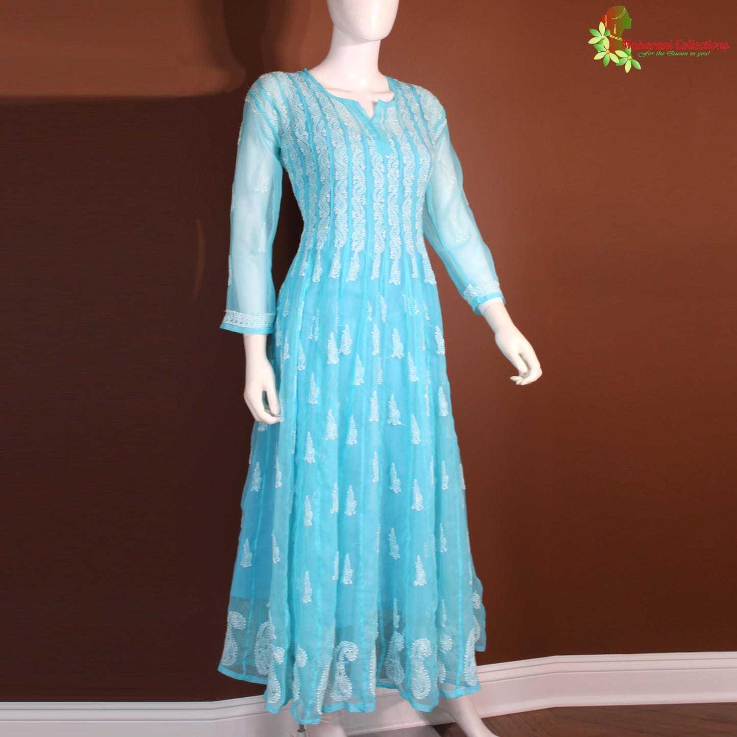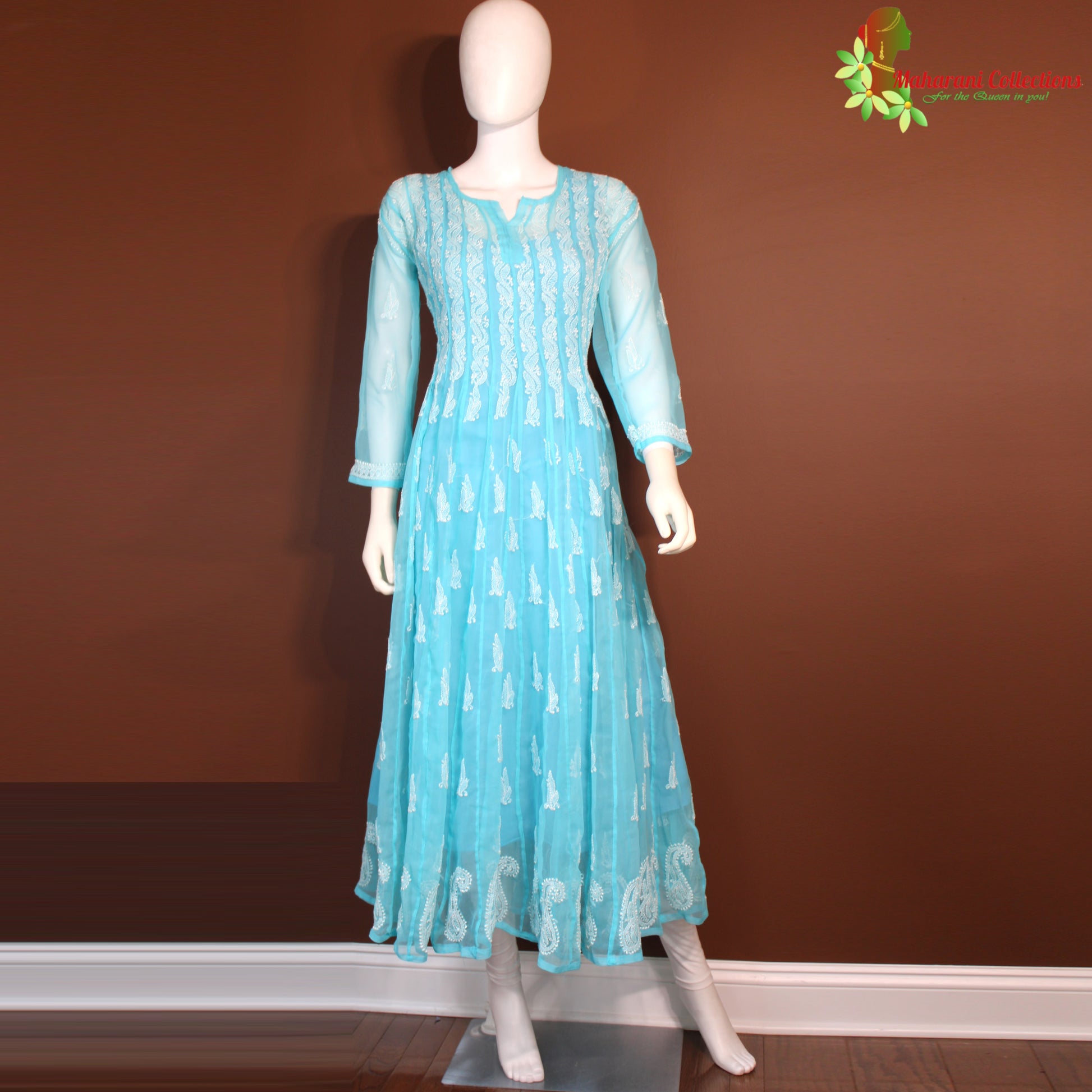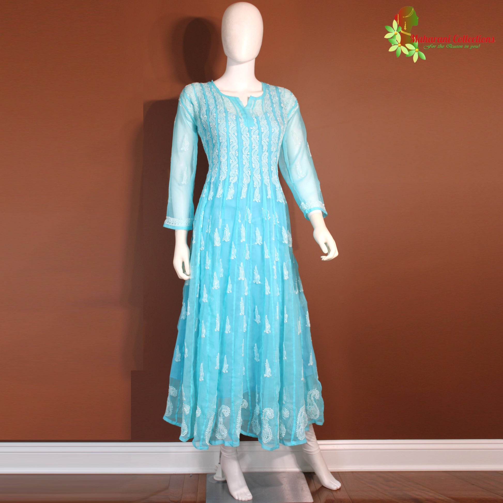 Maharani's Lucknowi Chikankari Anarkali Suit - Sky Blue (L) - Pure Georgette