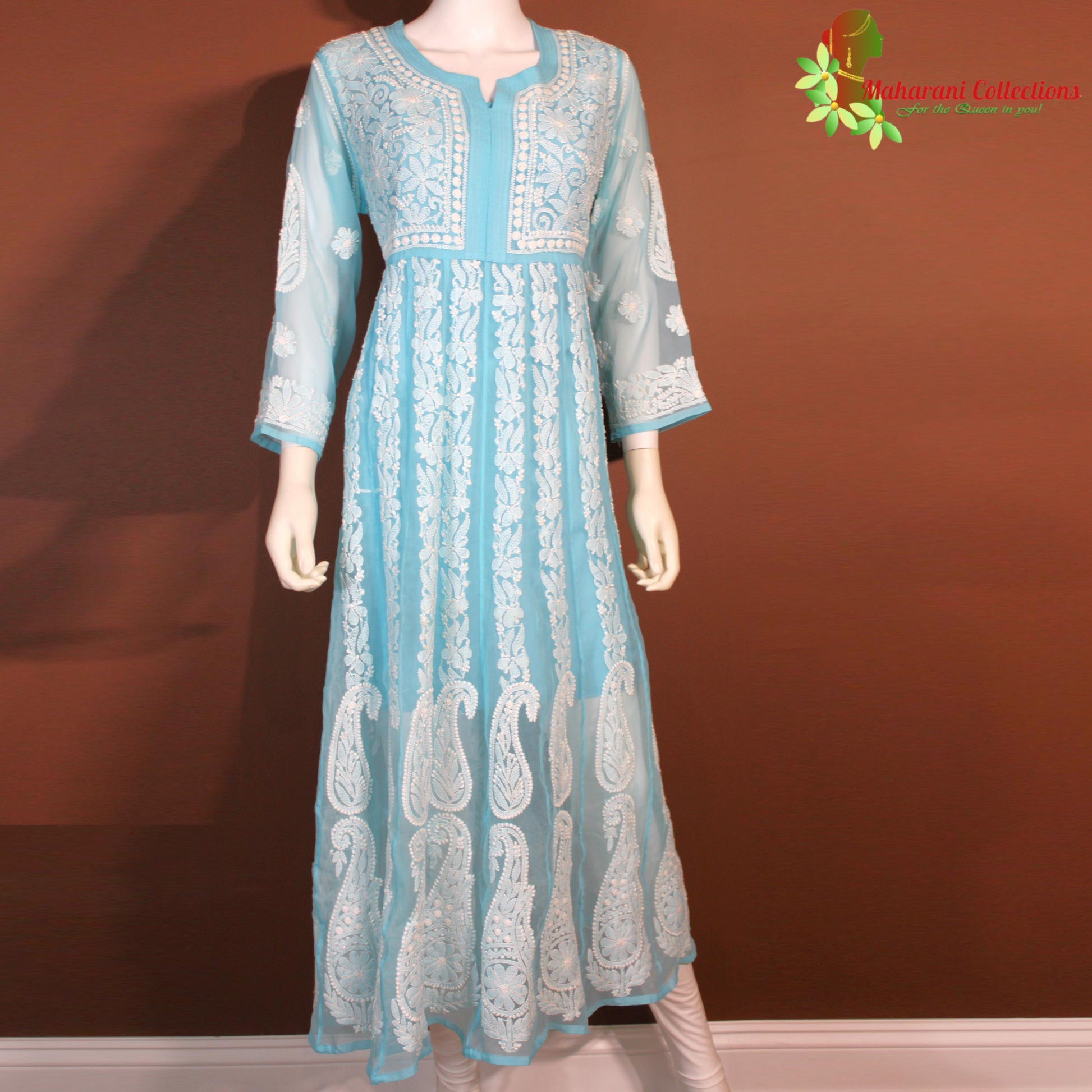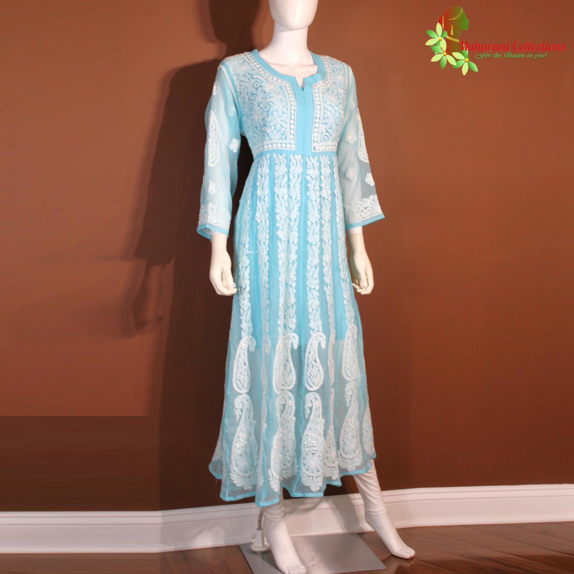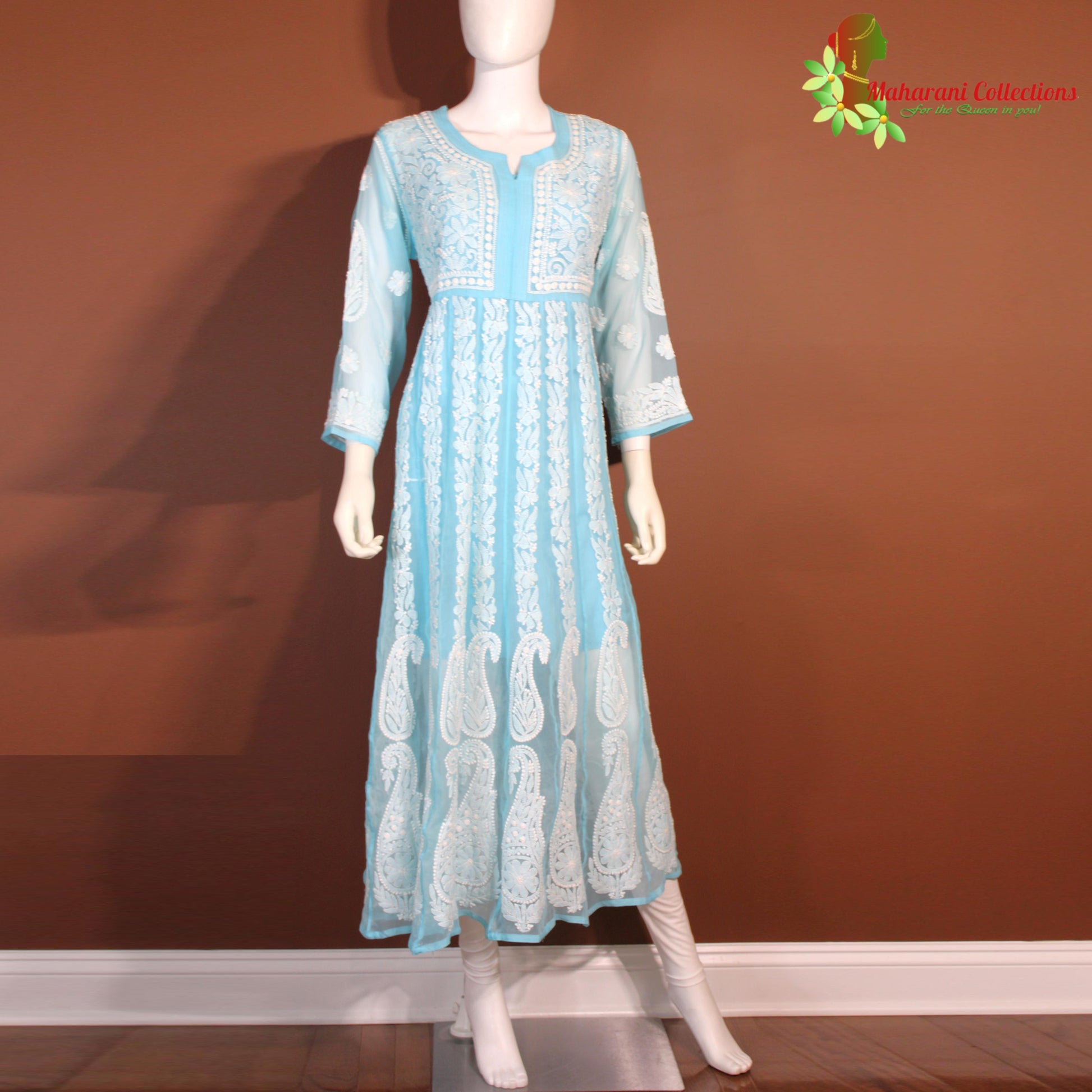 Maharani's Lucknowi Chikankari Anarkali Suit - Sky Blue (L) - Pure Georgette