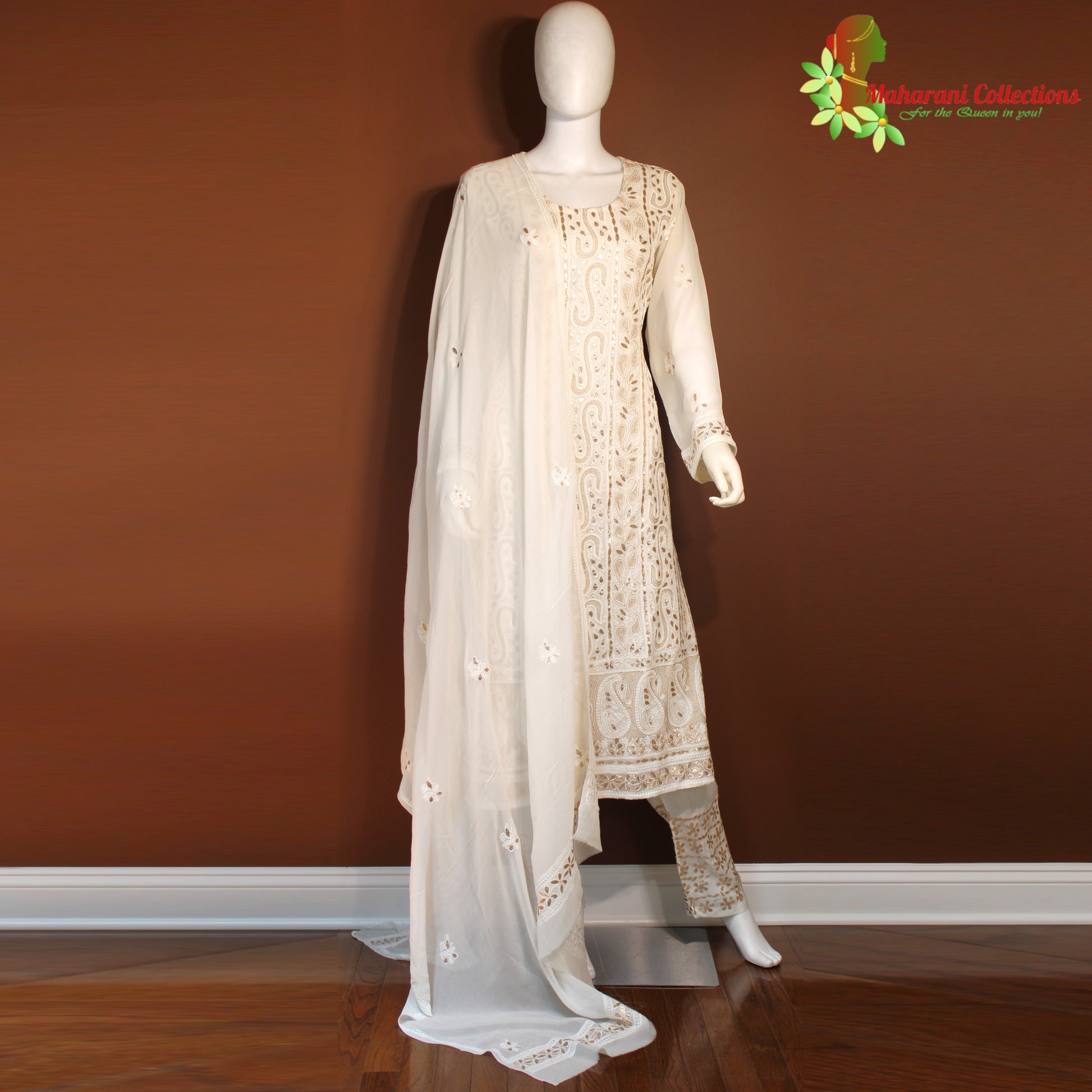 Maharani's Lucknowi Chikankari Palazzo Suit - White (L) - Pure Georgette