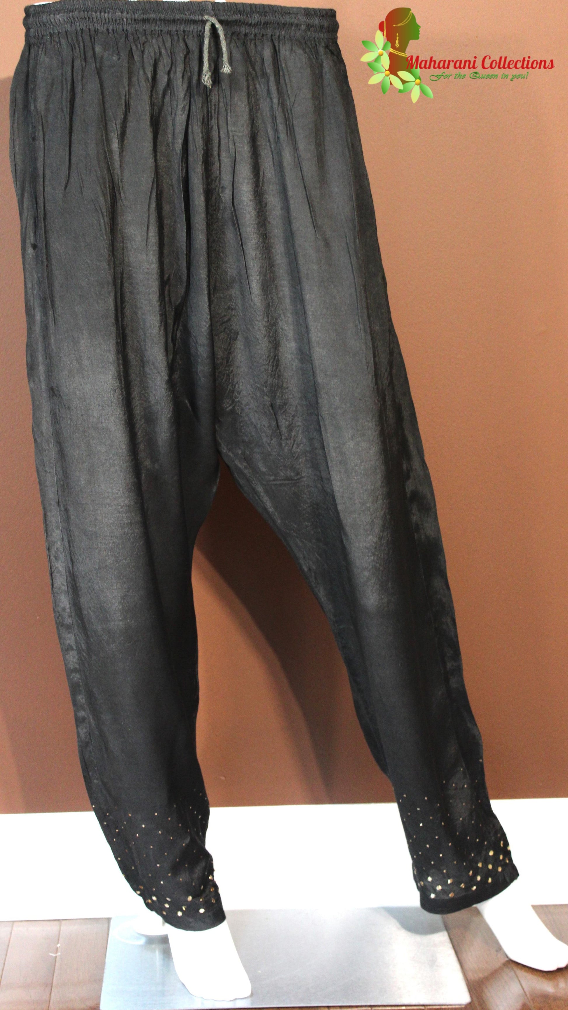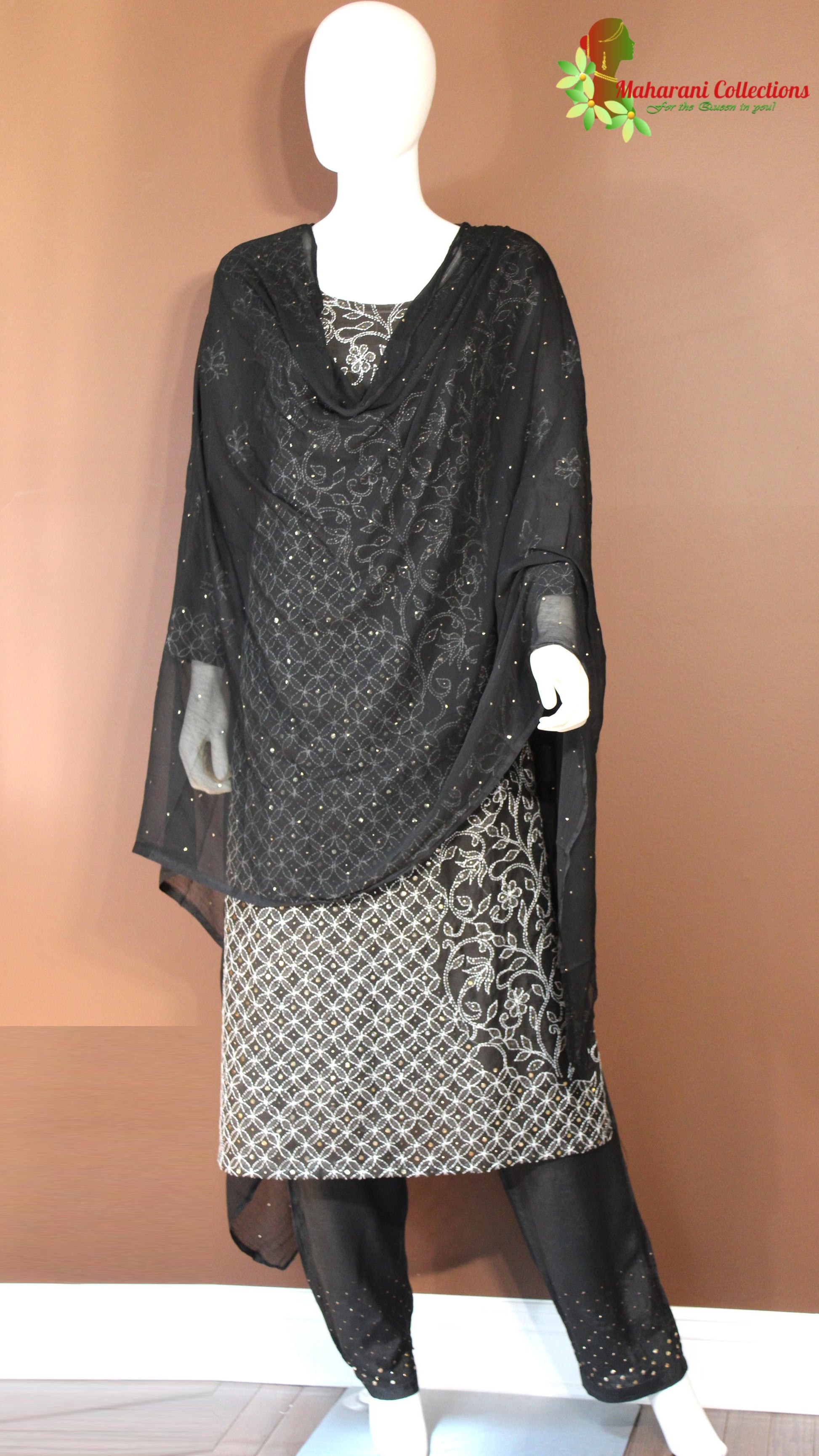 Maharani's finest Palazzo with Lucknowi Chikankari work, cotton lining, over all Mukesh and Threadwork, matching Pant and a matching black Mukesh work Georgette Dupatta.