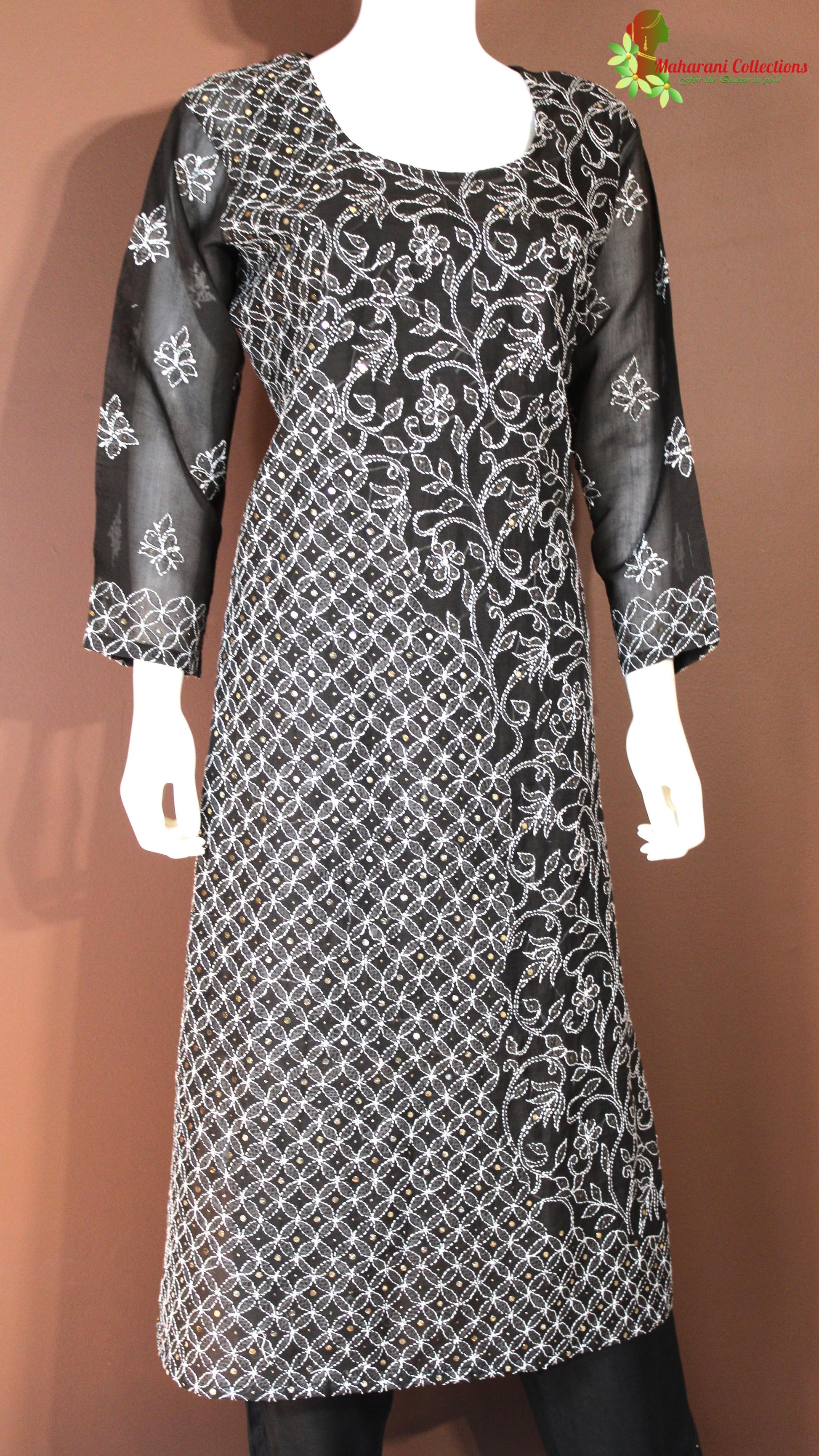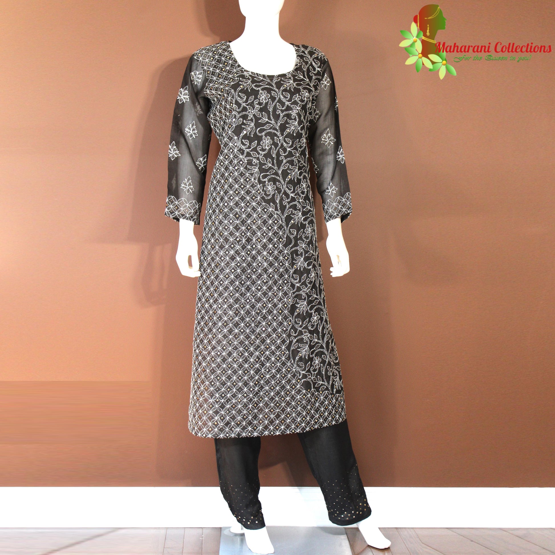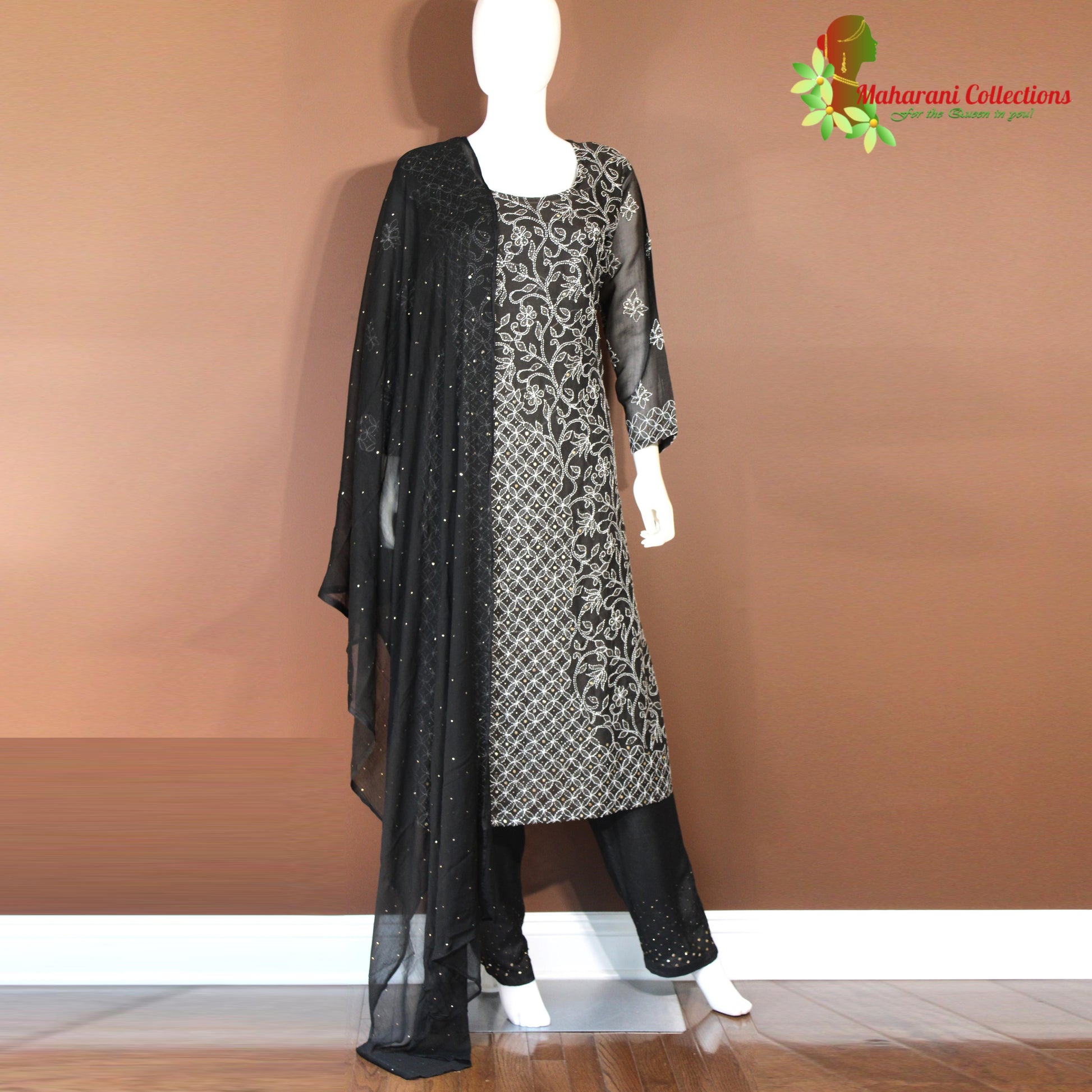 Maharani's Lucknowi Chikankari Palazzo Suit - Black (L) - Pure Georgette