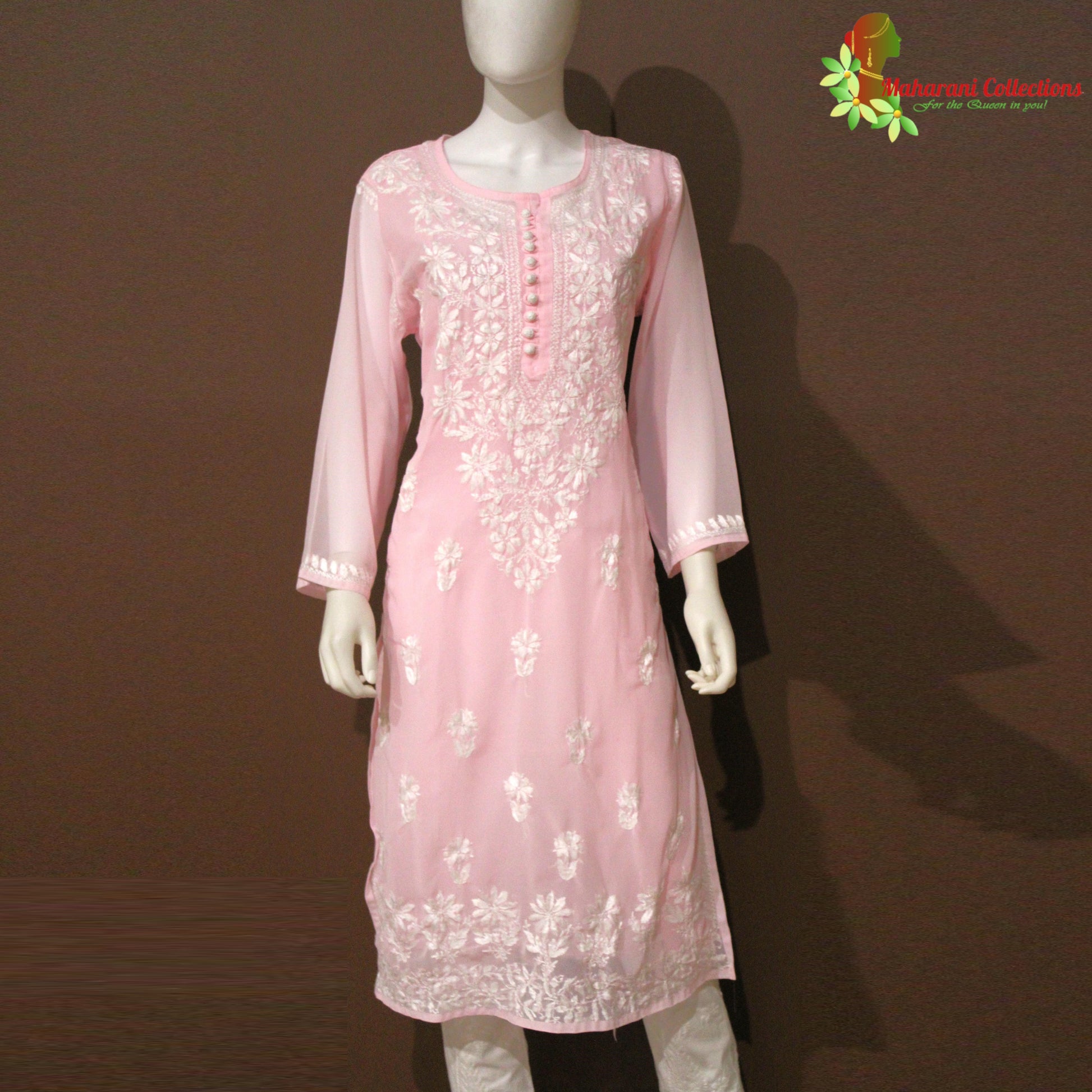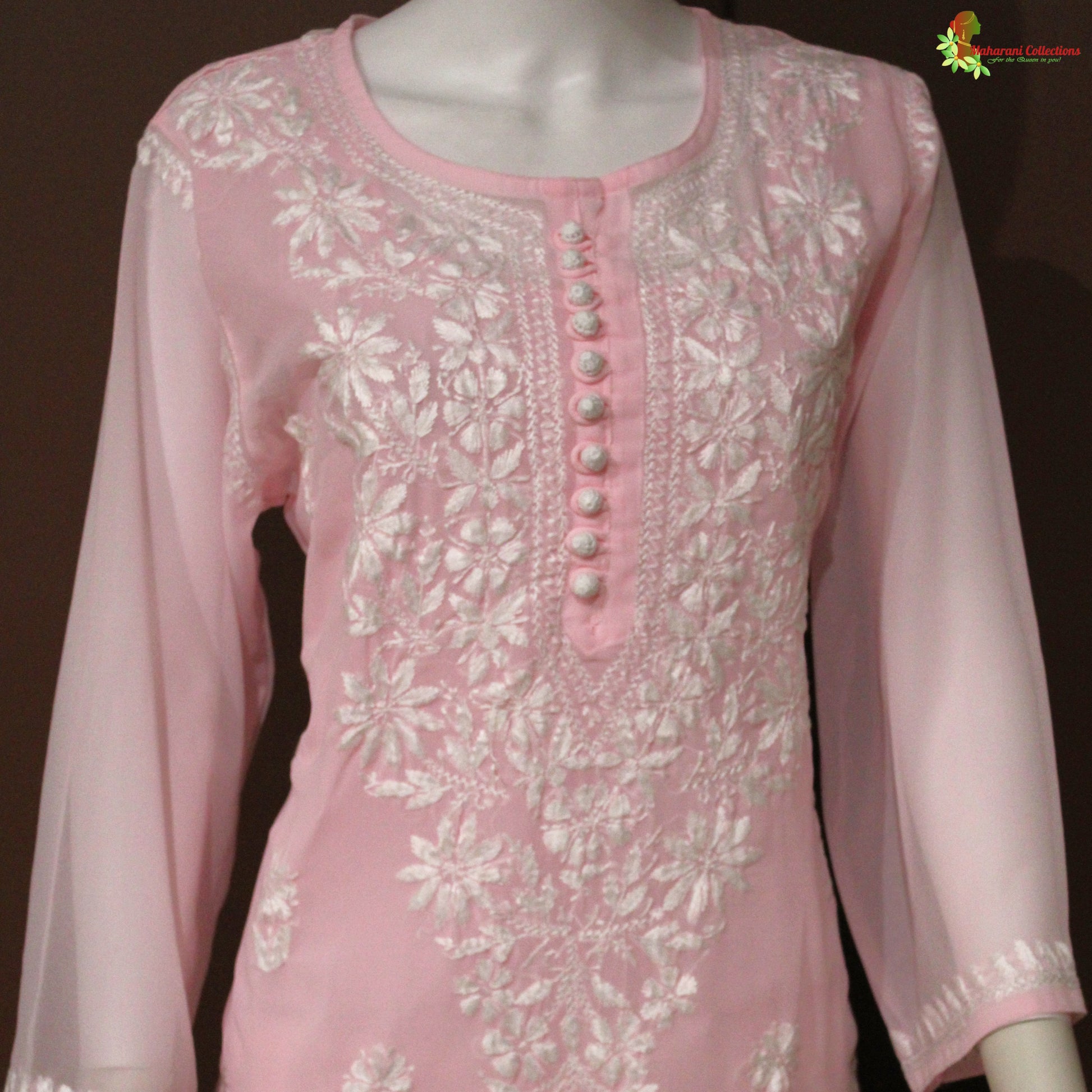Maharani's Lucknowi Chikankari Top - Light Pink (L) - Pure Georgette