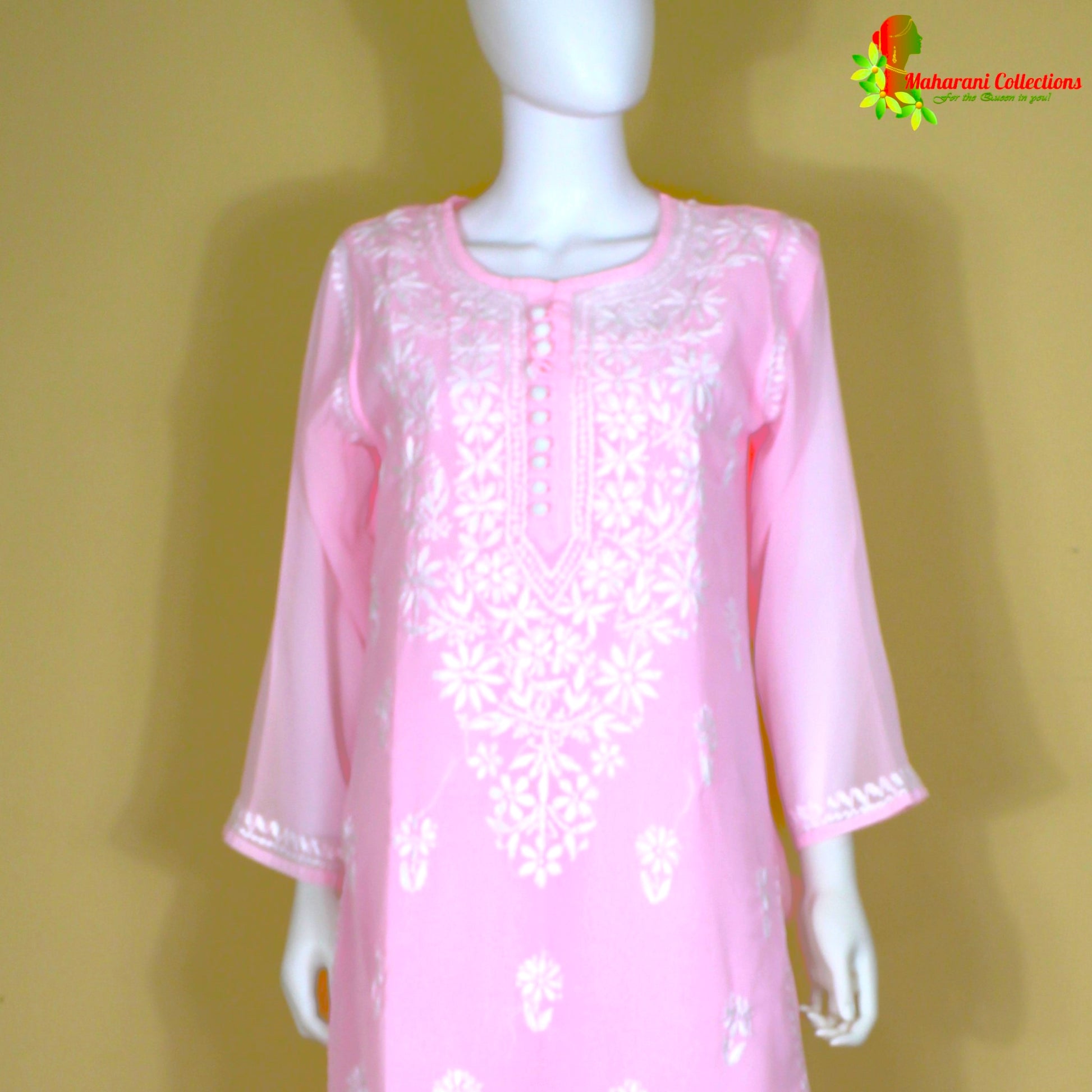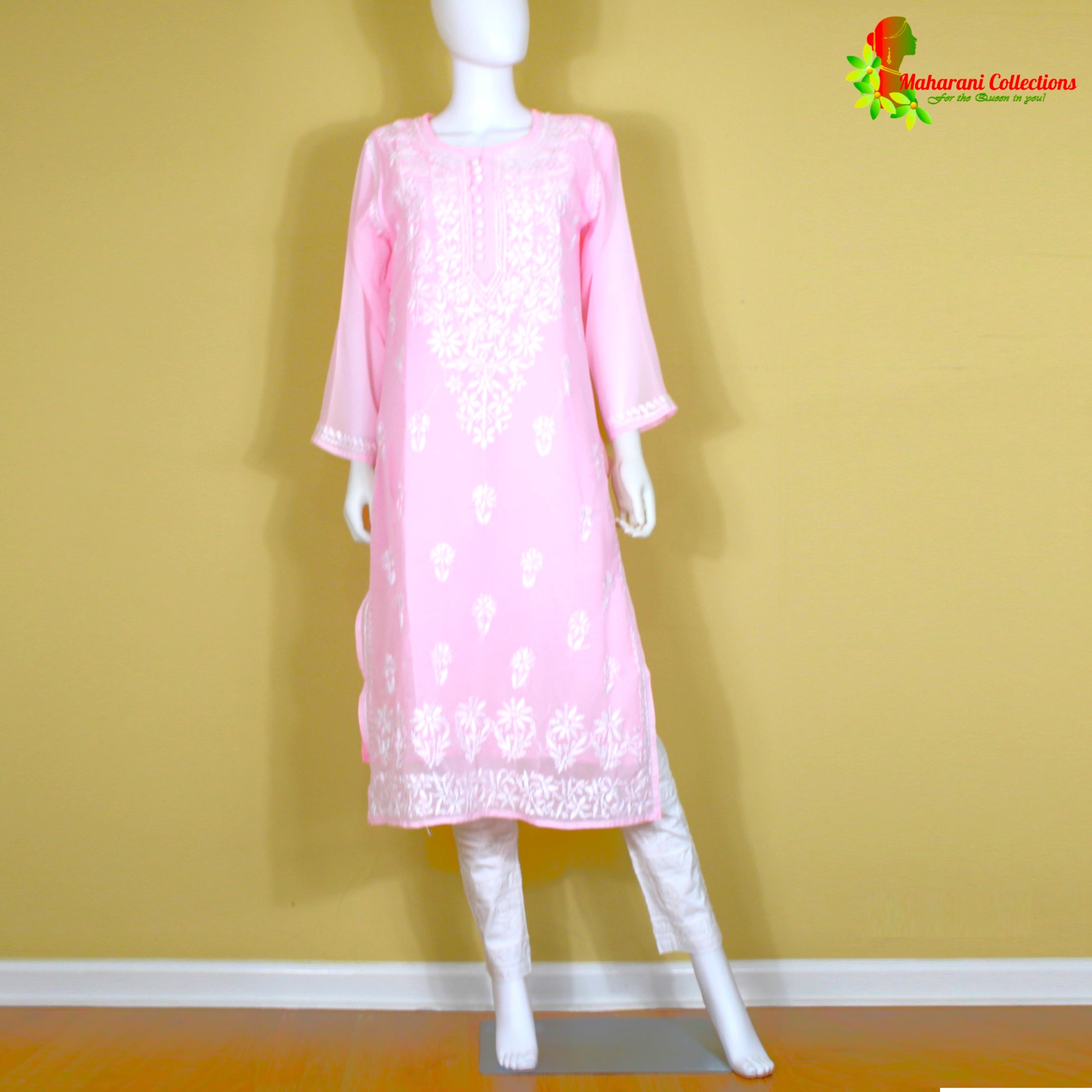 Maharani's Lucknowi Chikankari Pant Suit - Light Pink (L) - Pure Georgette