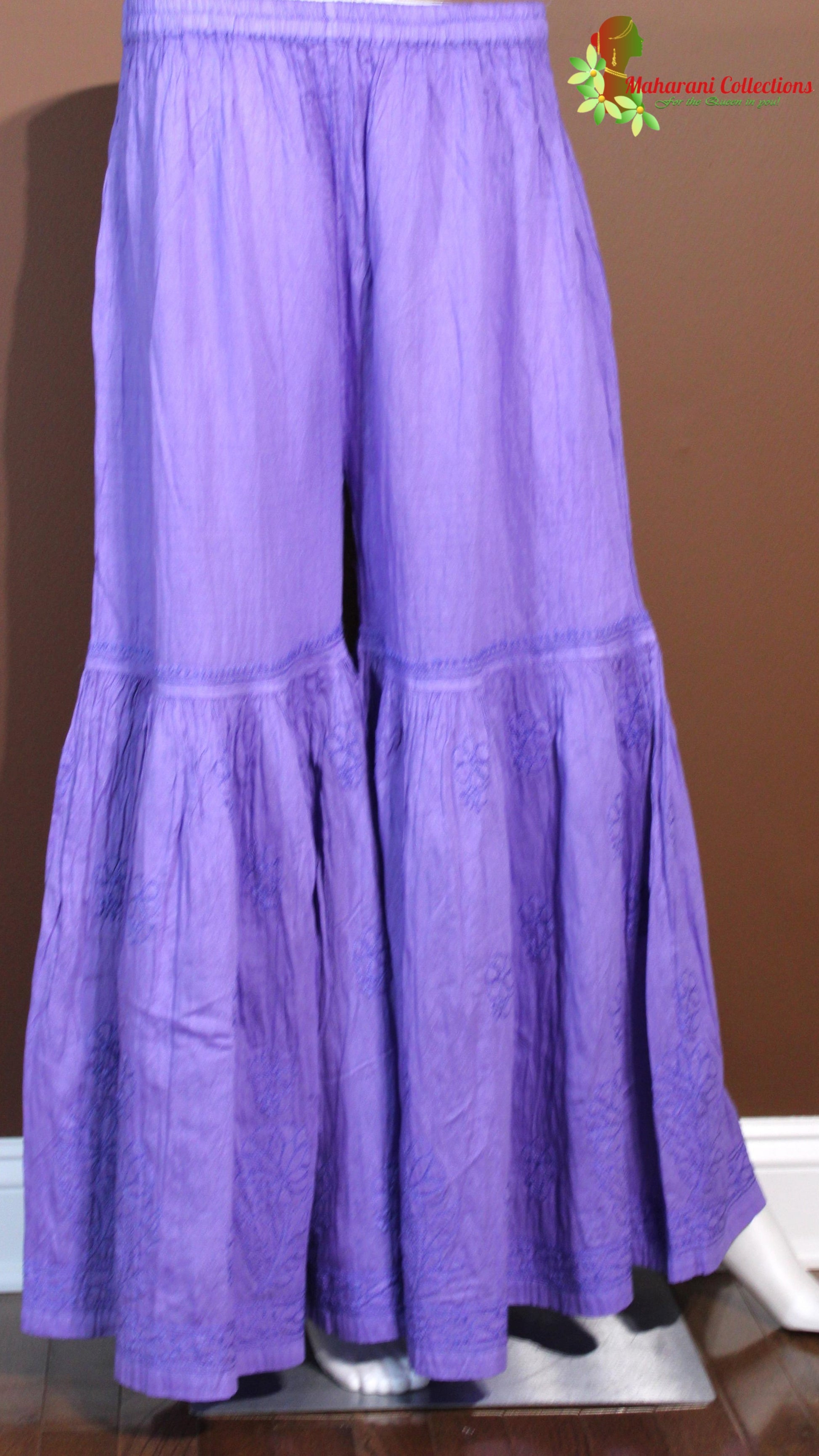 Maharani's Lucknowi Chikankari Sharara Suit - Purple (M) - Pure Cotton