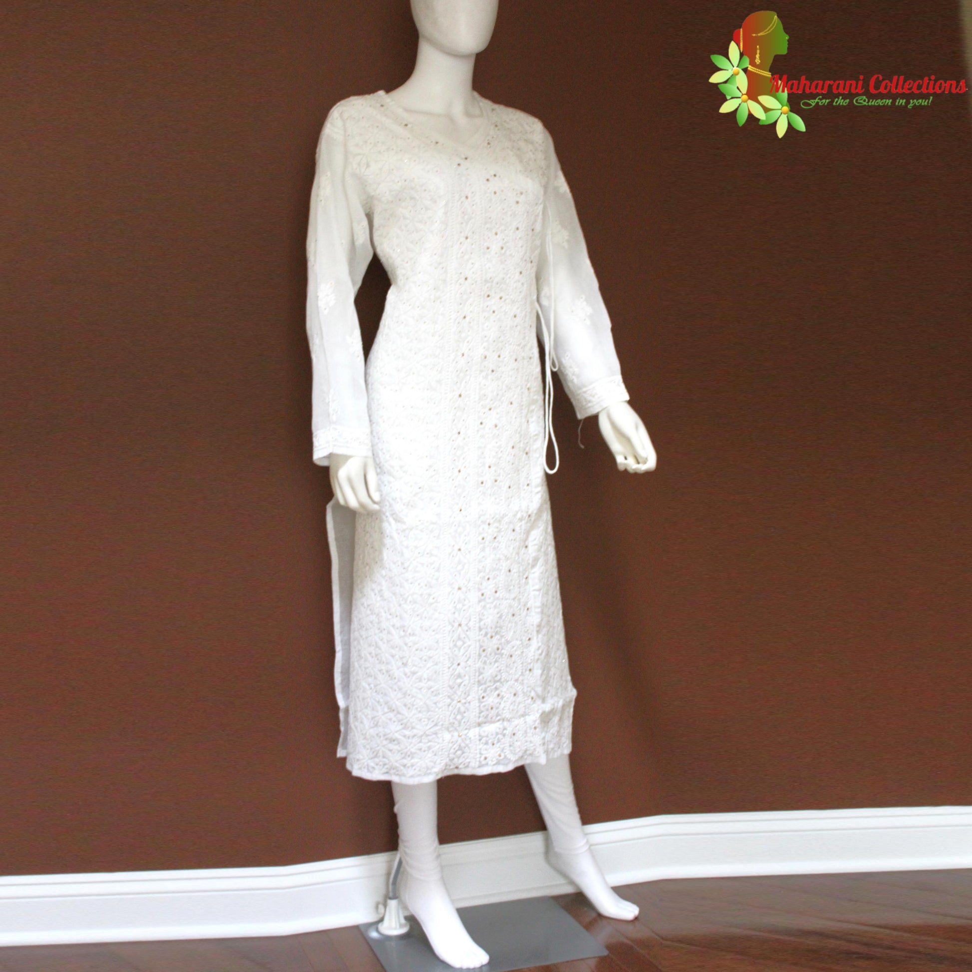 Maharani's Lucknowi Chikankari Work Kurta Top, Straight Fit, Includes matching cotton lining.