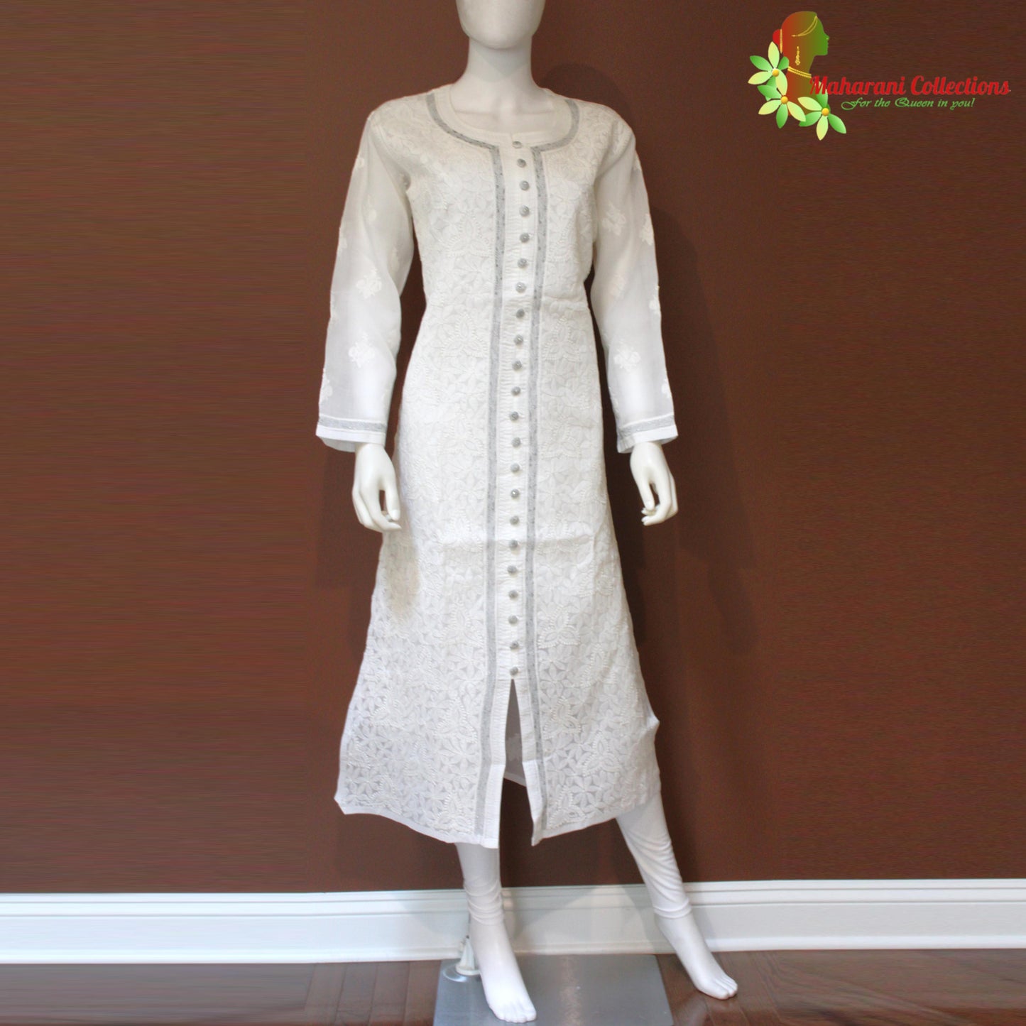 Maharani's Lucknowi Chikankari Work Kurta Top, Straight Fit, Includes matching cotton lining.