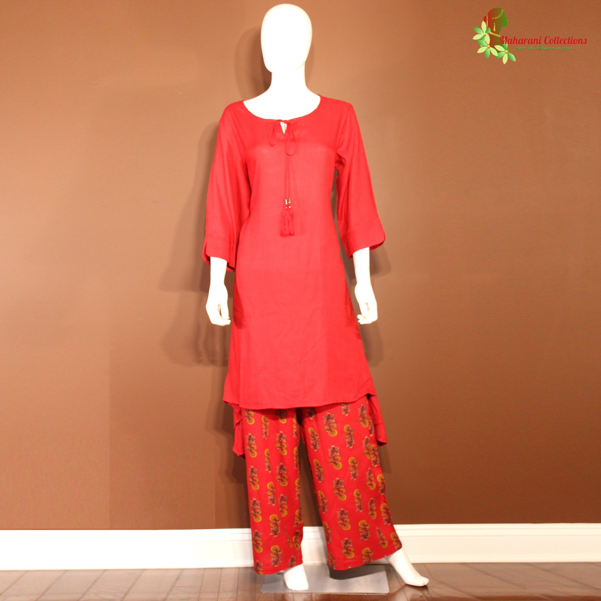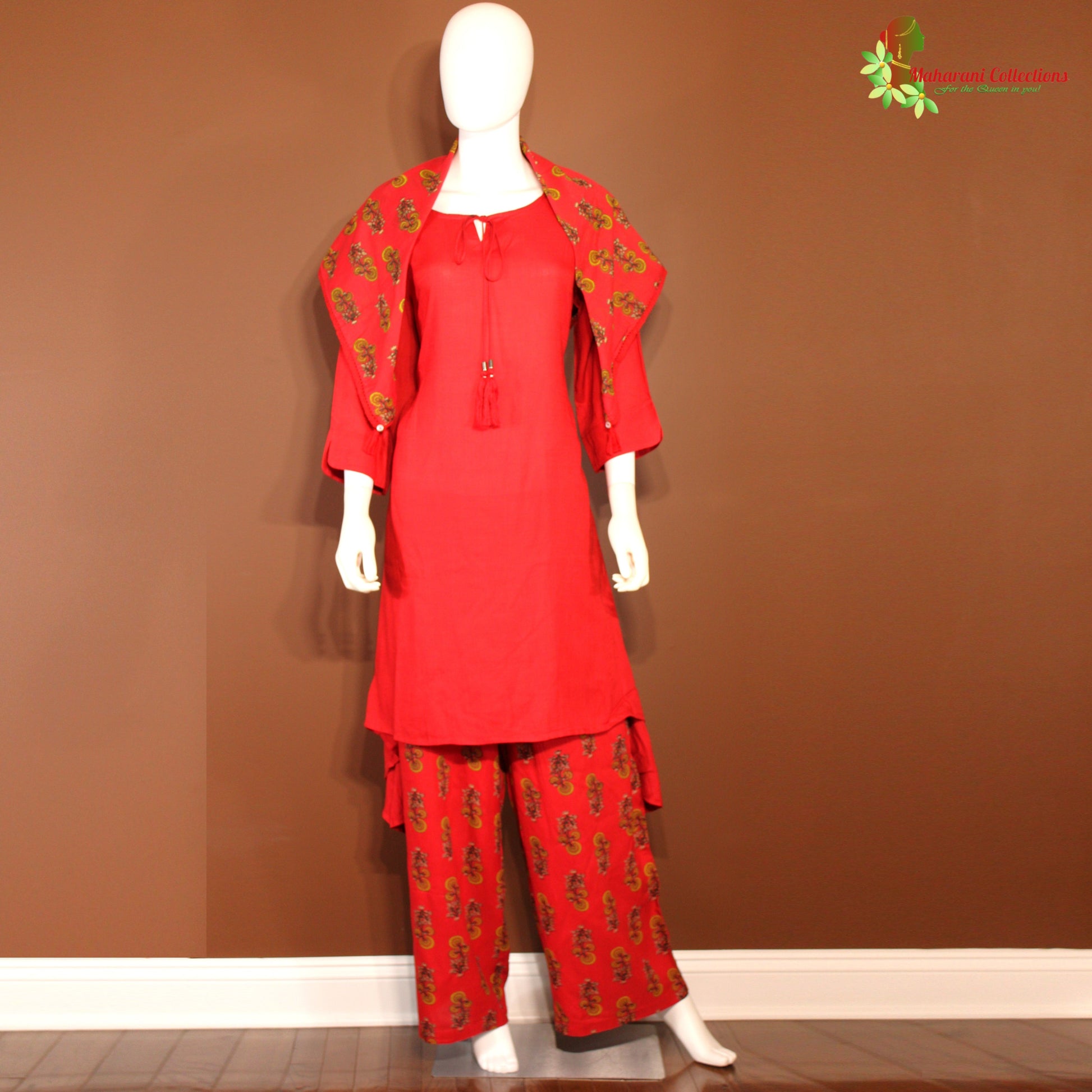 Maharani's Palazzo Suit Set - Soft Cotton - Red (L)