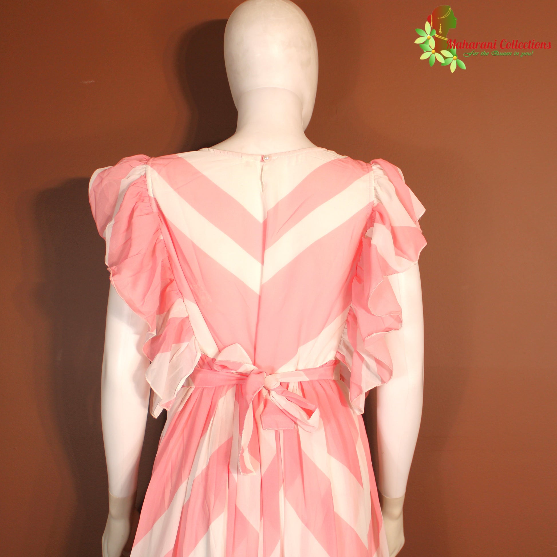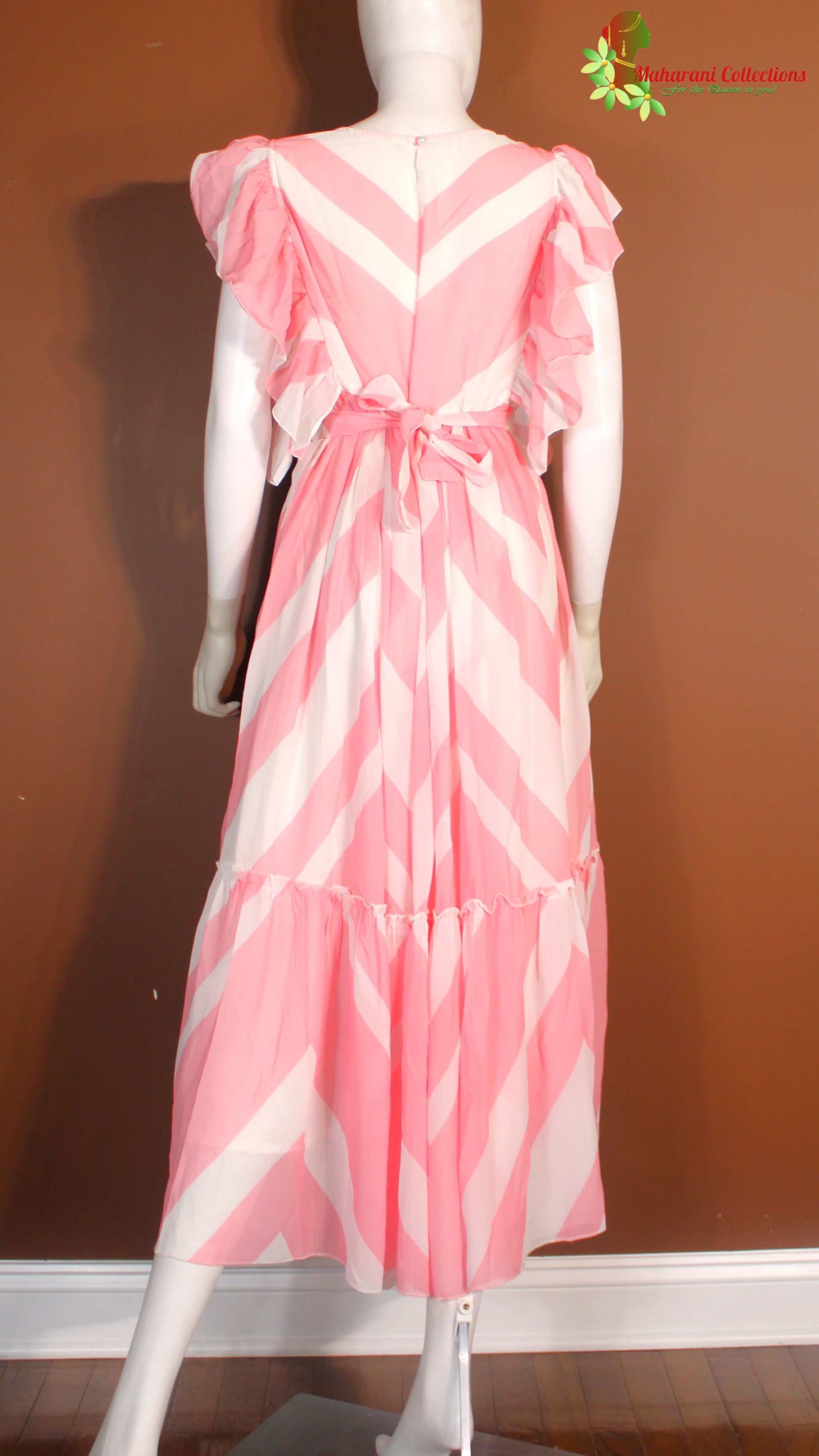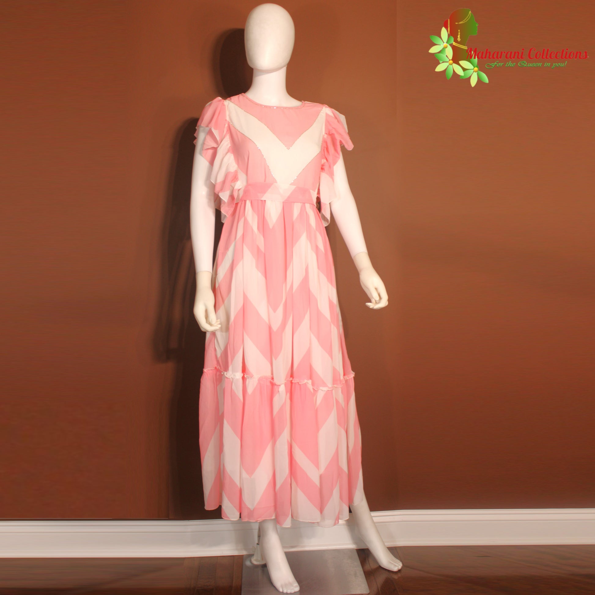 Maharani's Long Dress - Georgette - Pink and White (S, M, L, XL)