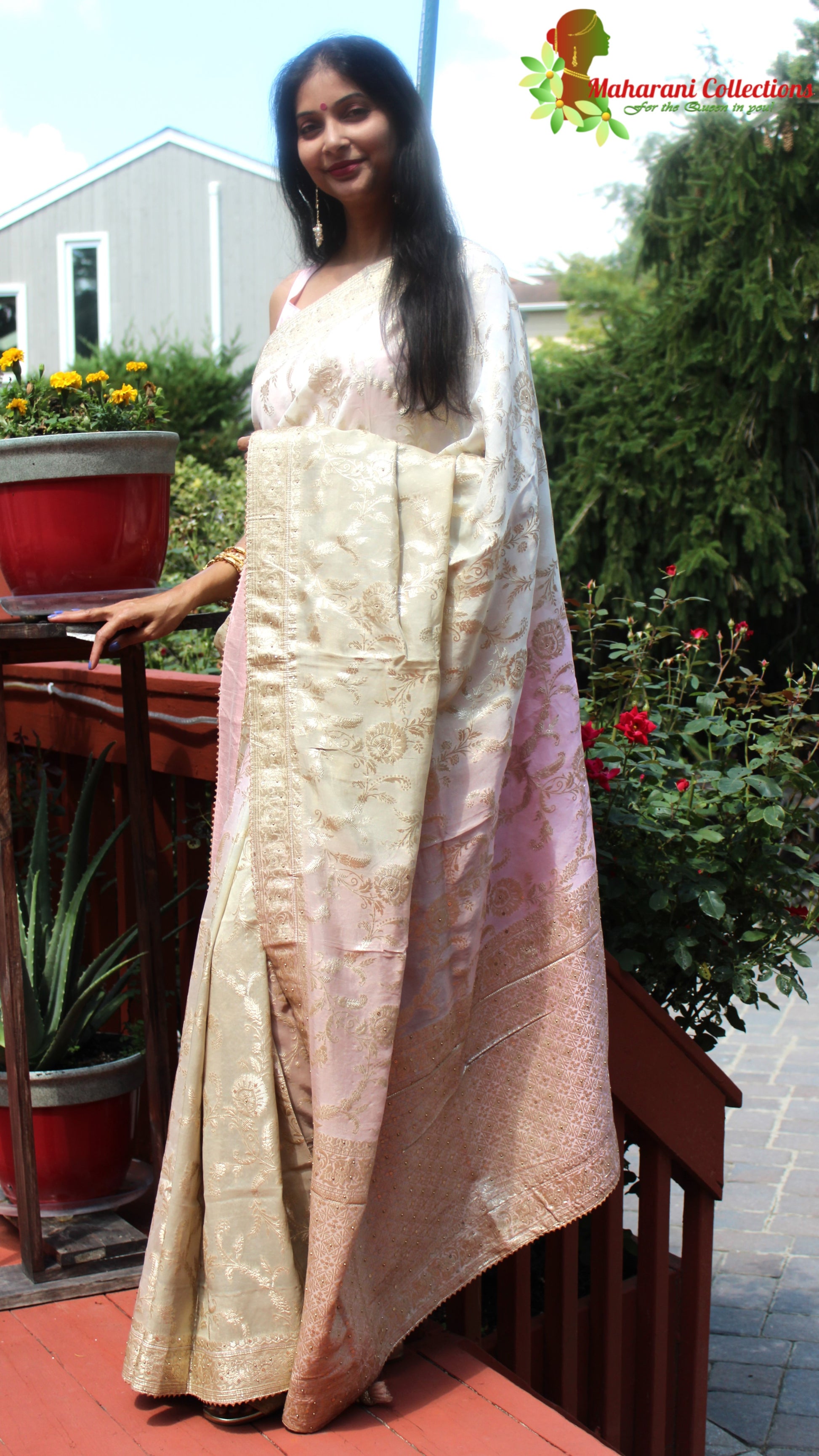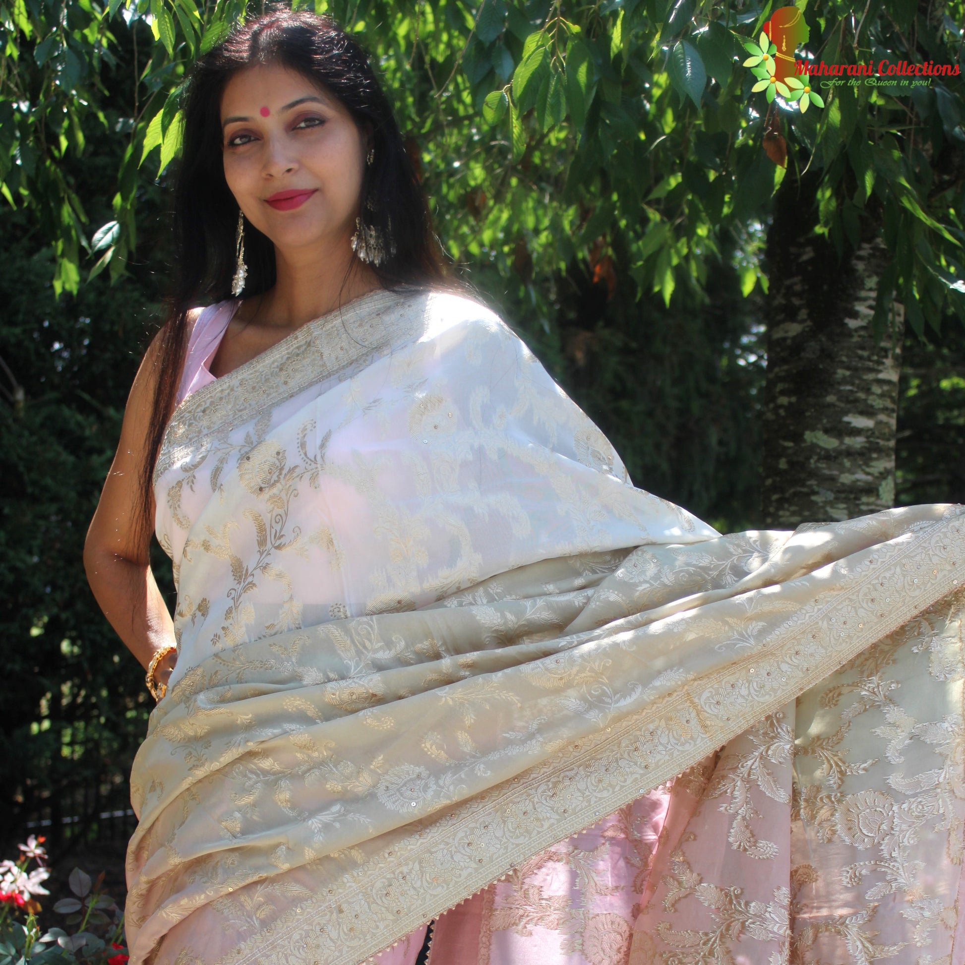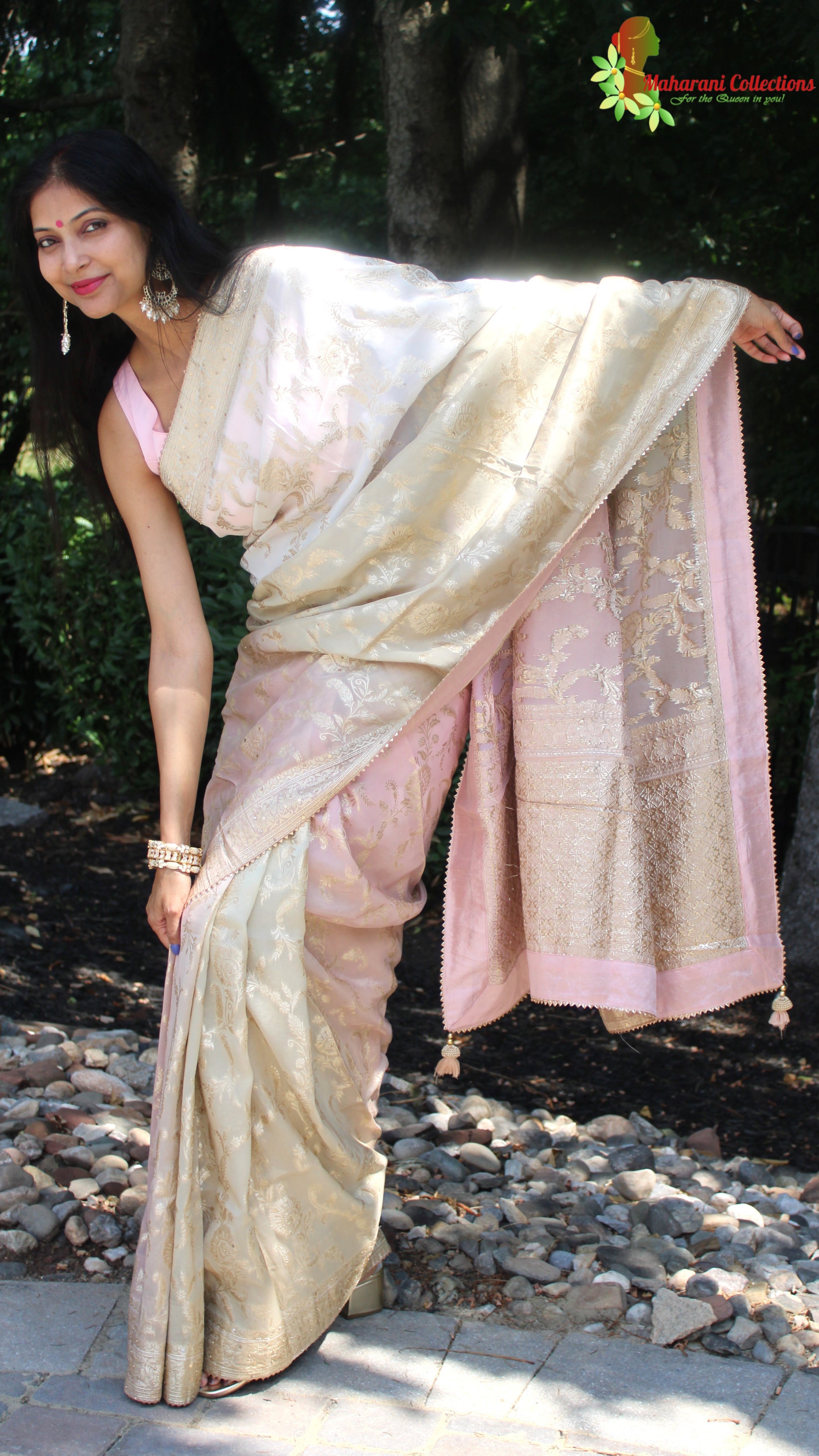 Maharani's Pure Banarasi Georgette Saree - Shades of Sand and Pink (with stitched Blouse and Petticoat)