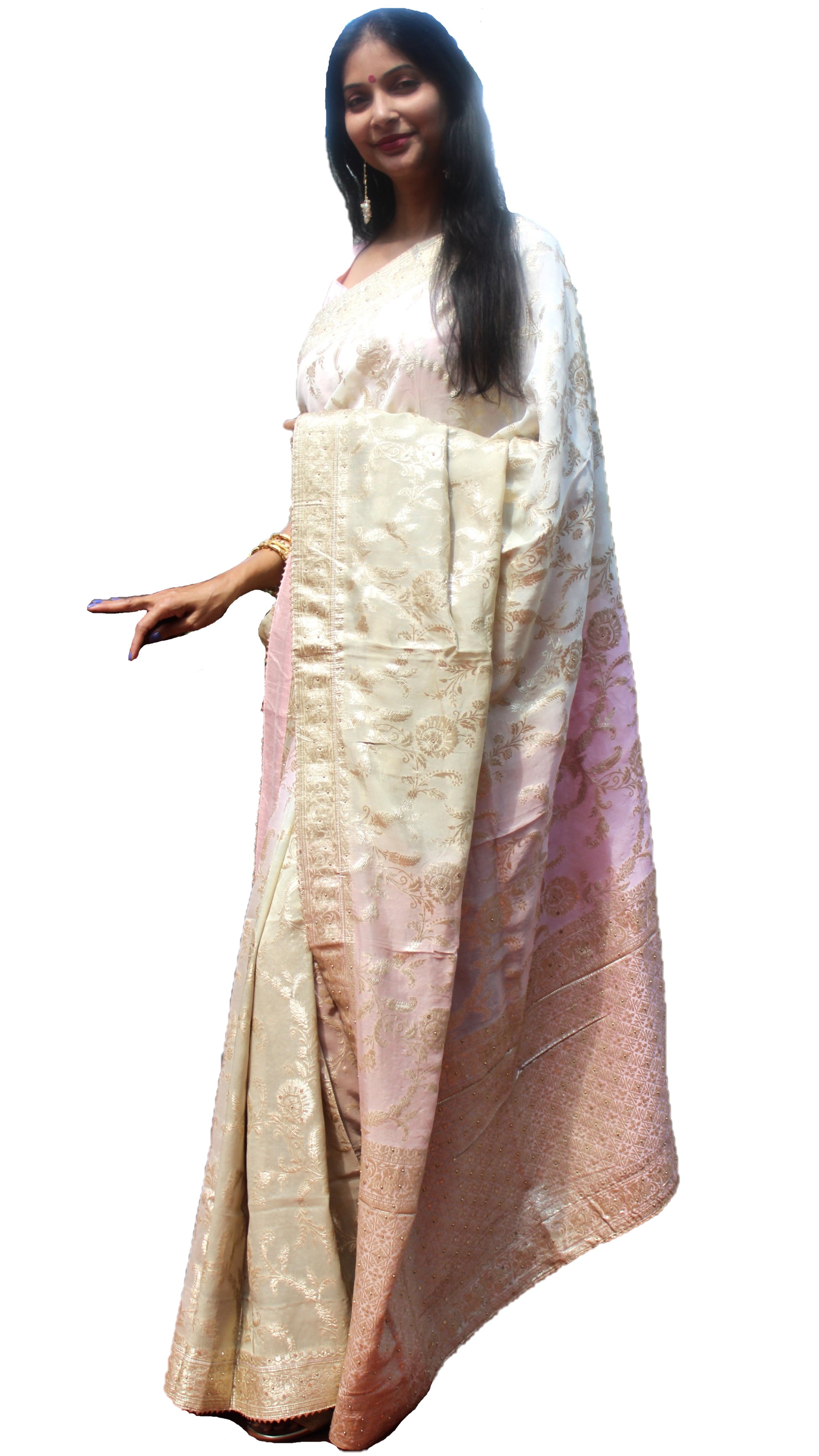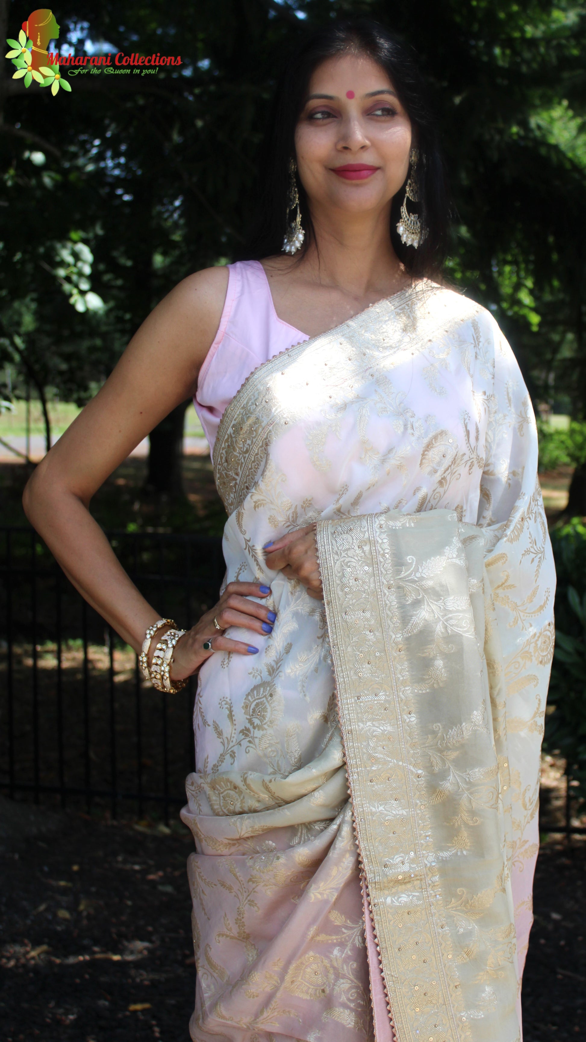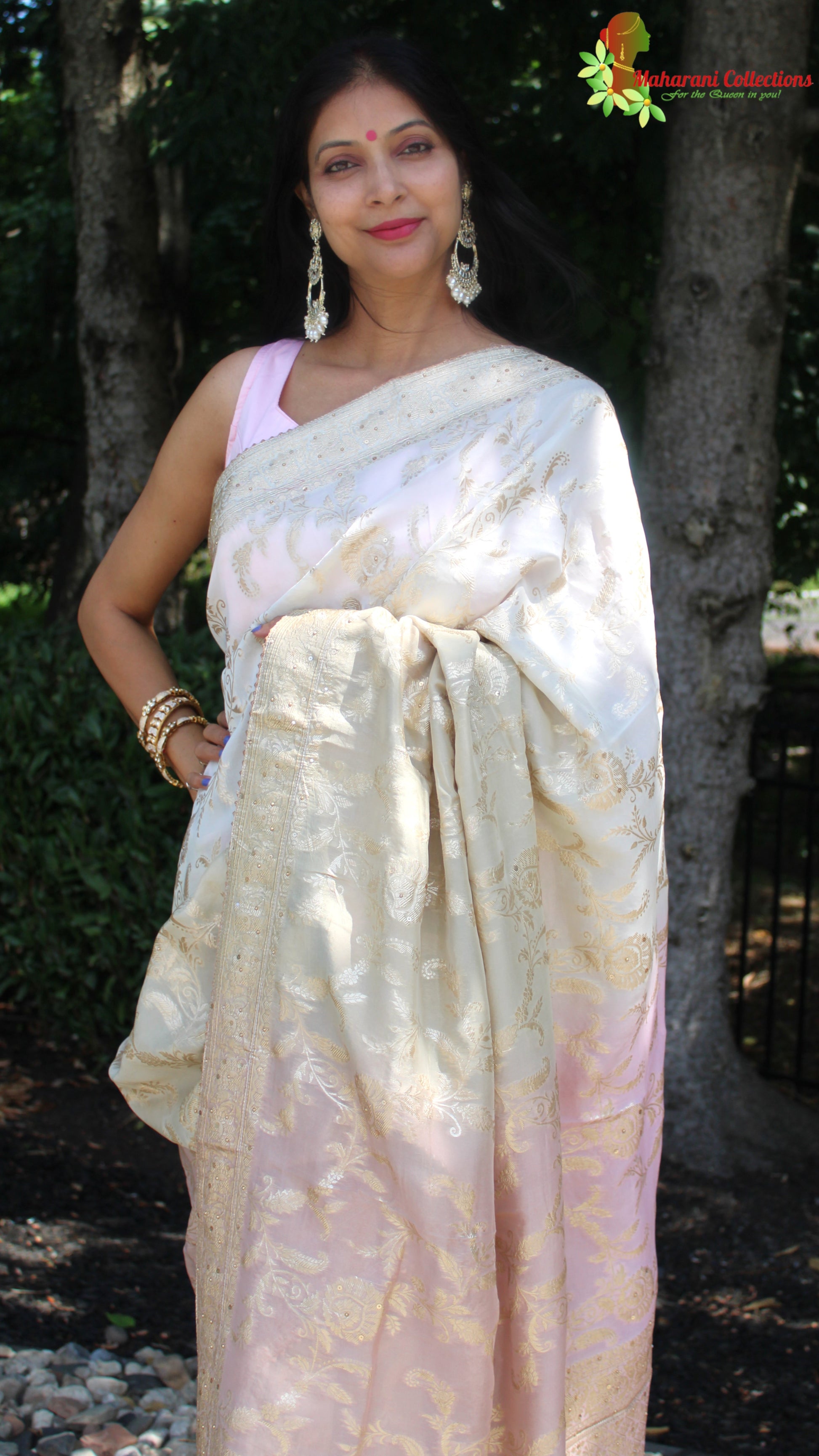 Maharani's Pure Banarasi Georgette Saree - Shades of Sand and Pink (with stitched Blouse and Petticoat)