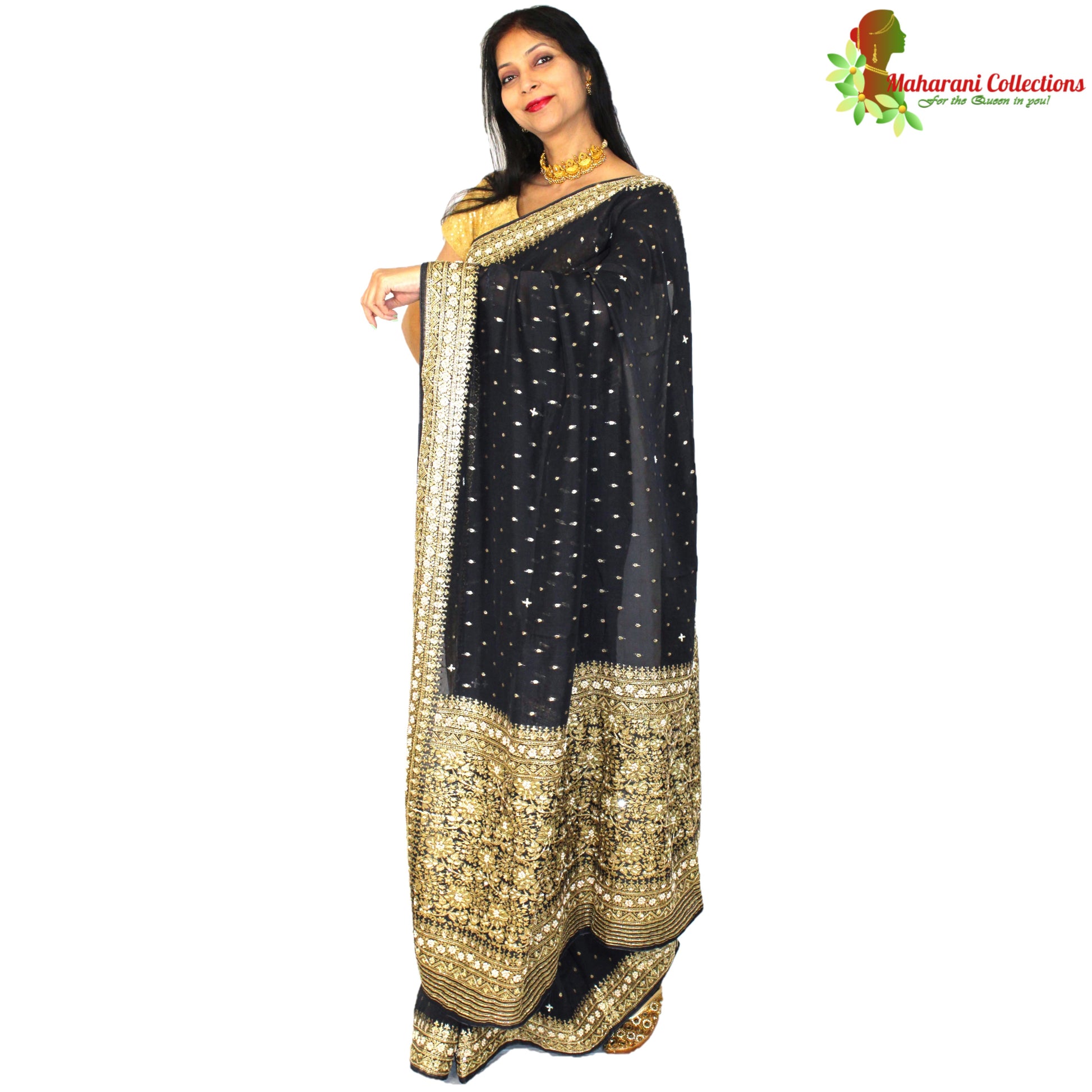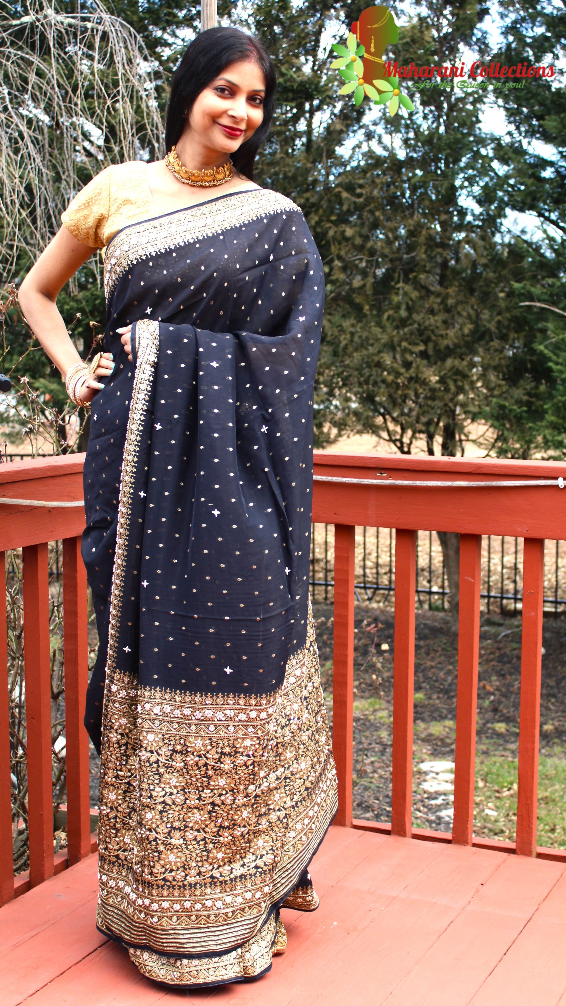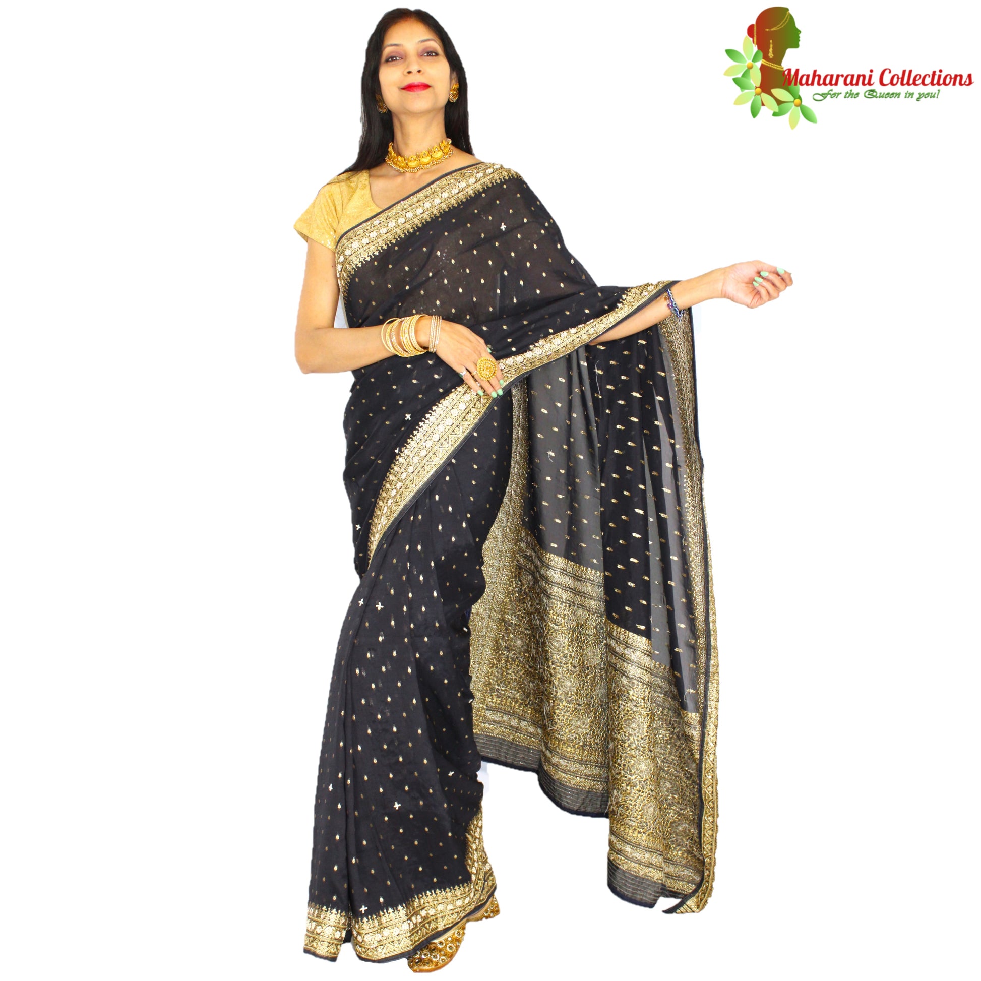 Maharani's Pure Banarasi Georgette Saree - Black (with Stitched Petticoat)