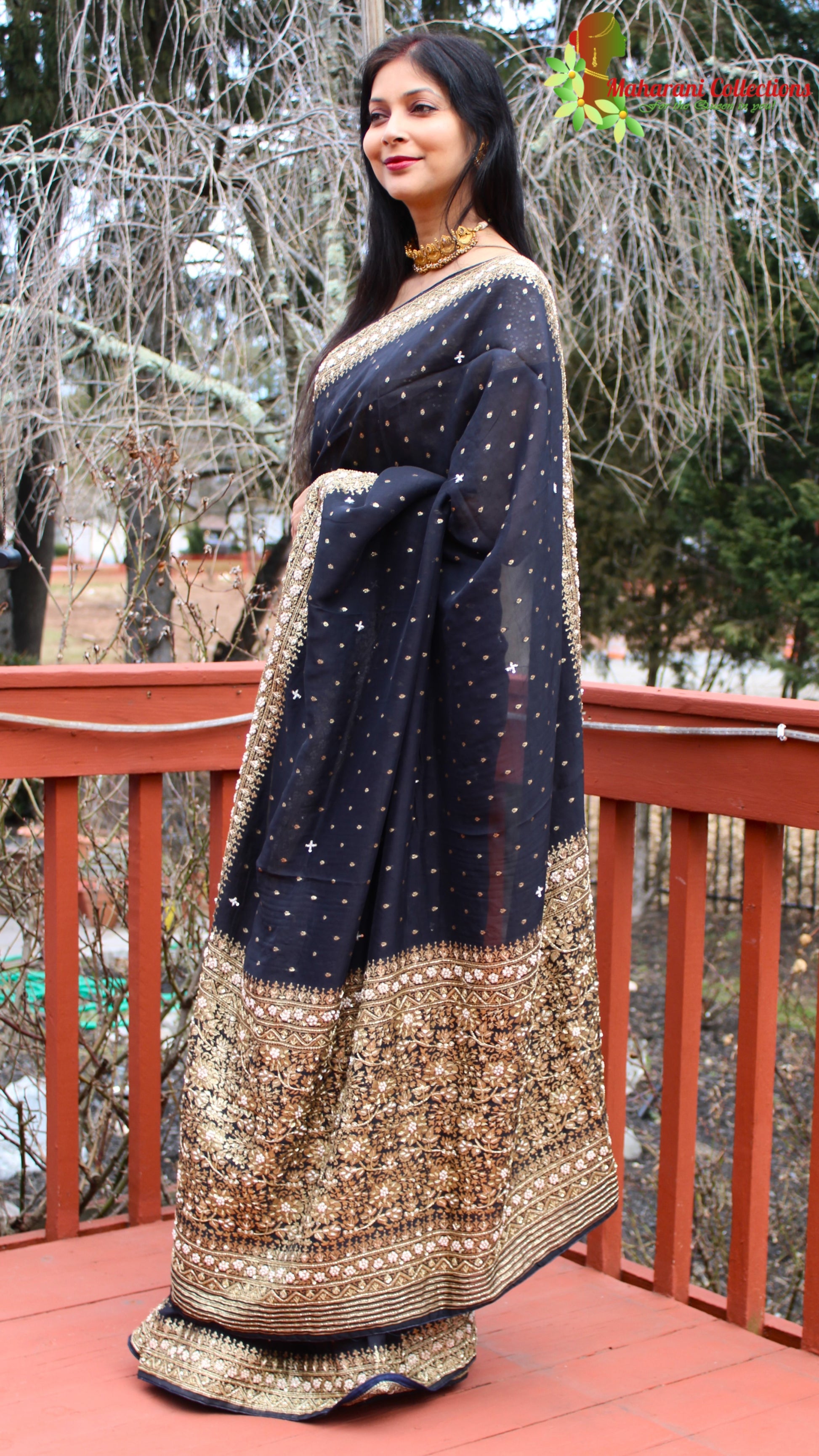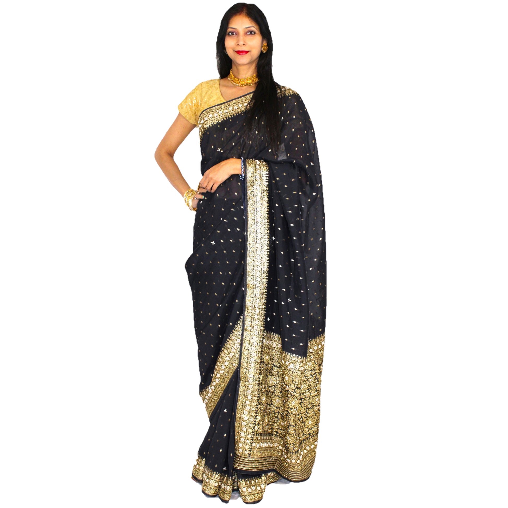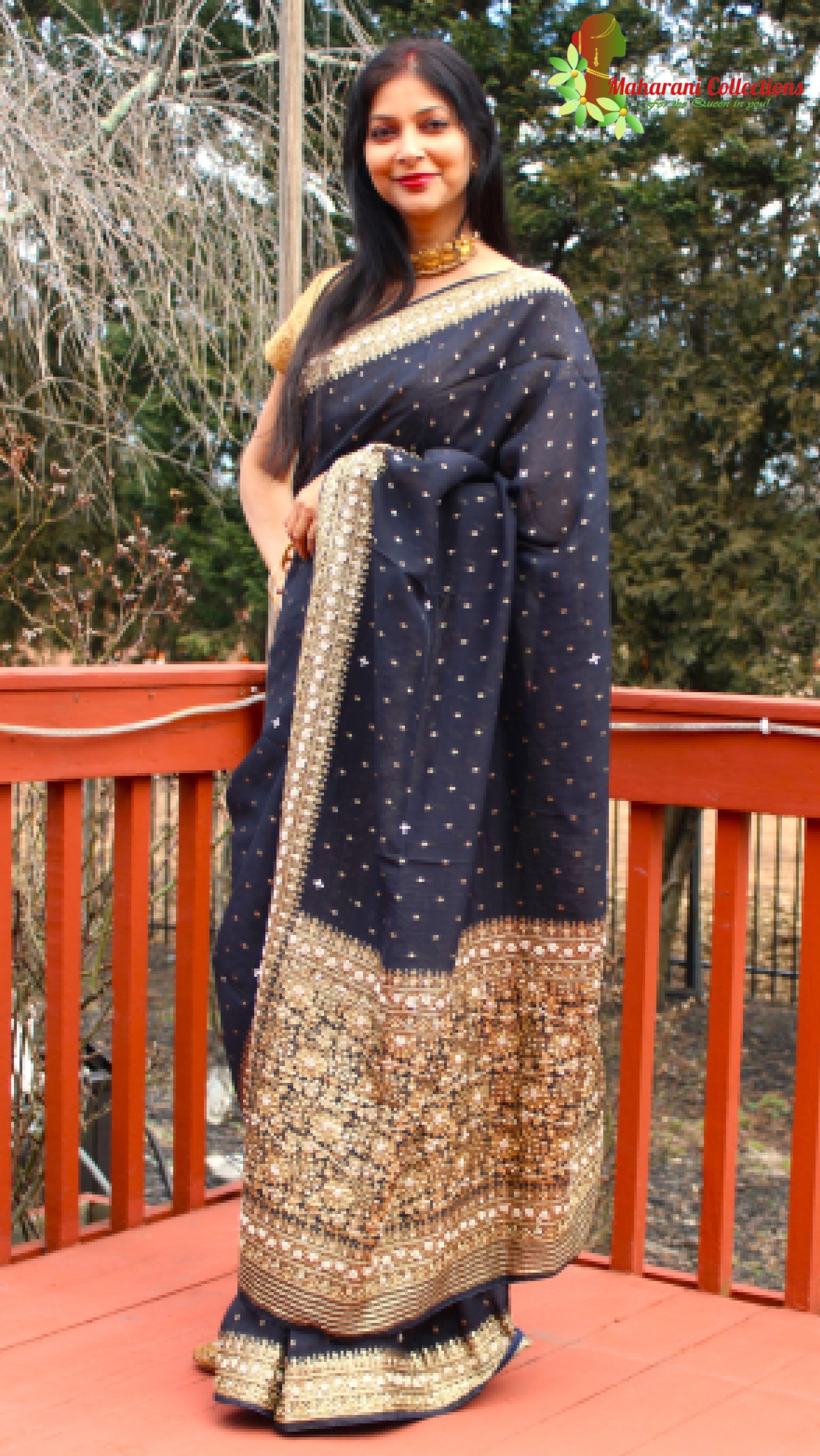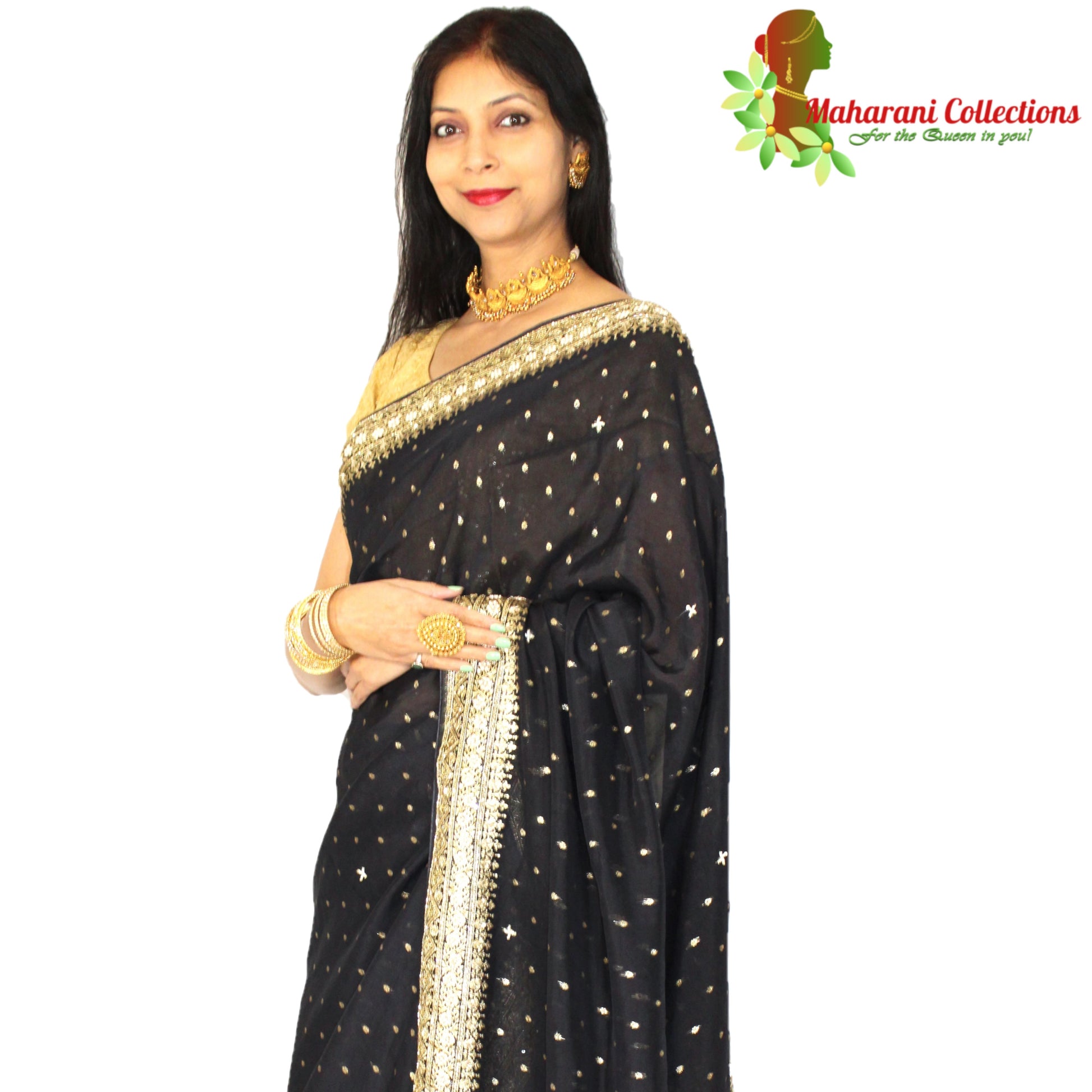 Maharani's Pure Banarasi Georgette Saree - Black (with Stitched Petticoat)