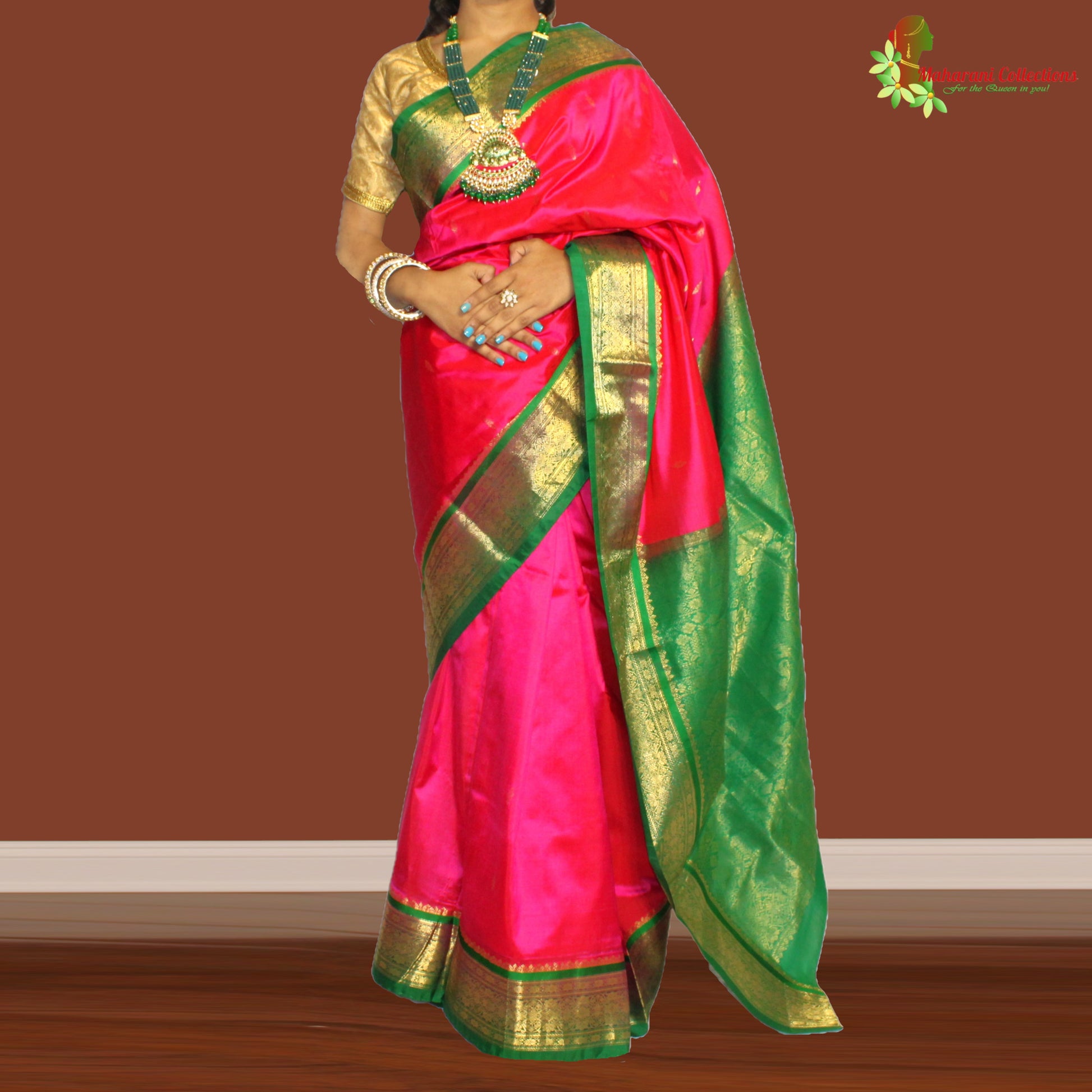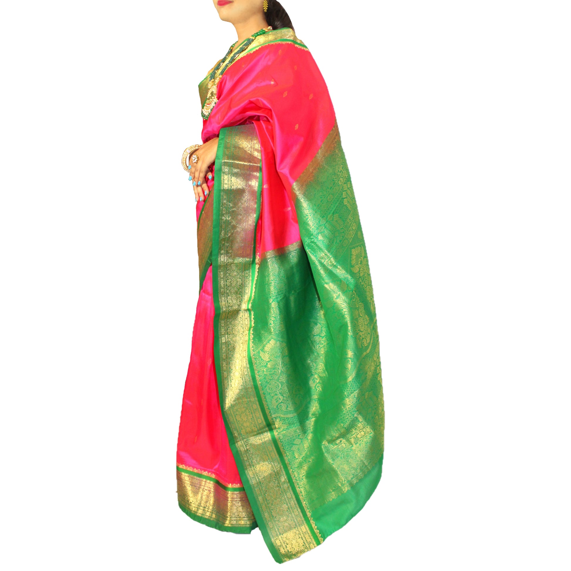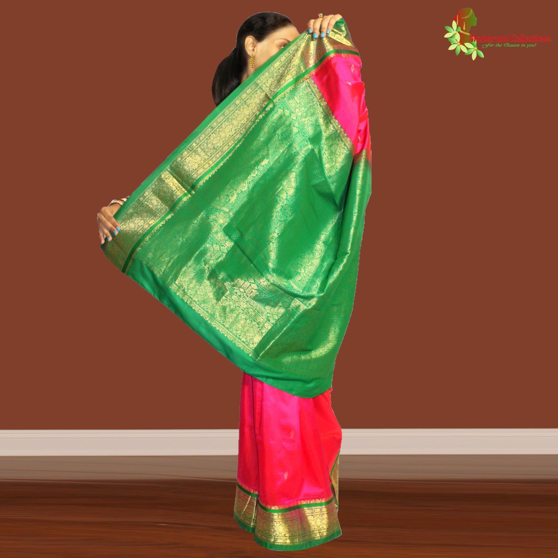 Maharani's Pure Banarasi Silk Saree - Deep Pink (with stitched Petticoat)