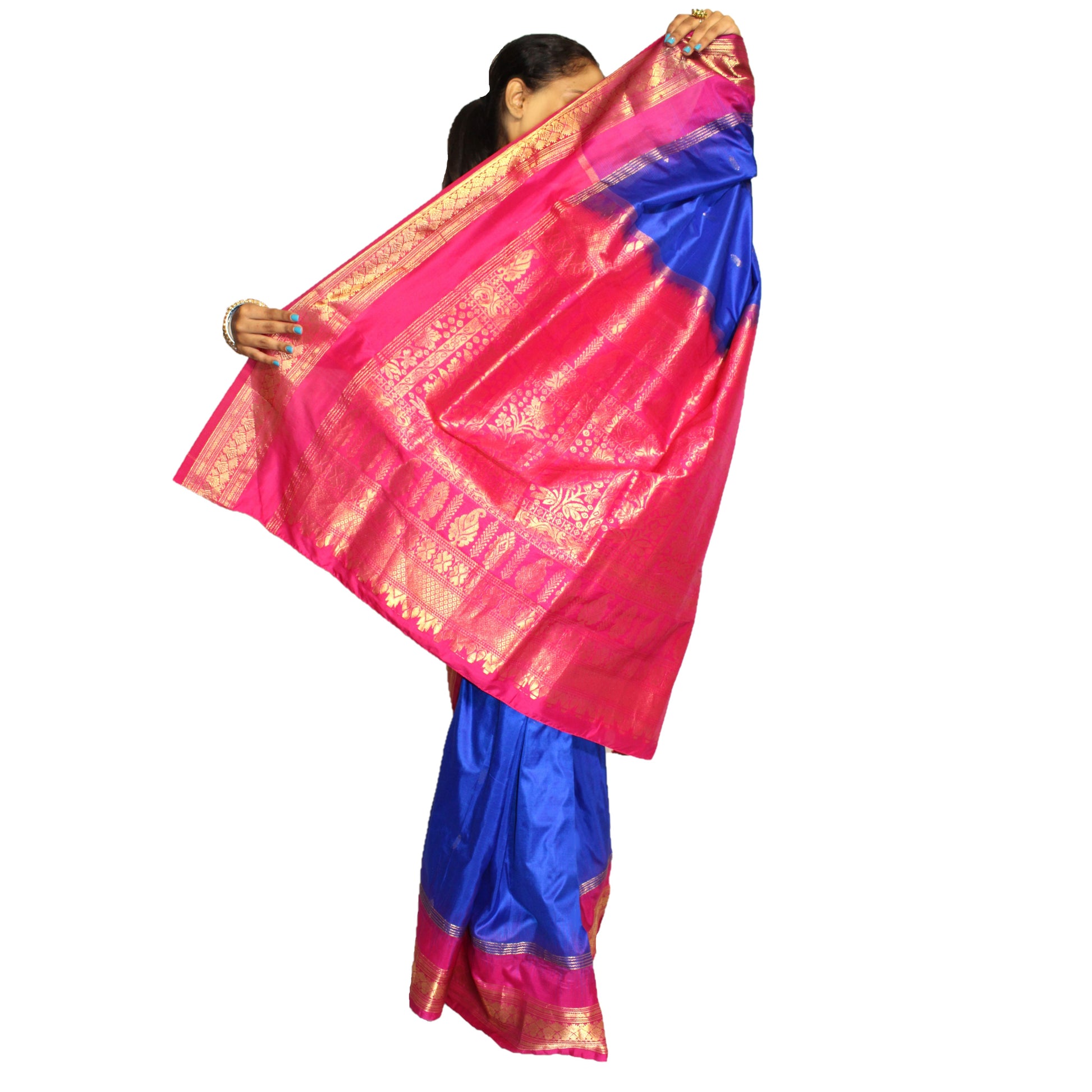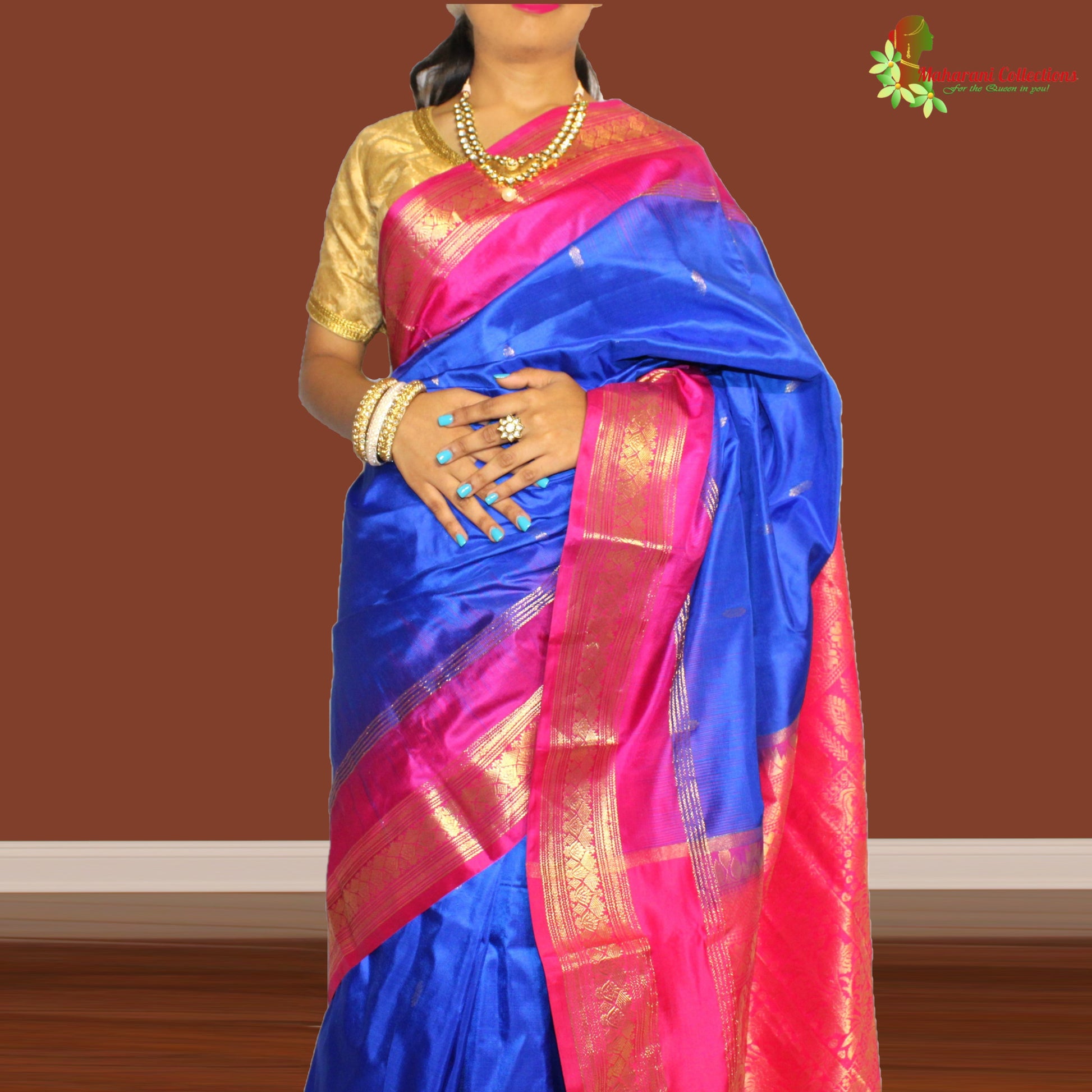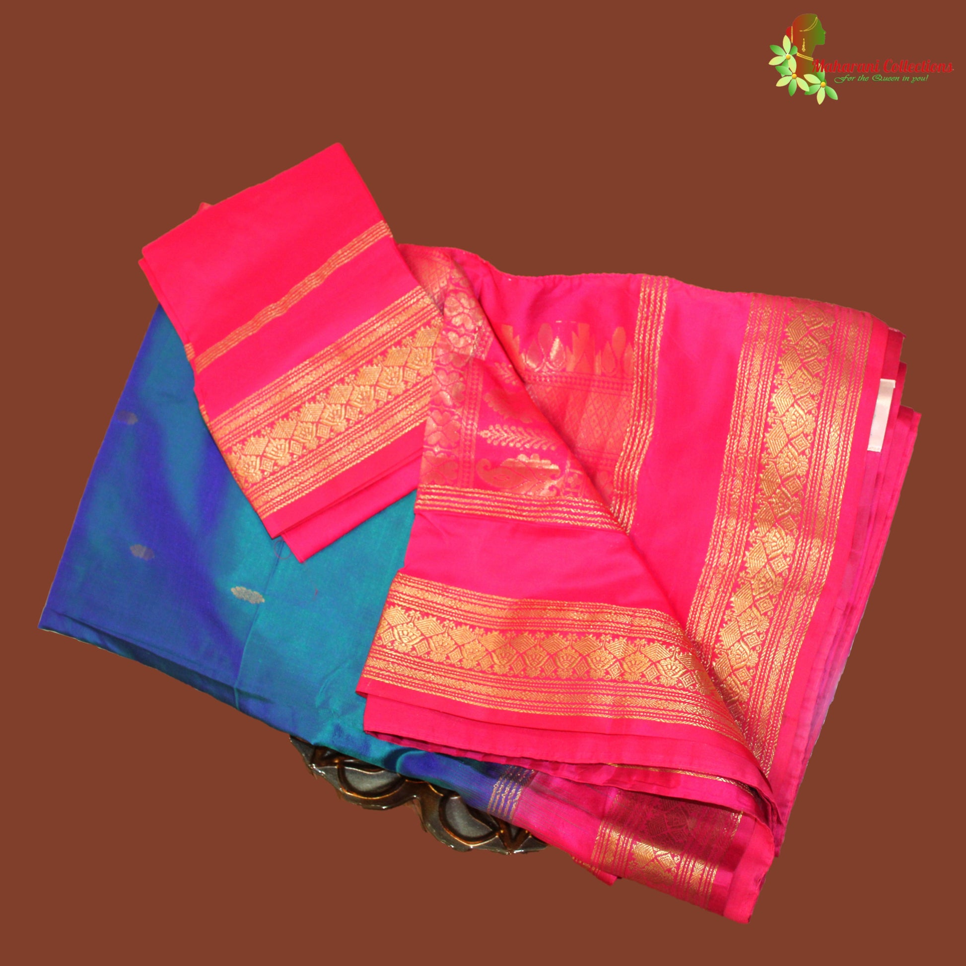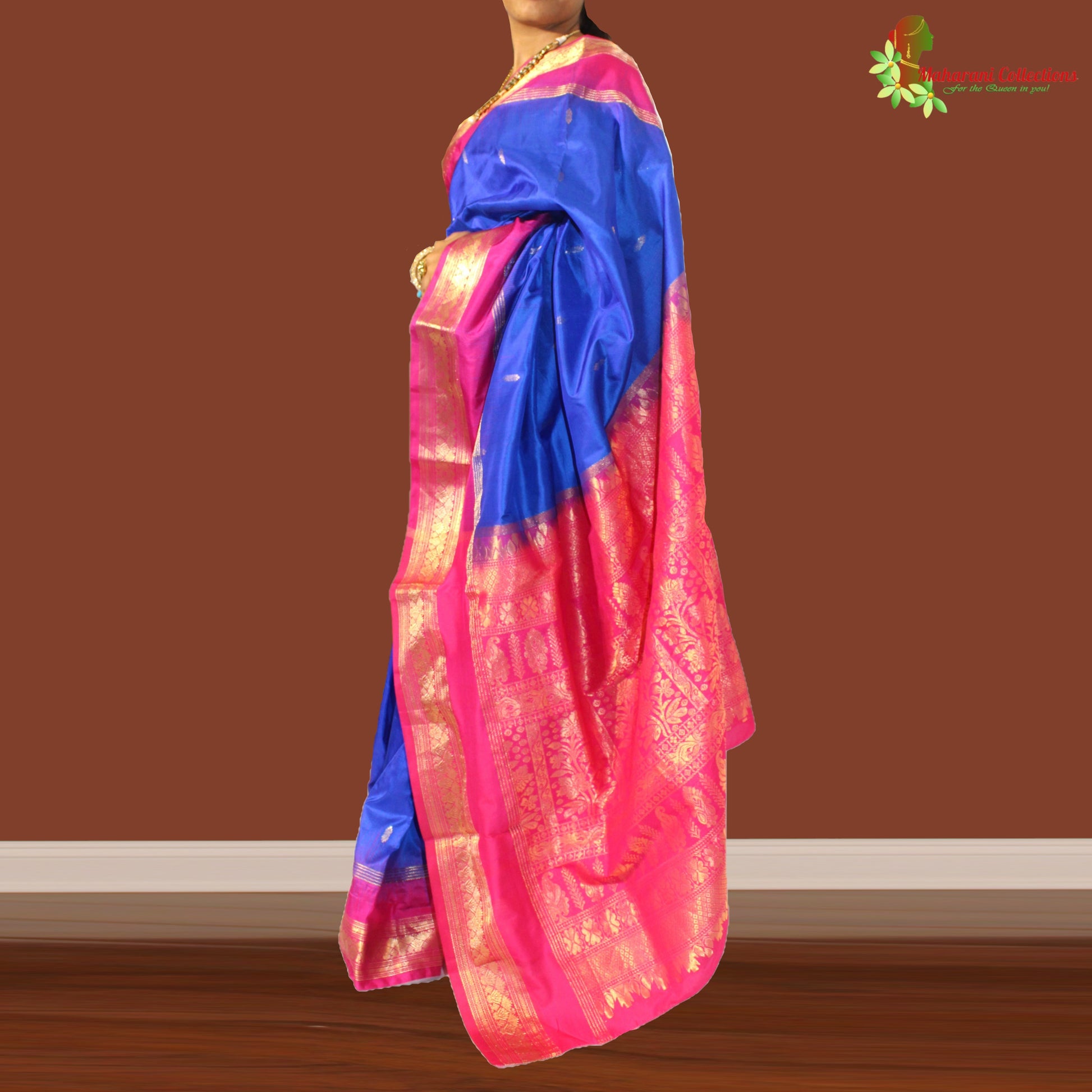 Maharani's Pure Banarasi Silk Saree - Blue (with stitched Petticoat)