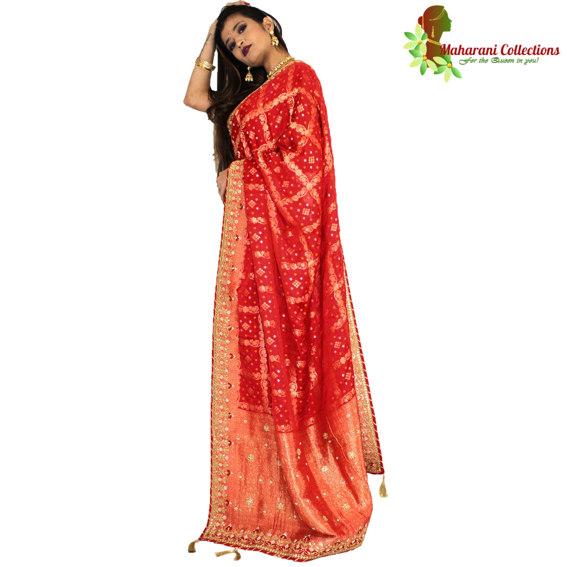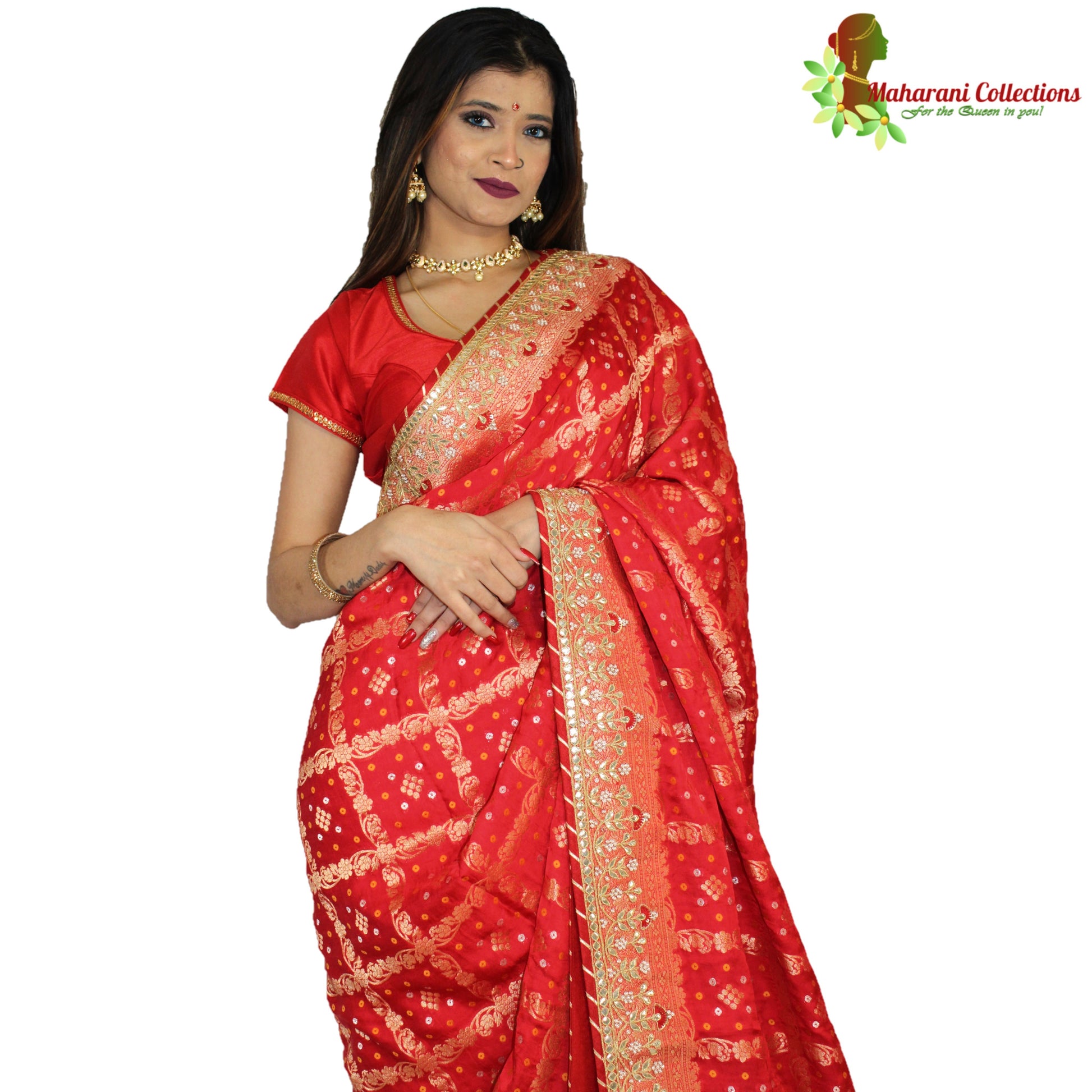 Maharani's Pure Banarasi Soft Silk Saree - Bridal Red (with Stitched Petticoat)