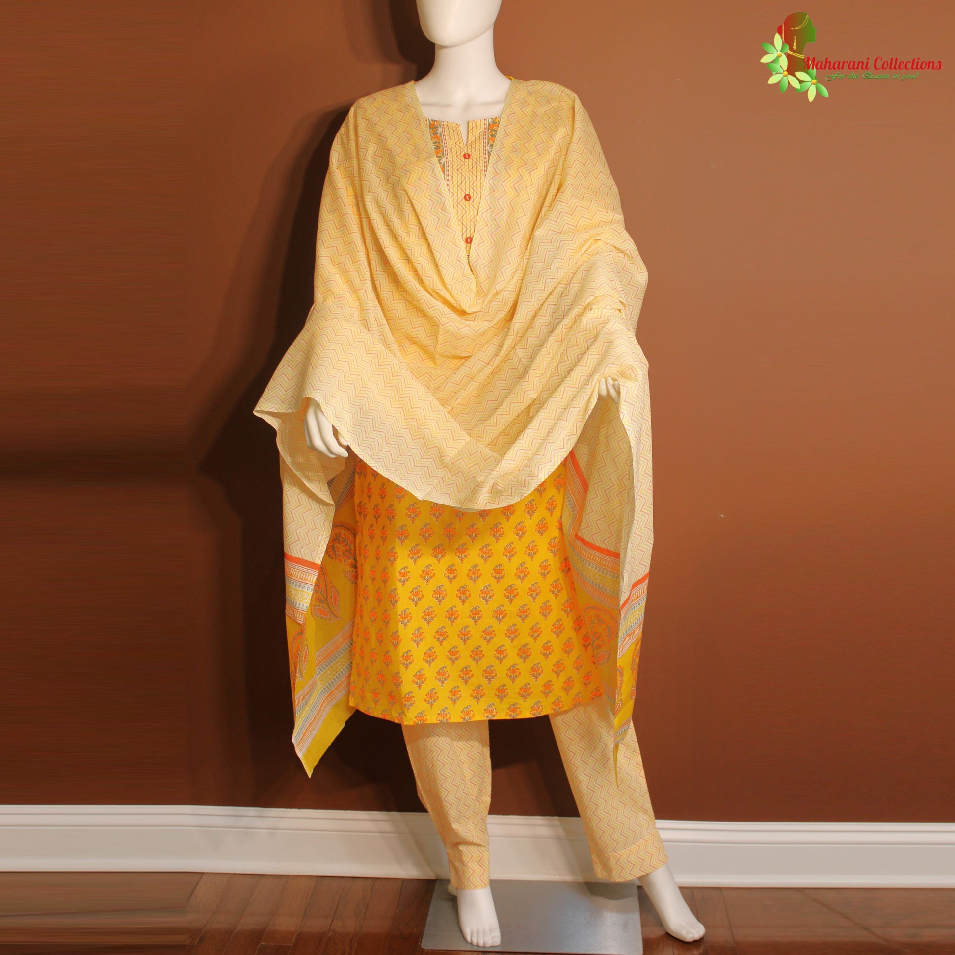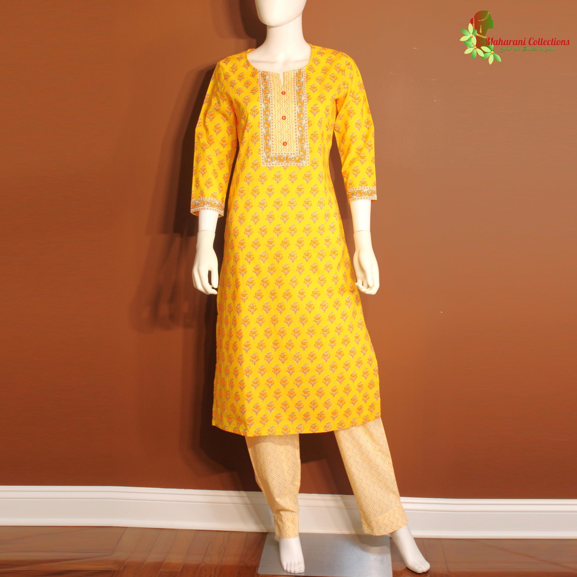 Maharani's Pure Cotton Palazzo Suit Set - Yellow (XL)