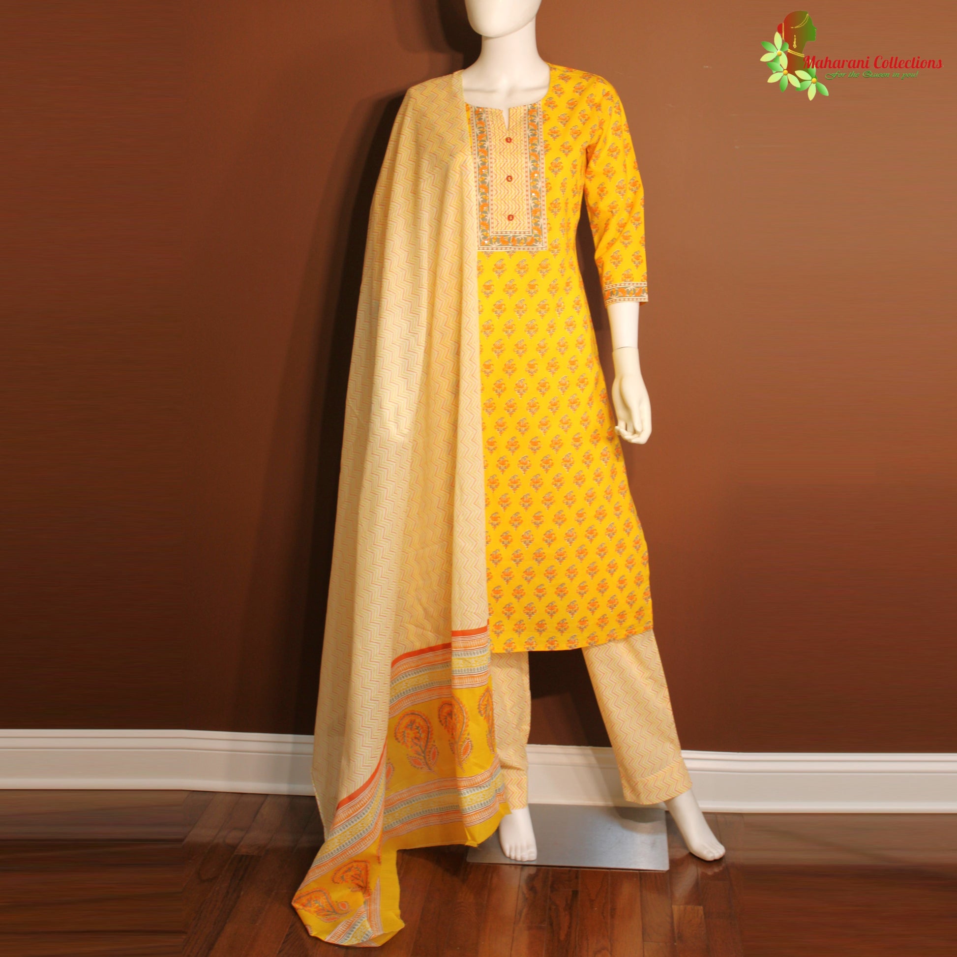 Maharani's printed pure cotton Palazzo suits with matching Palazzo pant and soft cotton dupatta.