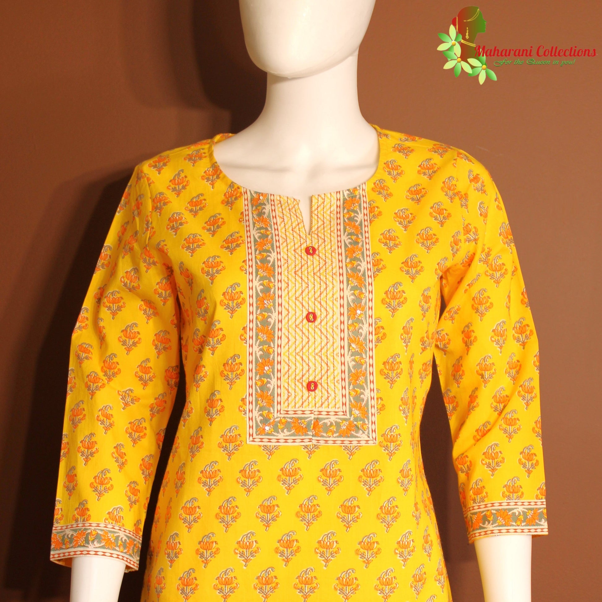 Maharani's Pure Cotton Palazzo Suit Set - Yellow (L)