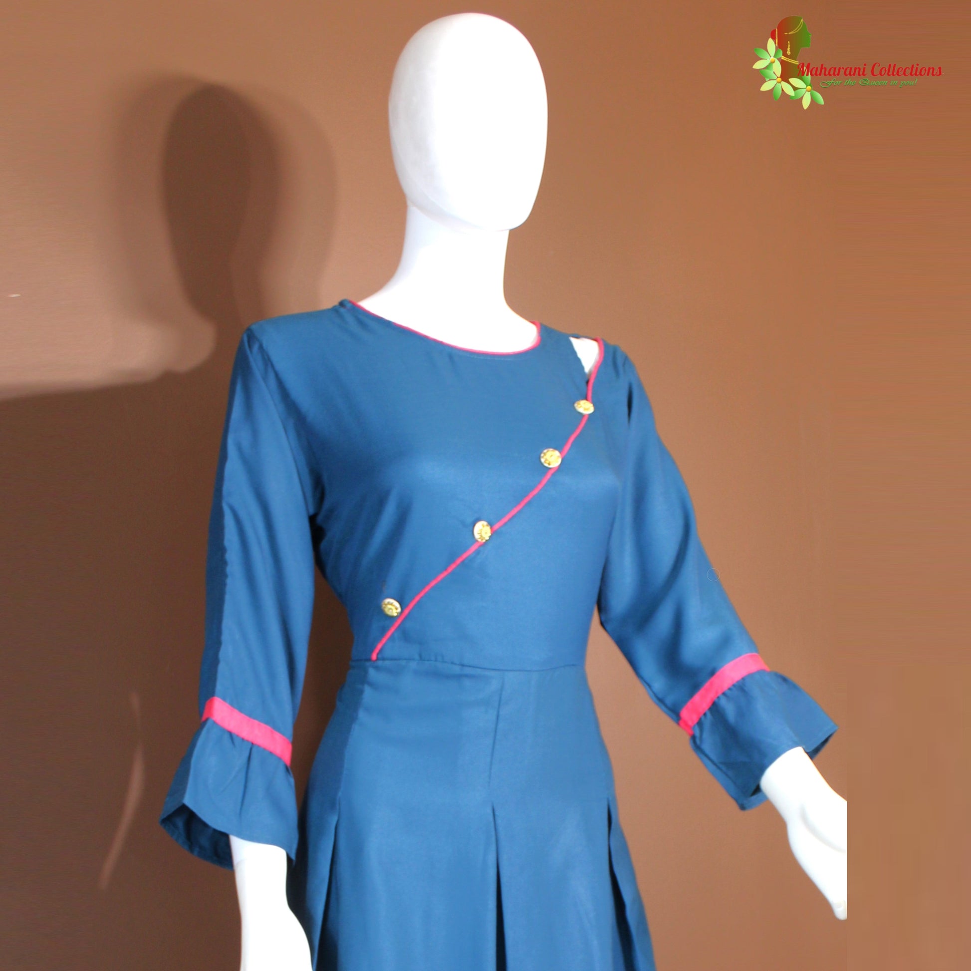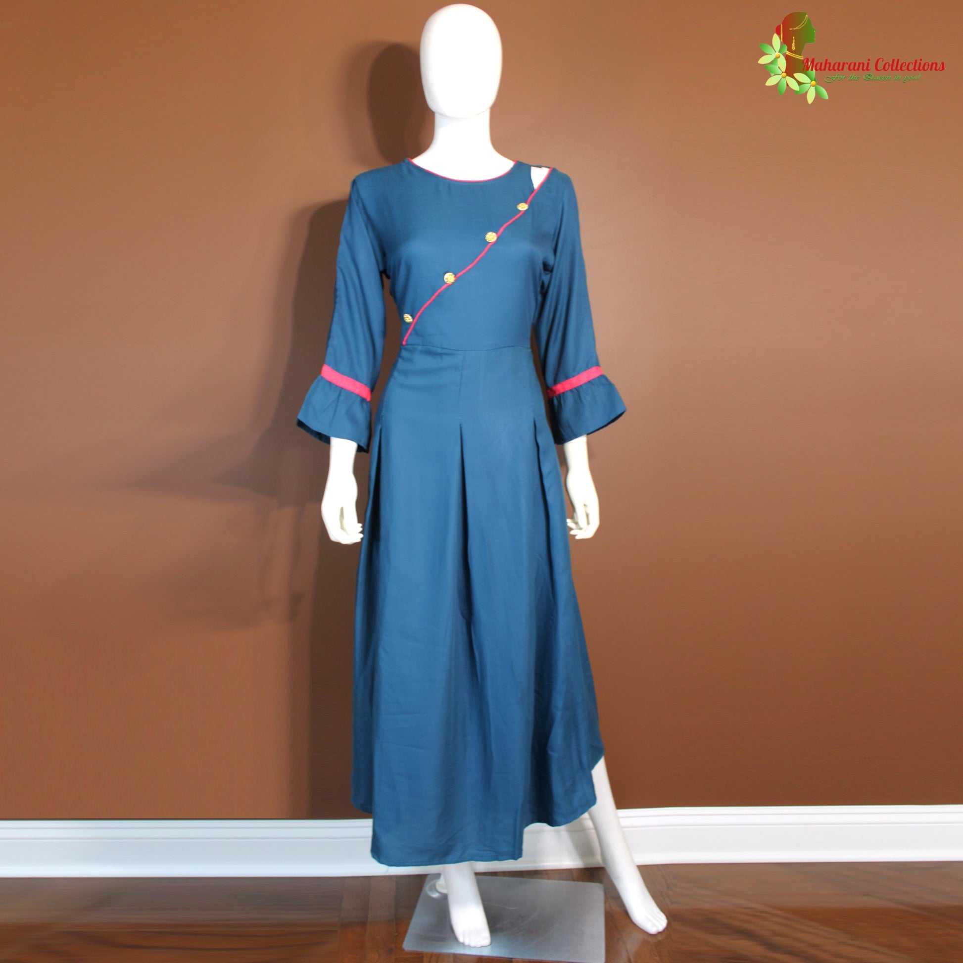 Maharani's Satin Silk Evening Dress - Blue (L)