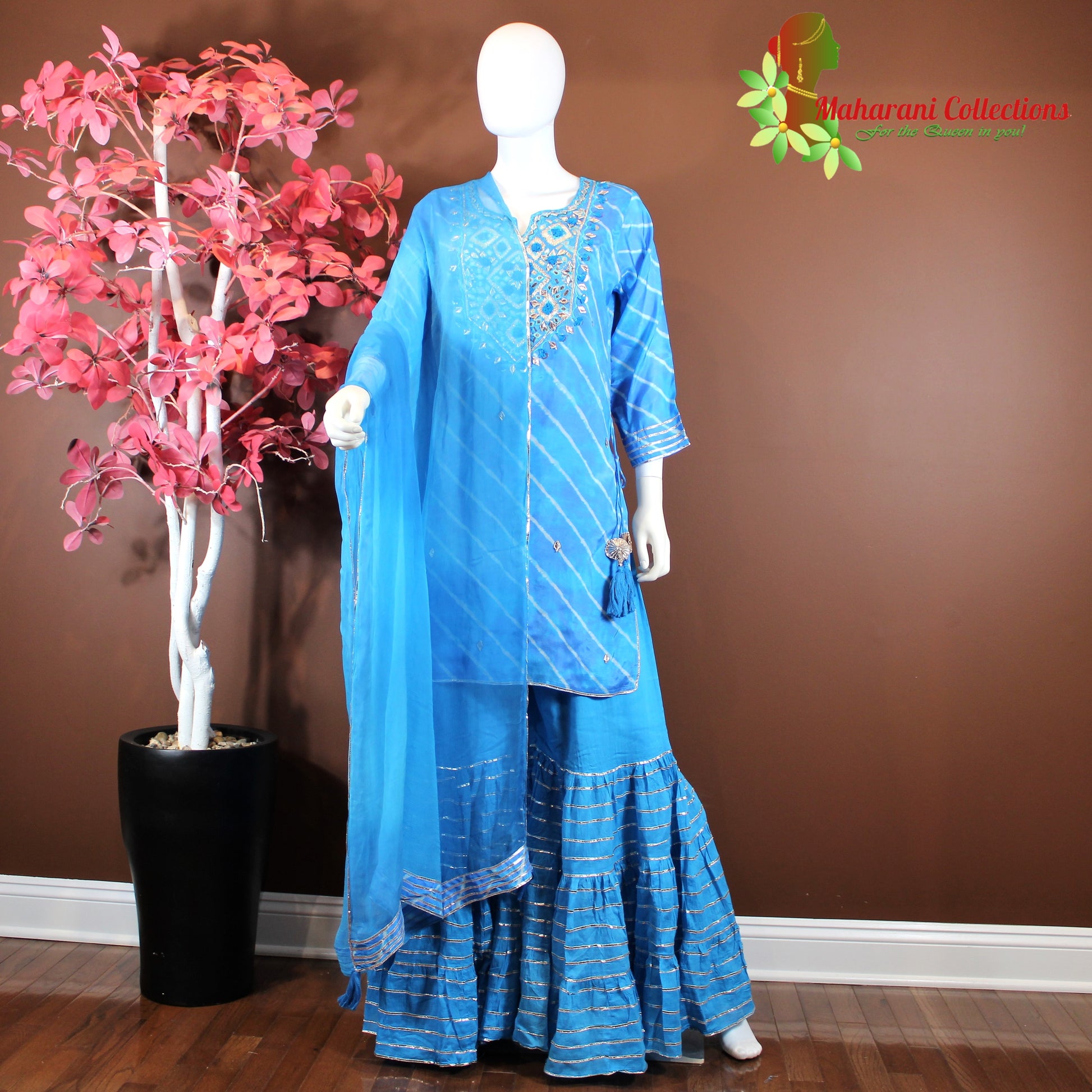 Maharani's Sharara Suit - Blue (L) - Pure Muslin Silk