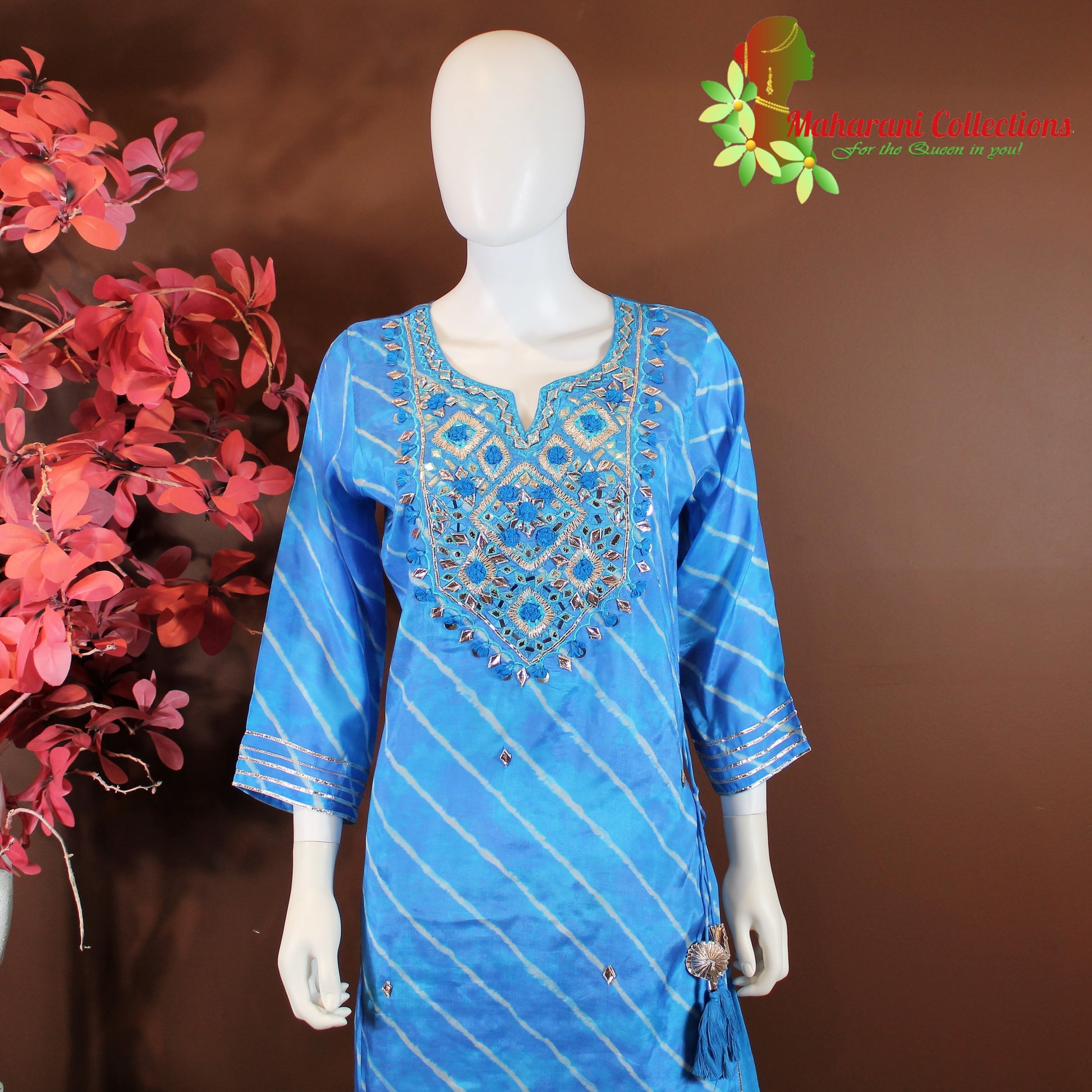 Maharani's finest Sharara Suit with Leheria Bandhej Print and Gotta Patti Work, matching Pant and Pure Georgette two-shades, Gotta Patti Work Dupatta.