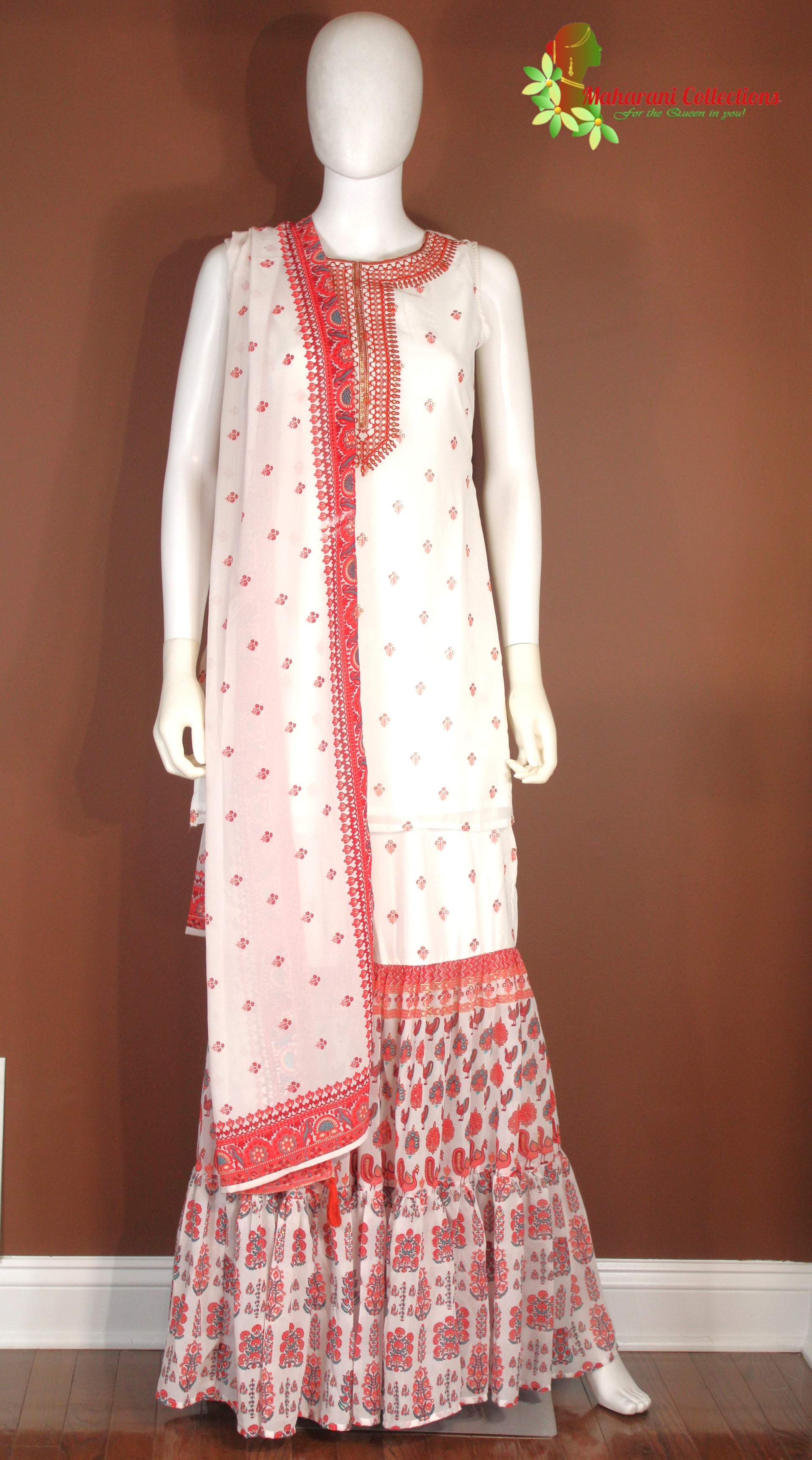 Maharani's Sharara Suit - Georgette - White and Maroon (XS, S, M, L)