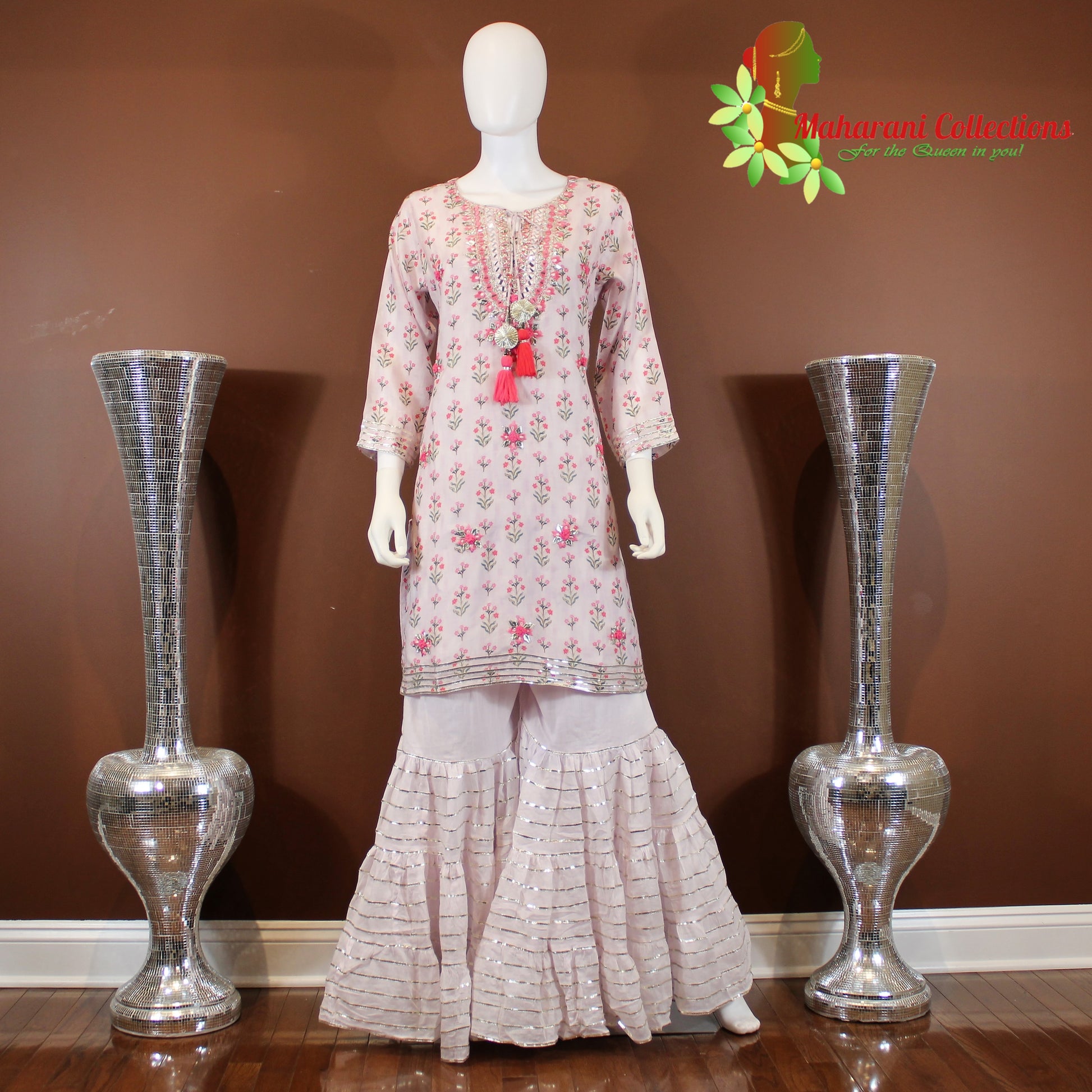 Maharani's Sharara Suit - Light Pink (XL) - Pure Muslin Silk